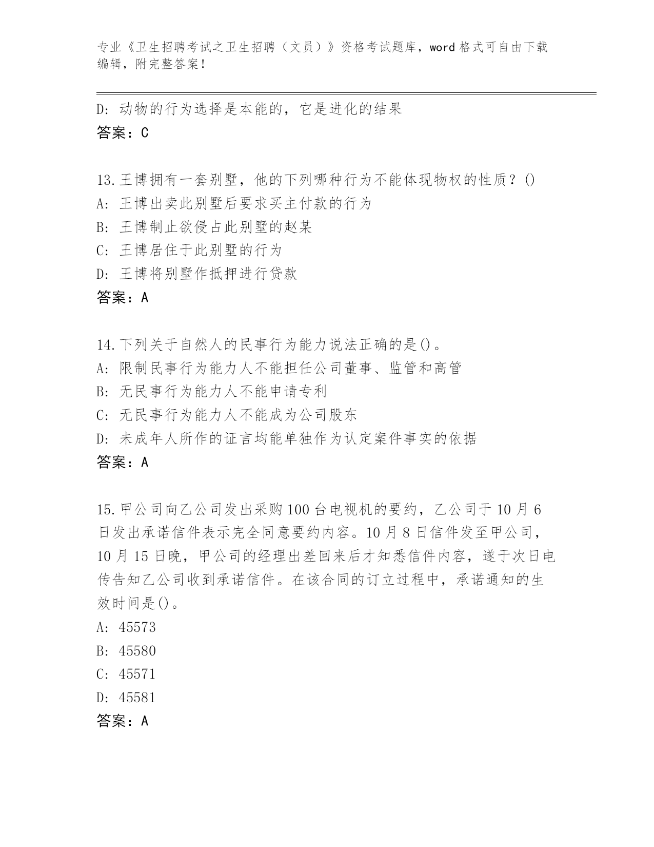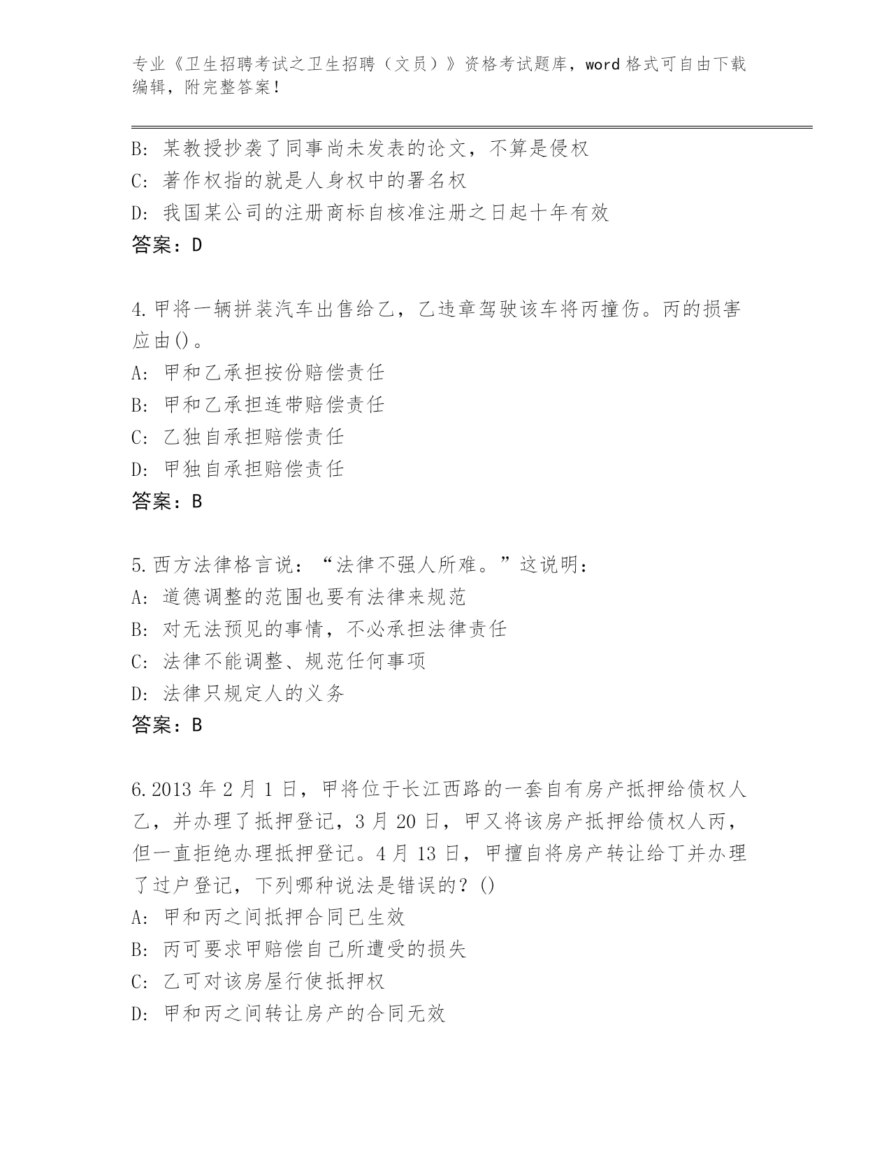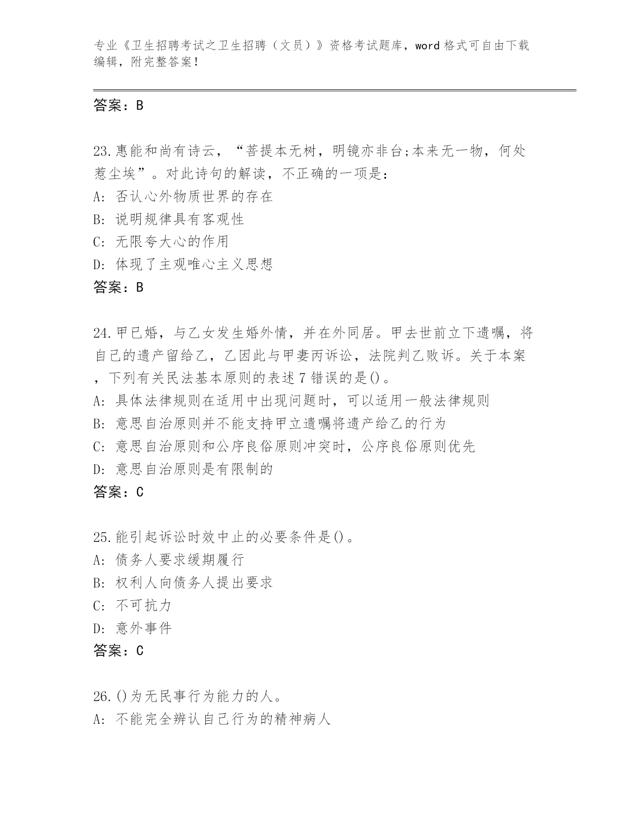 2024年四川省江阳区《卫生招聘考试之卫生招聘(文员)》资格考试必背200题真题题库及答案
