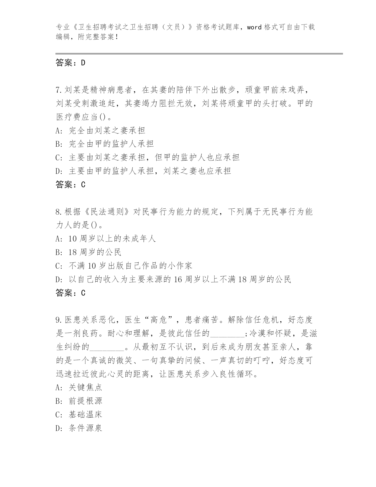 2024年四川省江阳区《卫生招聘考试之卫生招聘(文员)》资格考试必刷200题真题题库带答案(实用)
