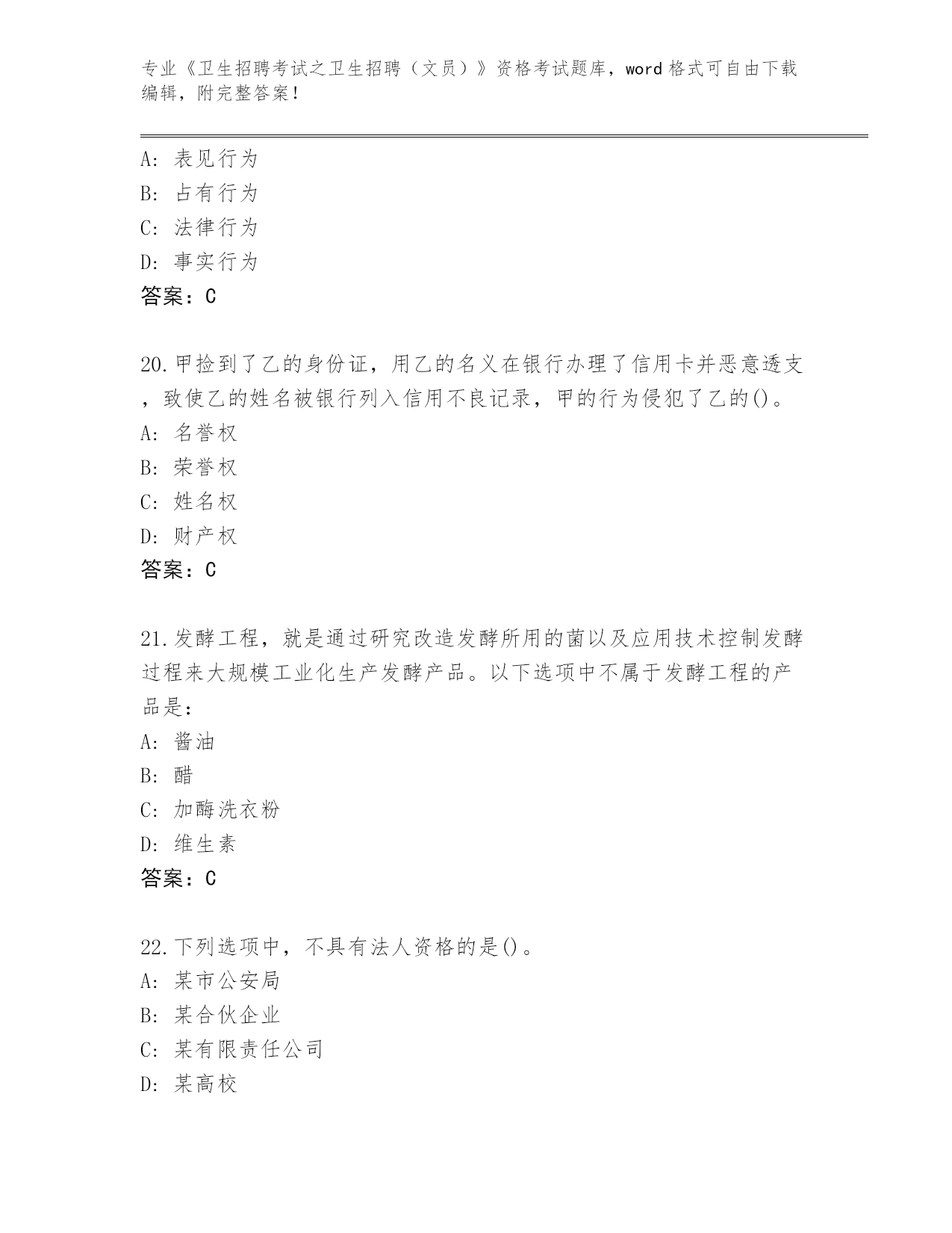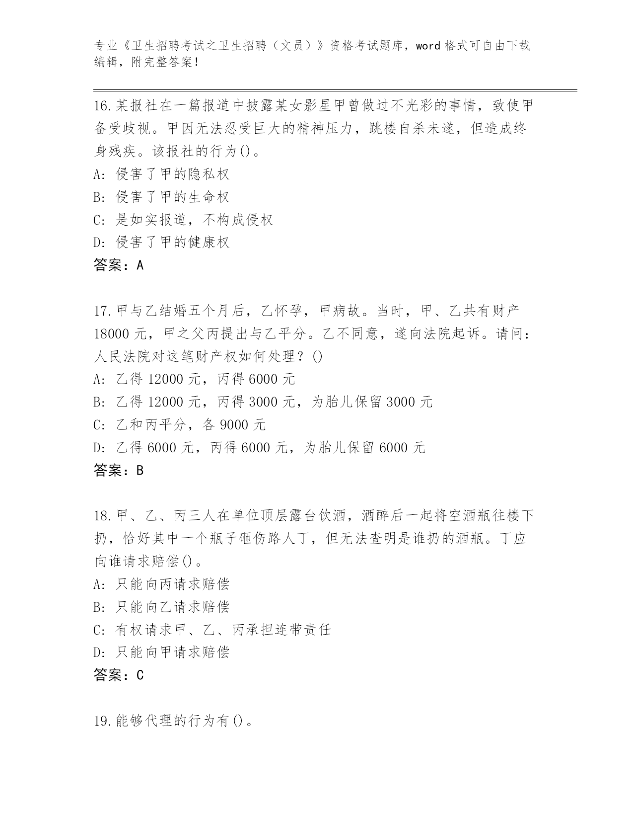整理四川省江阳区《卫生招聘考试之卫生招聘(文员)》资格考试完整题库含答案(基础题)