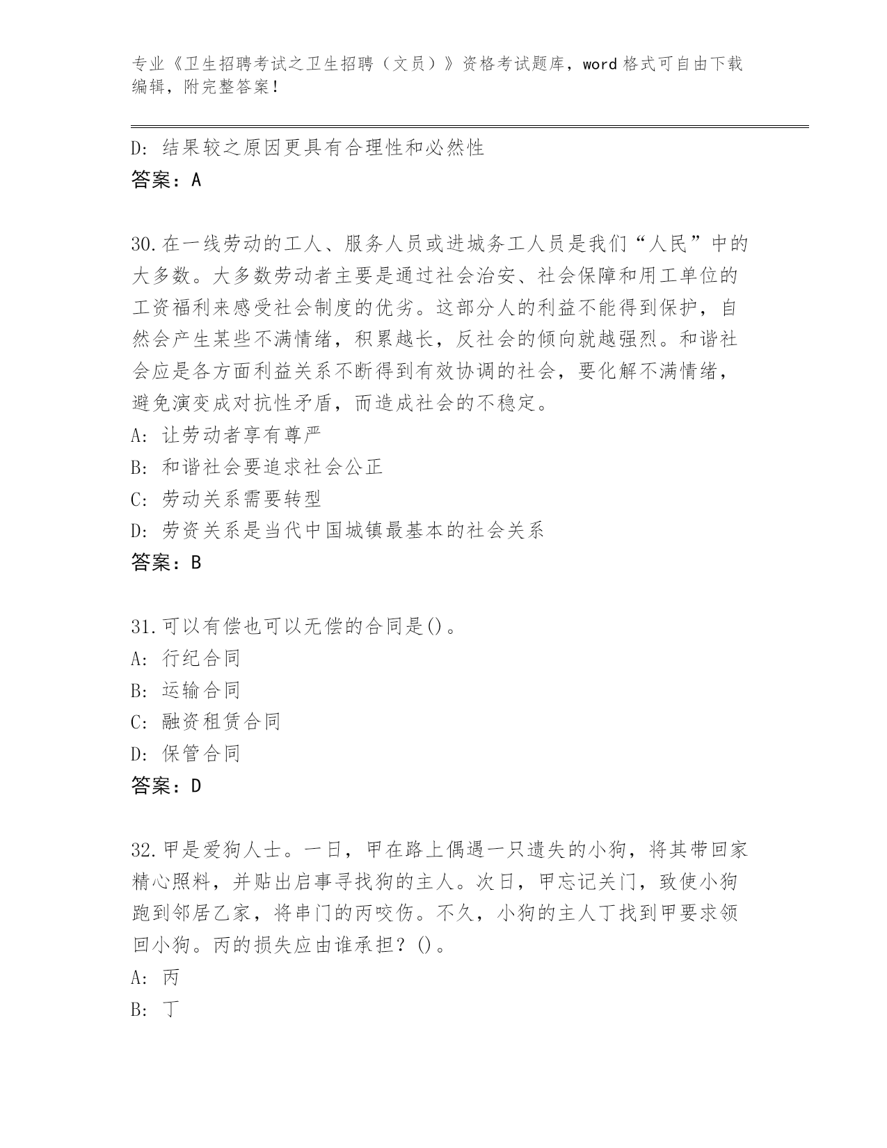 整理四川省江阳区《卫生招聘考试之卫生招聘(文员)》资格考试必刷200题题库答案下载