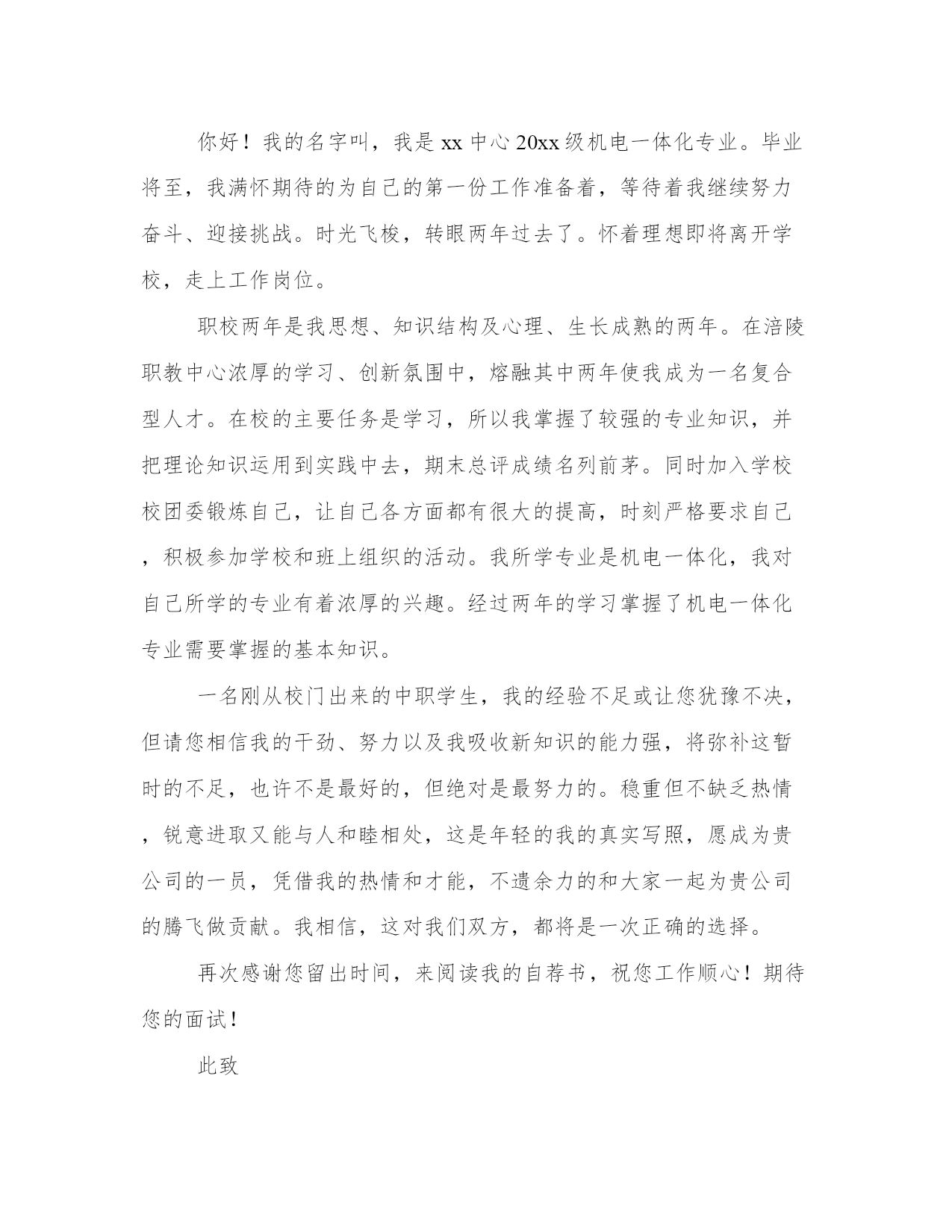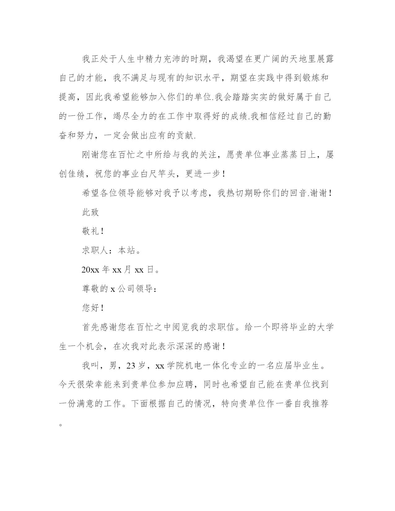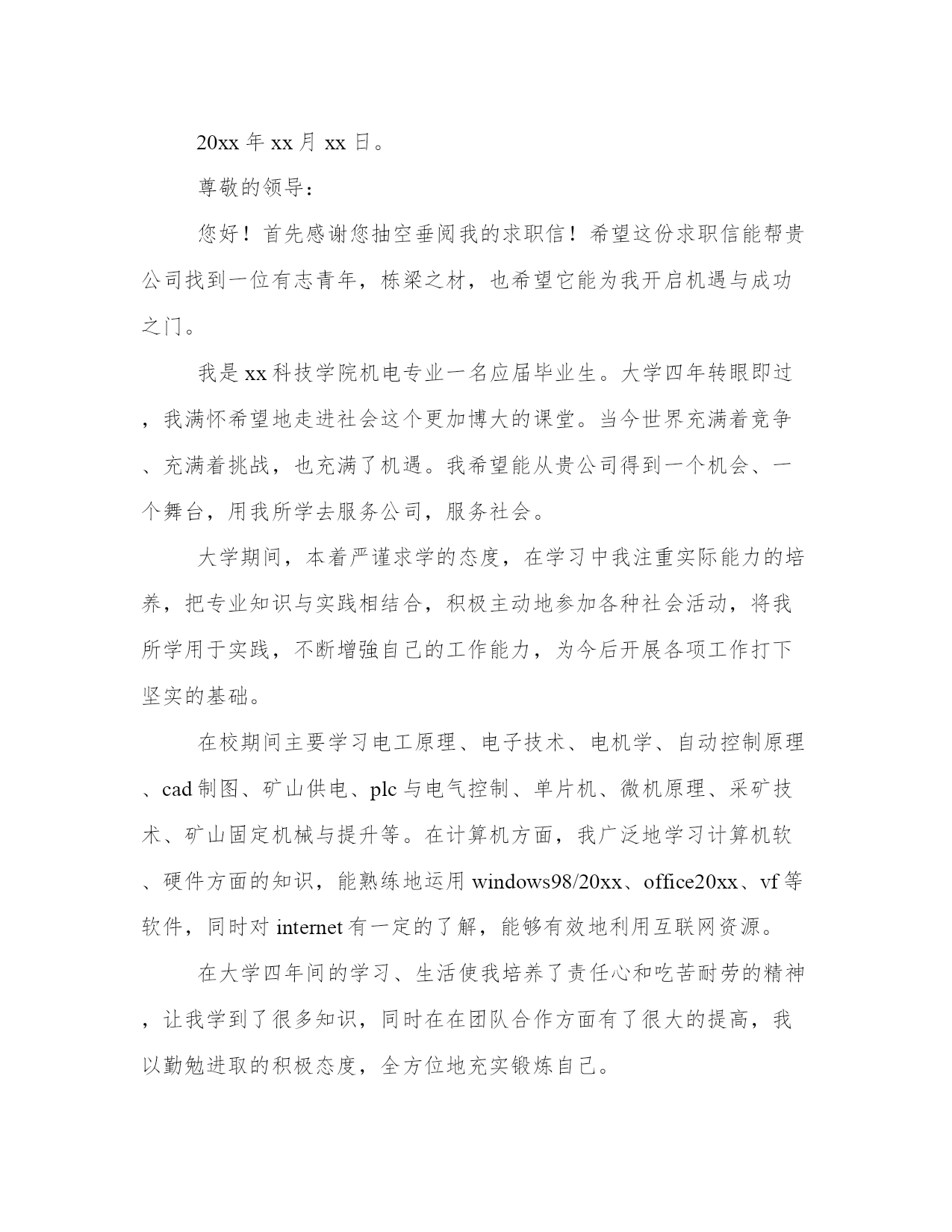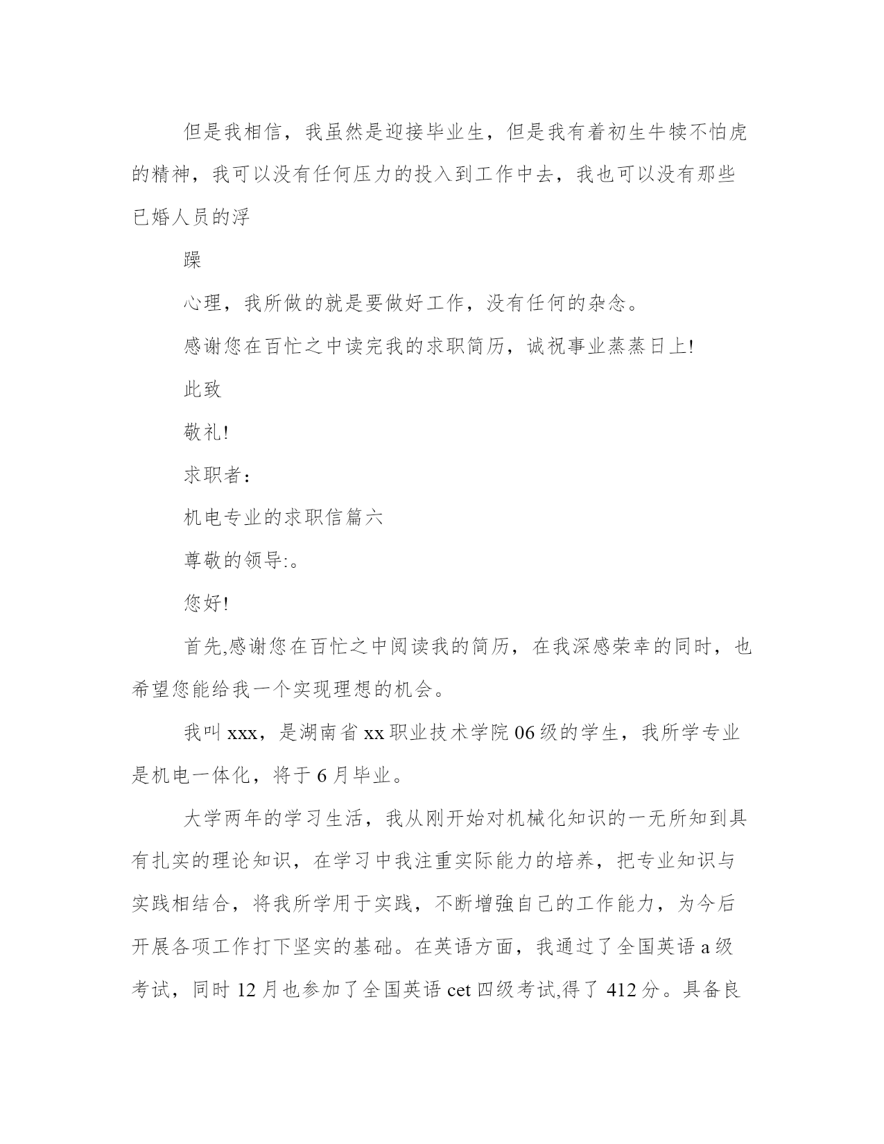 机电专业的求职信(实用8篇)在日常学习、工作或生活中,大家总少不了接触作文或者范文吧,通过文章可以把我们那些零零散散的思想,聚集在一块。那么我们该如何写一篇较为完美的范文呢?下面我给大家整理了一些优秀范文,希望能够帮助到大家,我们一起来看一看吧。机电专业的求职信篇一尊敬的领导:您好!请恕打扰.我是一名刚刚从生物学院机电系毕业的大学生.我很荣幸有机回向您呈上我的个人资料.在投身社会之际,为了找到符合自己专业和兴趣的工作,更好地发挥自己的才能,实现自己的人生价值,谨向各位领导作一自我推荐.现将自己的情况简要介绍如下:作为一名机电专业的大学生,我热爱我的专业并为其投入了巨大的热情和精力.在三年的学习生活中,我所学习的内容包括了从数控学的基础知识到运用等许多方面.通过对这些知识的学习,我对这一领域的相关知识有了一定程度的理解和掌握,此专业是一种工具,而利用此工具的能力是最重要的,在与课程同步进行的各种相关时践和实习中,具有了一定的实际操作能力和技术.在学校工作中,加强锻炼处世能力,学习管理知识,吸收管理经验.我正处于人生中精力充沛的时期,我渴望在更广阔的天地里展露自己的才能,我不满足与现有的知识水平,期望在实践中得到锻炼和提高,因此我希望能够加入你们的单位.我会踏踏实实的做好属于自己的一份工作,竭尽全力的在工作中取得好的成绩.我相信经过自己的勤奋和努力,一定会做出应有的贡献.刚谢您在百忙之中所给与我的关注,愿贵单位事业蒸蒸日上,屡创佳绩,祝您的事业白尺竿头,更进一步!希望各位领导能够对我予以考虑,我热切期盼你们的回音.谢谢!此致敬礼!求职人:本站。20xx年xx月xx日。尊敬的x公司领导:您好!首先感谢您在百忙之中阅览我的求职信。给一个即将毕业的大学生一个机会,在次我对此表示深深的感谢!我叫,男,23岁,xx学院机电一体化专业的一名应届毕业生。今天很荣幸能来到贵单位参加应聘,同时也希望自己能在贵单位找到一份满意的工作。下面根据自己的情况,特向贵单位作一番自我推荐。天将降大任于斯人也,必先苦其心志,劳其筋骨,饿其体肤。从小父母的教育就是吃得苦中苦,方成人上人。虽说现在的生活条件比较富裕,我们一家人还是一直都坚持着勤俭节约的好习惯。长大后的我懂得了父母的不容易,所以我会好好工作,孝敬长辈。业精于勤,荒于嬉;行成于思,毁于随。基于此,自进入大学以来,我努力学习,并从各个方面锻炼和提高自己。首先,我一直将自己的专业学习放在首要位置,通过学习,掌握了许多关于自己专业方面的理论知识和实践技能,并且考取了电工证和autocad专业资格证书。在校尊敬师长,团结同学,在班级积极为同学服务。此外,我还积极地参加各种社会活动,抓住每一个机会,锻炼自己。祖辈们教我勤奋、尽责、善良、正直;大学培养了我实事求是、开拓进取的作风。我热爱贵单位所从事的事业,殷切地期望能够在您的领导下,为这一光荣的事业添砖加瓦;并且在实践中不断学习、进步。机遇偏爱有准备的人,幸运垂青执着追求的人。在激烈的人才竞争中,我不一定是的,但我会继续努力、不断进取、日益完善。诚挚的希望领导能给我这次机会,企盼佳音。谢谢!祝愿贵单位事业蒸蒸日上!此致敬礼!求职人:本站。20xx年xx月xx日。尊敬的领导:您好!首先感谢您抽空垂阅我的求职信!希望这份求职信能帮贵公司找到一位有志青年,栋梁之材,也希望它能为我开启机遇与成功之门。我是xx科技学院机电专业一名应届毕业生。大学四年转眼即过,我满怀希望地走进社会这个更加博大的课堂。当今世界充满着竞争、充满着挑战,也充满了机遇。我希望能从贵公司得到一个机会、一个舞台,用我所学去服务公司,服务社会。大学期间,本着严谨求学的态度,在学习中我注重实际能力的培养,把专业知识与实践相结合,积极主动地参加各种社会活动,将我所学用于实践,不断增強自己的工作能力,为今后开展各项工作打下坚实的基础。在校期间主要学习电工原理、电子技术、电机学、自动控制原理、cad制图、矿山供电、plc与电气控制、单片机、微机原理、采矿技术、矿山固定机械与提升等。在计算机方面,我广泛地学习计算机软、硬件方面的知识,能熟练地运用windows98/20xx、office20xx、vf等软件,同时对internet有一定的了解,能够有效地利用互联网资源。在大学四年间的学习、生活使我培养了责任心和吃苦耐劳的精神,让我学到了很多知识,同时在在团队合作方面有了很大的提高,我以勤勉进取的积极态度,全方位地充实锻炼自己。怀着自信我向您推荐自己,如果有幸成为贵公司的一员,我愿从小事情做起,虚心尽责、勤奋工作,在实践中不断学习,发挥自己的主动性、创造性,竭力为公司的发展添一份光彩。最后,衷心的感谢您在百忙之中阅读我的求职信,祝愿贵单位事业蒸蒸日