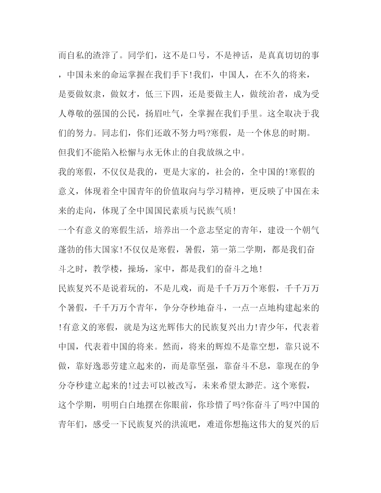 PAGE此资料由网络收集而来,如有侵权请告知上传者立即删除。资料共分享,我们负责传递知识。关于放假生活发言关于放假生活发言为,但愿对你的学习工作带来帮助。放假,对于大多数同学来说可能就意味着彻底的放松。年夜饭,爆竹,计算机游戏,对于我们的意志来说是空前的考验。以下是小编为大家整理的放假生活发言,供大家参考学习。敬爱的老师,亲爱的同学:大家好!今天我要演讲的题目是《为中华之崛起而读书》。寒假,对于大多数同学来说可能就意味着彻底的放松。年夜饭,爆竹,计算机游戏,对于我们的意志来说是空前的考验。很多同学,平时的学习劲头就不足,一到寒假,薄弱的意志防线很快就被冲破了,沉迷在玩乐中不能自拔,可能一个寒假,眼睛又近了五六十度了。然而,请问诸位,您们考虑过这样做的后果吗?平时,家长,老师,对于我们的训导,不外乎就是说:“你们学习,是为了你们自己,不为别人。”我想请问诸位,你们当中,有如此自私自利的人吗?难道我们学习,就是为了未来的享乐?由于家长们将学习的重要性严重贬低,同学们当中有些人就产生了错误的认识,以为学不好,只不过自己,在渺茫的未来将会受罪罢了。荒谬!我们学习为谁而学?为社会!为祖国!为全人类!假如只为自己而学,那就是无知而自私的渣滓了。同学们,这不是口号,不是神话,是真真切切的事,中国未来的命运掌握在我们手下!我们,中国人,在不久的将来,是要做奴隶,做奴才,低三下四,还是要做主人,做统治者,成为受人尊敬的强国的公民,扬眉吐气,全掌握在我们手里。这全取决于我们的努力。同志们,你们还敢不努力吗?寒假,是一个休息的时期。但我们不能陷入松懈与永无休止的自我放纵之中。我的寒假,不仅仅是我的,更是大家的,社会的,全中国的!寒假的意义,体现着全中国青年的价值取向与学习精神,更反映了中国在未来的走向,体现了全中国国民素质与民族气质!一个有意义的寒假生活,培养出一个意志坚定的青年,建设一个朝气蓬勃的伟大国家!不仅仅是寒假,暑假,第一第二学期,都是我们奋斗之时,教学楼,操场,家中,都是我们的奋斗之地!民族复兴不是说着玩的,不是儿戏,而是千千万万个寒假,千千万万个暑假,千千万万个青年,争分夺秒地奋斗,一点一点地构建起来的!有意义的寒假,就是为这光辉伟大的民族复兴出力!青少年,代表着中国,代表着中国的将来。然而,将来的辉煌不是靠空想,靠只说不做,靠好逸恶劳建立起来的,而是靠坚强,靠奋斗不息,靠现在的争分夺秒建立起来的!过去可以被改写,未来希望太渺茫。这个寒假,这个学期,明明白白地摆在你眼前,你珍惜了吗?你奋斗了吗?中国的青年们,感受一下民族复兴的洪流吧,难道你想拖这伟大的复兴的后腿吗?奋斗吧!青年们!奋斗吧!中国的青年们!谢谢大家。放寒假了,爸爸妈妈曾带我去过很多地方玩,其中,最让我难以忘怀的是园博园的景色。那天,天气晴朗,阳光明媚。爸爸神秘地说:“今天要去——园博园玩。”我与姐姐高兴得手舞足蹈,异口同声地说:“太好了,太好了……”到了园博园后,爸爸买完票,就带我们参观。进入大门,大约走五分钟,就来到“儿童乐园”。我和姐姐两眼放光,心情十分激动,对爸爸说“爸爸,让我们去‘儿童乐园’玩,好吗?”爸爸思量片刻,答应了。于是,我和姐姐尽情地玩。这里的游戏设施真多呀!有惊险刺激的“海盗船”;有旋转的“小蜜蜂”;还有相互碰撞的“碰碰车”等等,让我看得得眼花缭乱,应接不暇。我迫不及待的登上海盗船。坐在海盗船上,感觉仿佛置身x之中驾驶着海盗船驶向远方。慢慢的,速度从慢到快,摇晃角度从低到高,越来越刺激、惊险。我紧紧握着扶手,声怕一不小心就被甩在地上。接下来,是小蜜蜂。小蜜蜂是一只只酷似小蜜蜂的机器,一按开关,我们坐上小蜜蜂,伴随着音乐,小蜜蜂时而降落,时而上升,同时也跟着不停的旋转。音乐是小蜜蜂的叫声,这更加让你感到自己像是一只勤劳的小蜜蜂在花从中辛勤地采蜜,尝到了“一份耕耘,一份收获”的滋味。还有许多游戏项目,我就不一一介绍了。出了儿童园,大概走一两公里的路,就来到着名的高耸入云的“杏林阁”,杏林阁里真是书香四溢,一进入阁楼,你就会被书香包围,因为杏林阁里满是着名的古书与名人雕象,让你大开眼界,增长见识,真是一举两得,既玩耍,又学习!一路上,我们还看见许多各式名样的花灯,要是到了夜幕降临时,来观赏花灯,那该多美啊!可惜我们该回家了。回想起来,这个寒假过得真是既开心,又有趣啊!“哎!惨呀,惨呀,我简直比窦娥还惨呀!”原本以为寒假可以快快乐乐的狂玩一场。谁知却被压在千斤巨石下……啊,太好了,终于放假了,终于可以疯玩了,我高兴的恨不得一口气跑遍全中国。我刚到家,这时候妈妈走过来,屋里突然跟死一般寂静。妈妈对我说:“王港呀,妈妈想让你报习作二课班。”我一听到“习作”二子,脑袋翁的一下,吓得连眼珠子都快掉出来了。没等