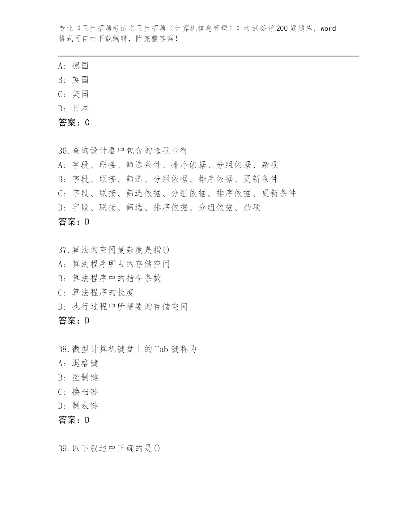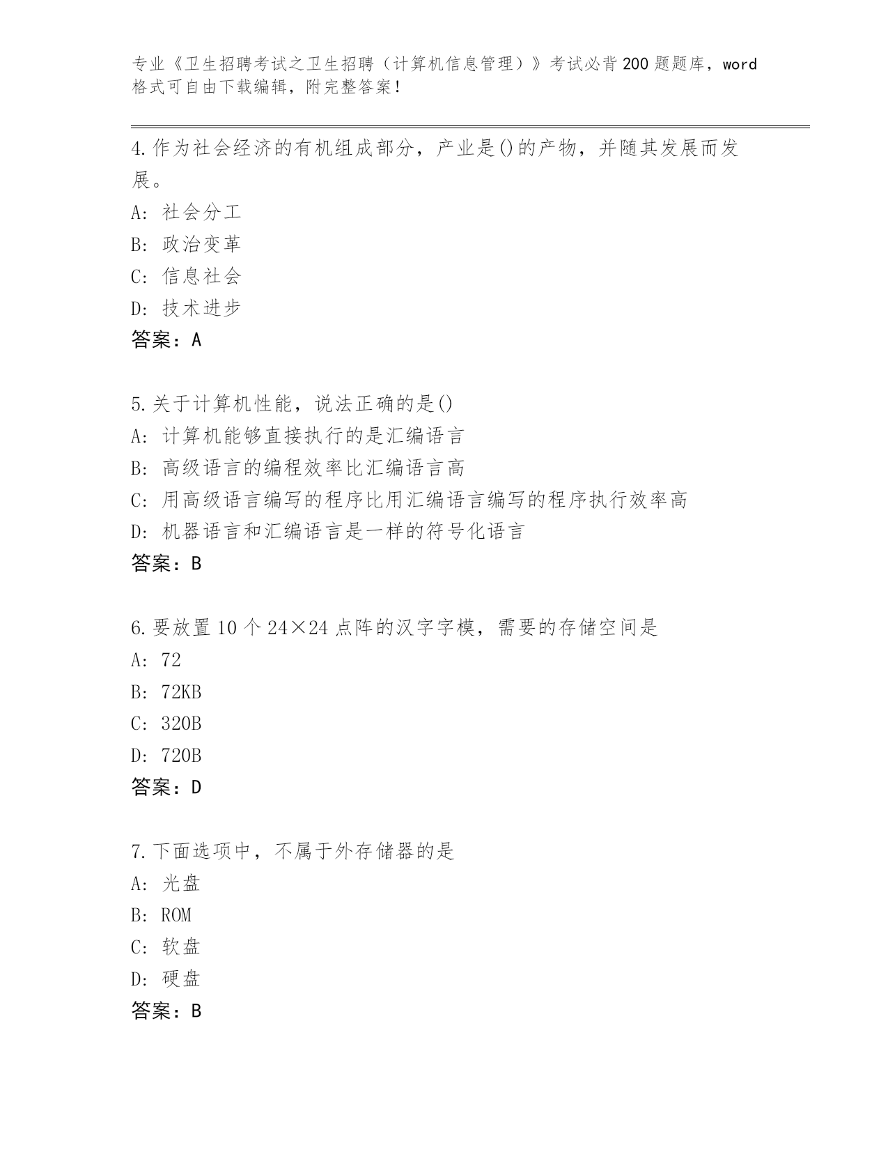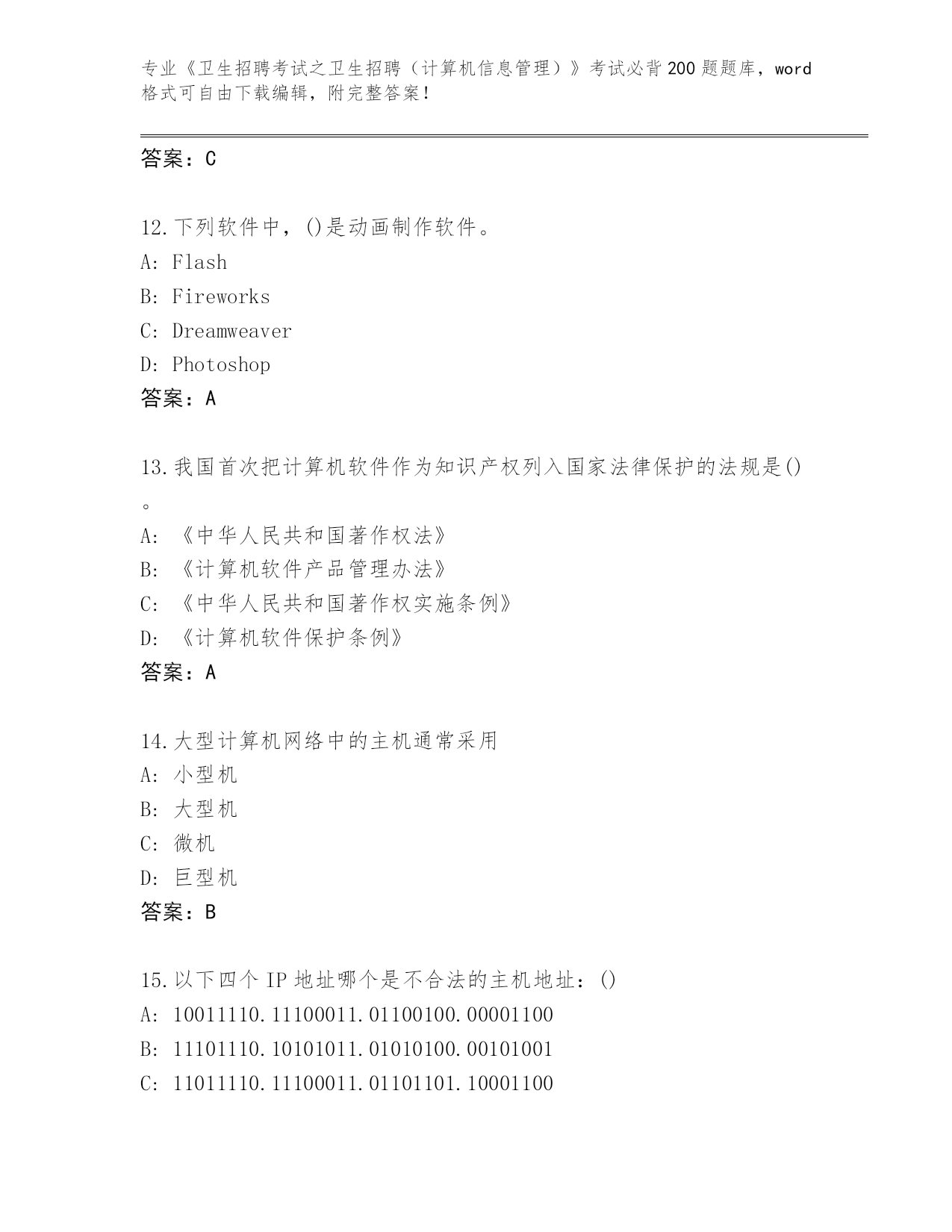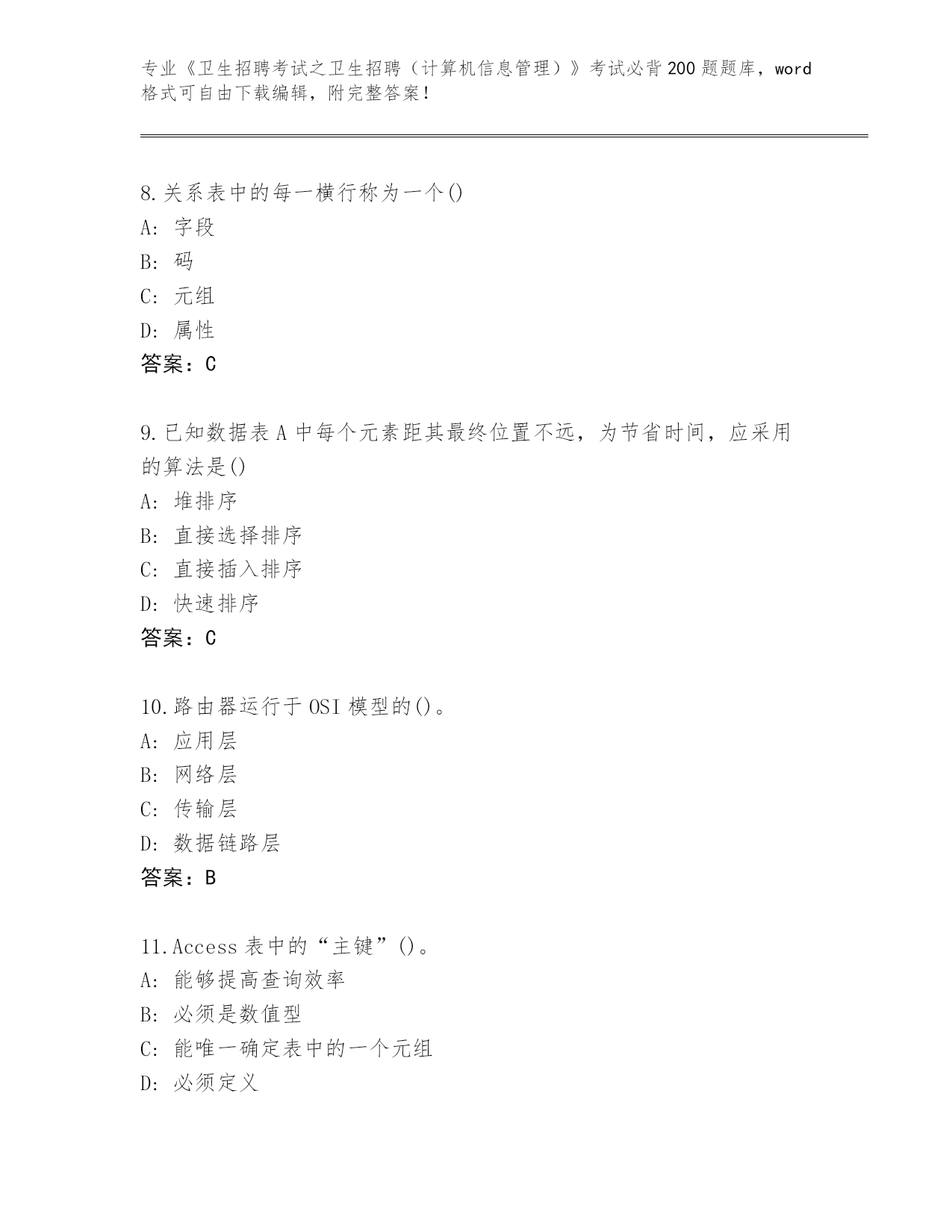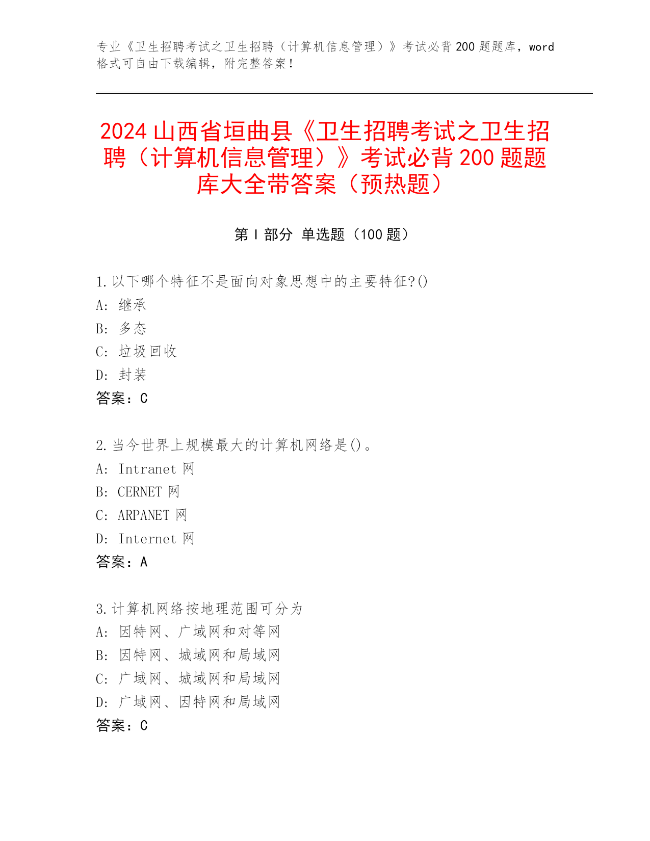 2024山西省垣曲县《卫生招聘考试之卫生招聘(计算机信息管理)》考试必背200题题库大全带答案(预热题)