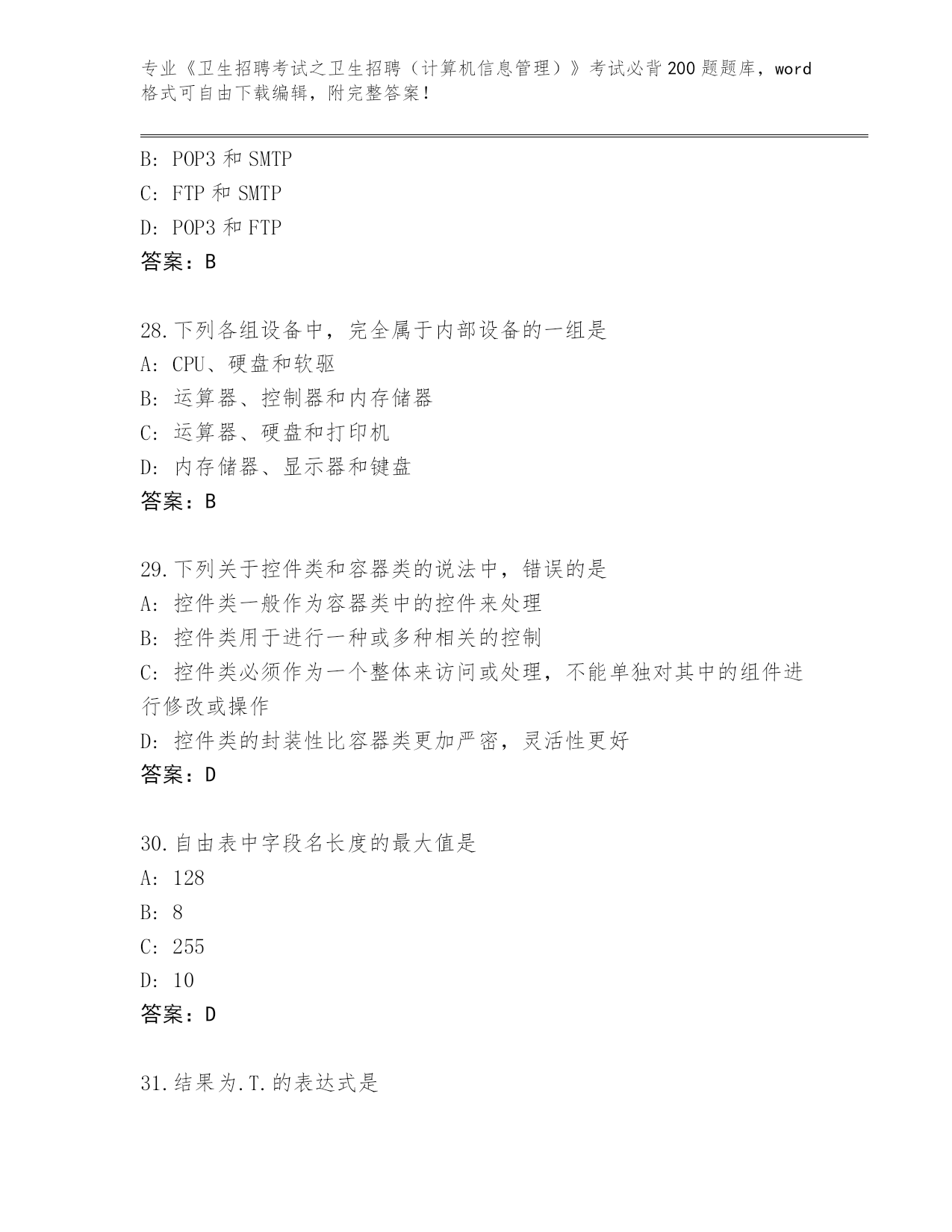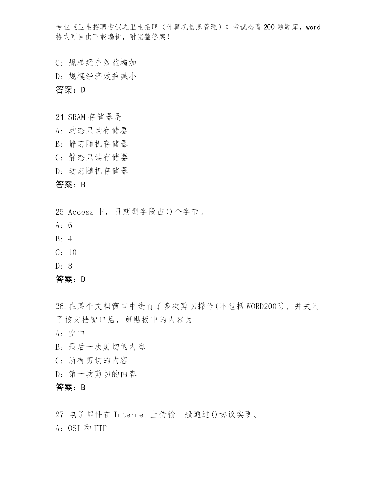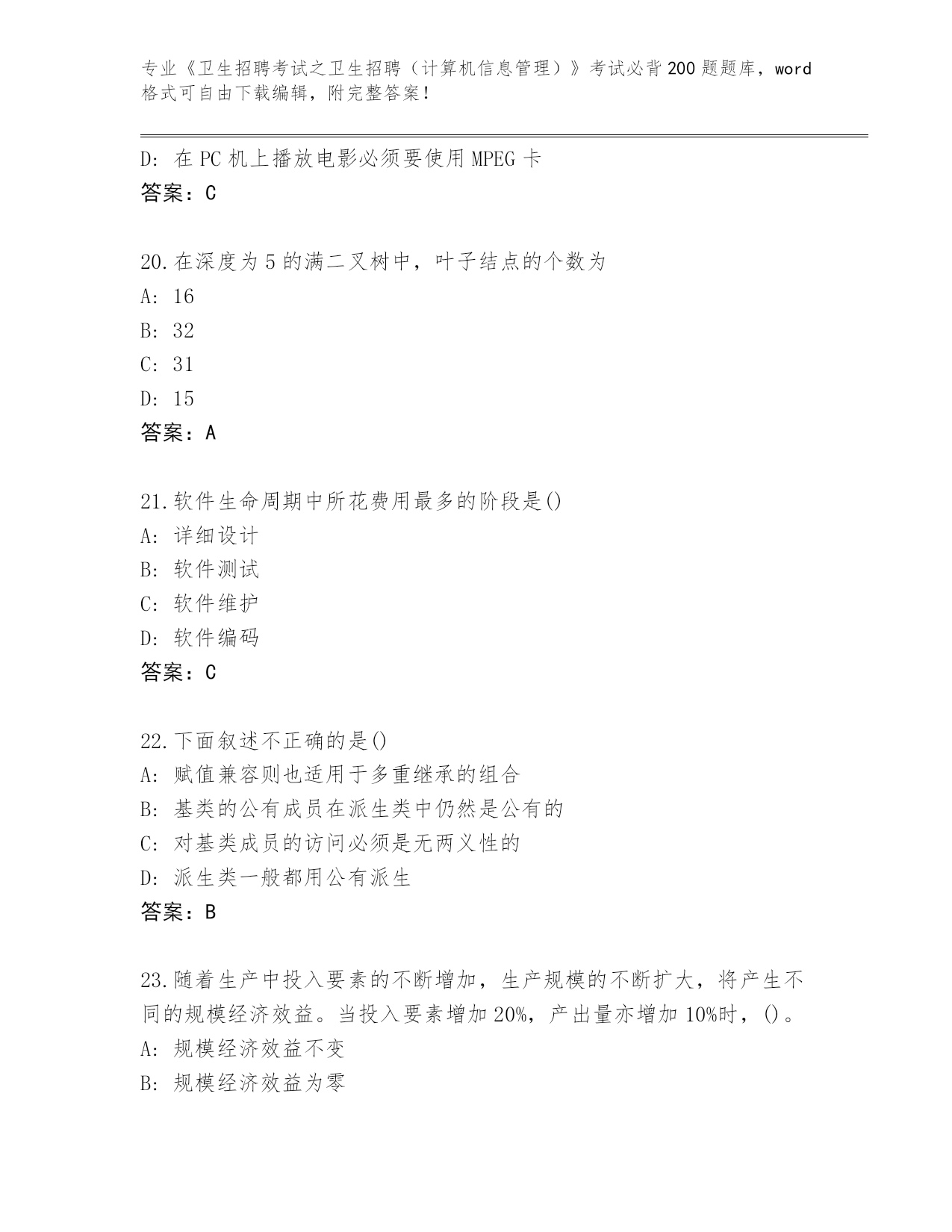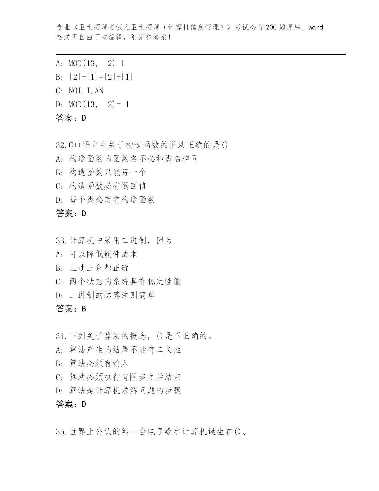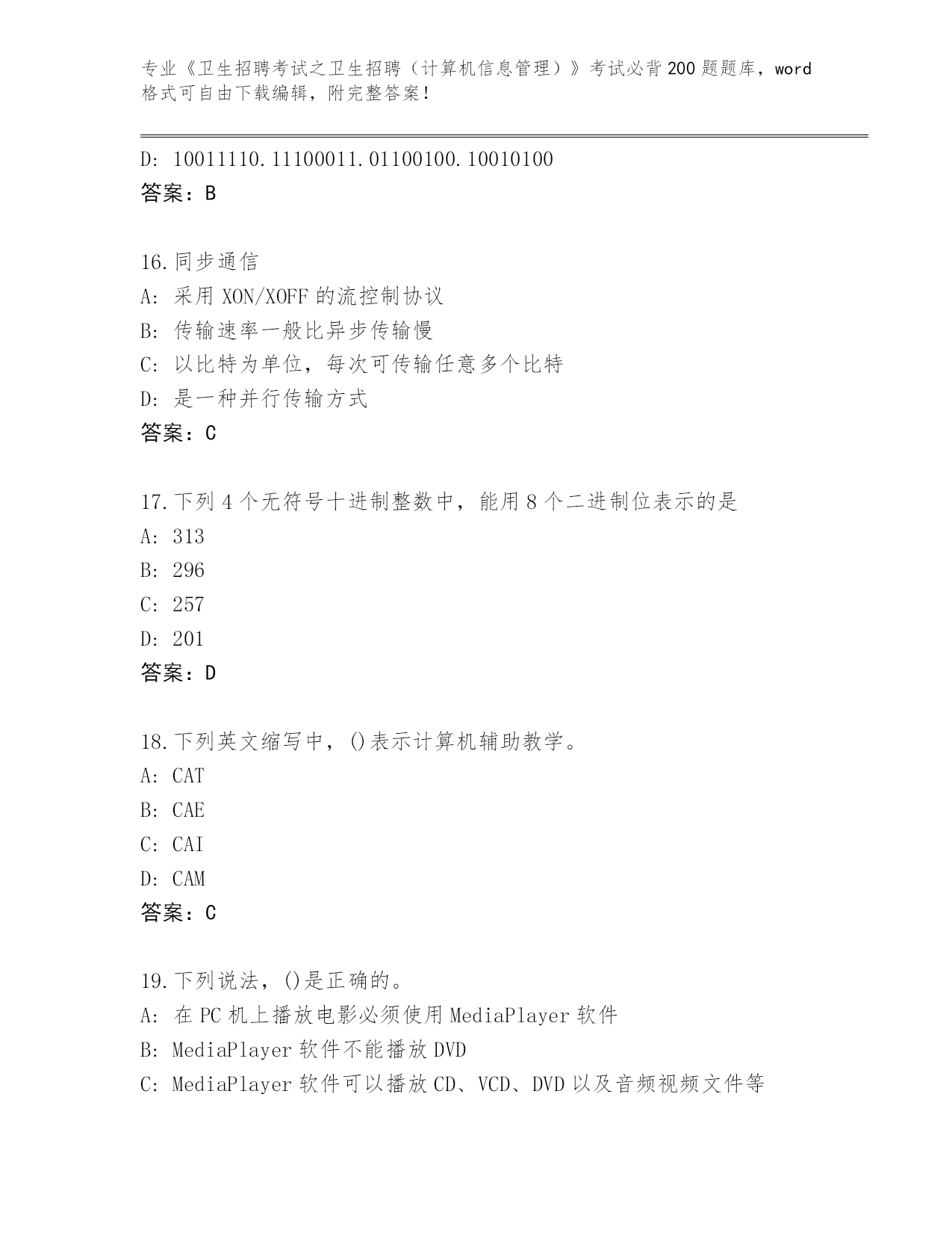 2024山西省垣曲县《卫生招聘考试之卫生招聘(计算机信息管理)》考试必背200题题库大全带答案(预热题)