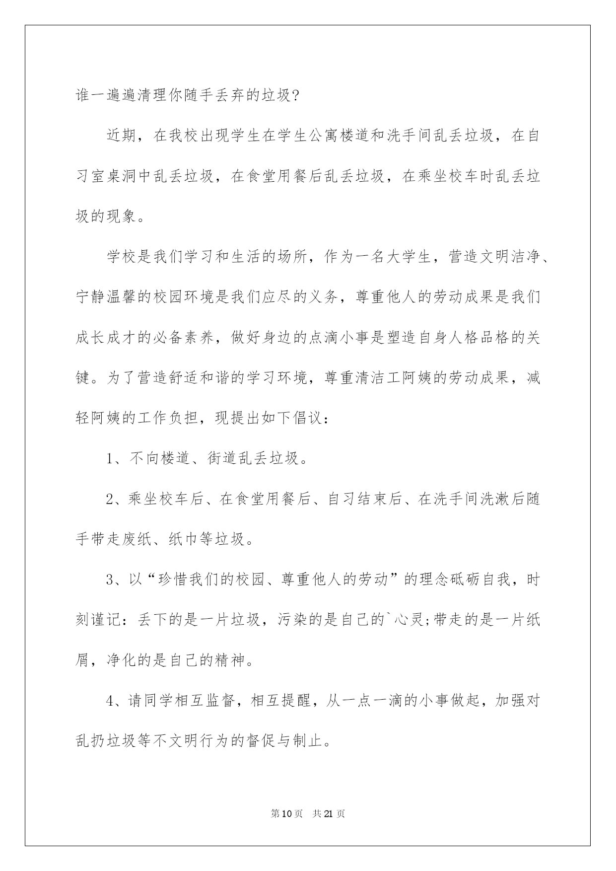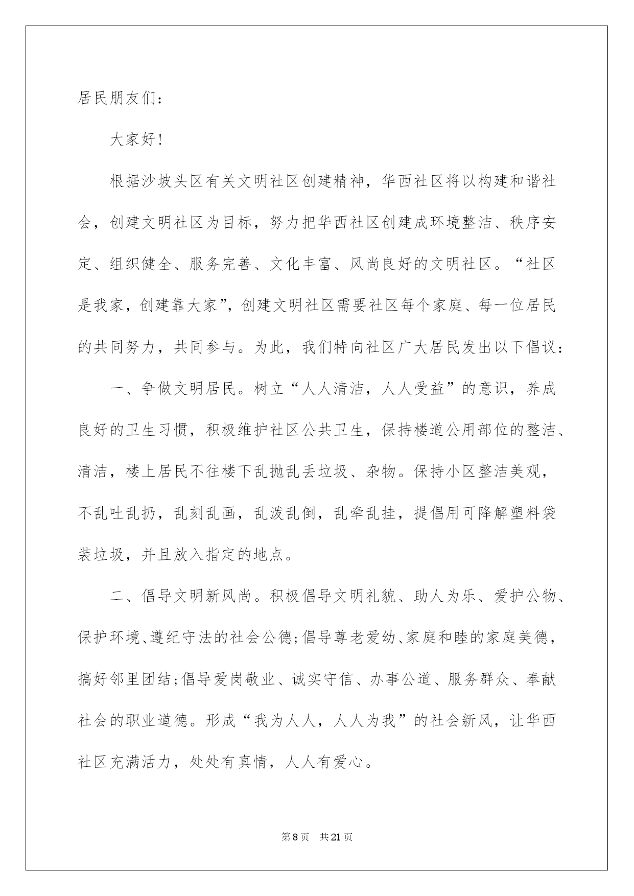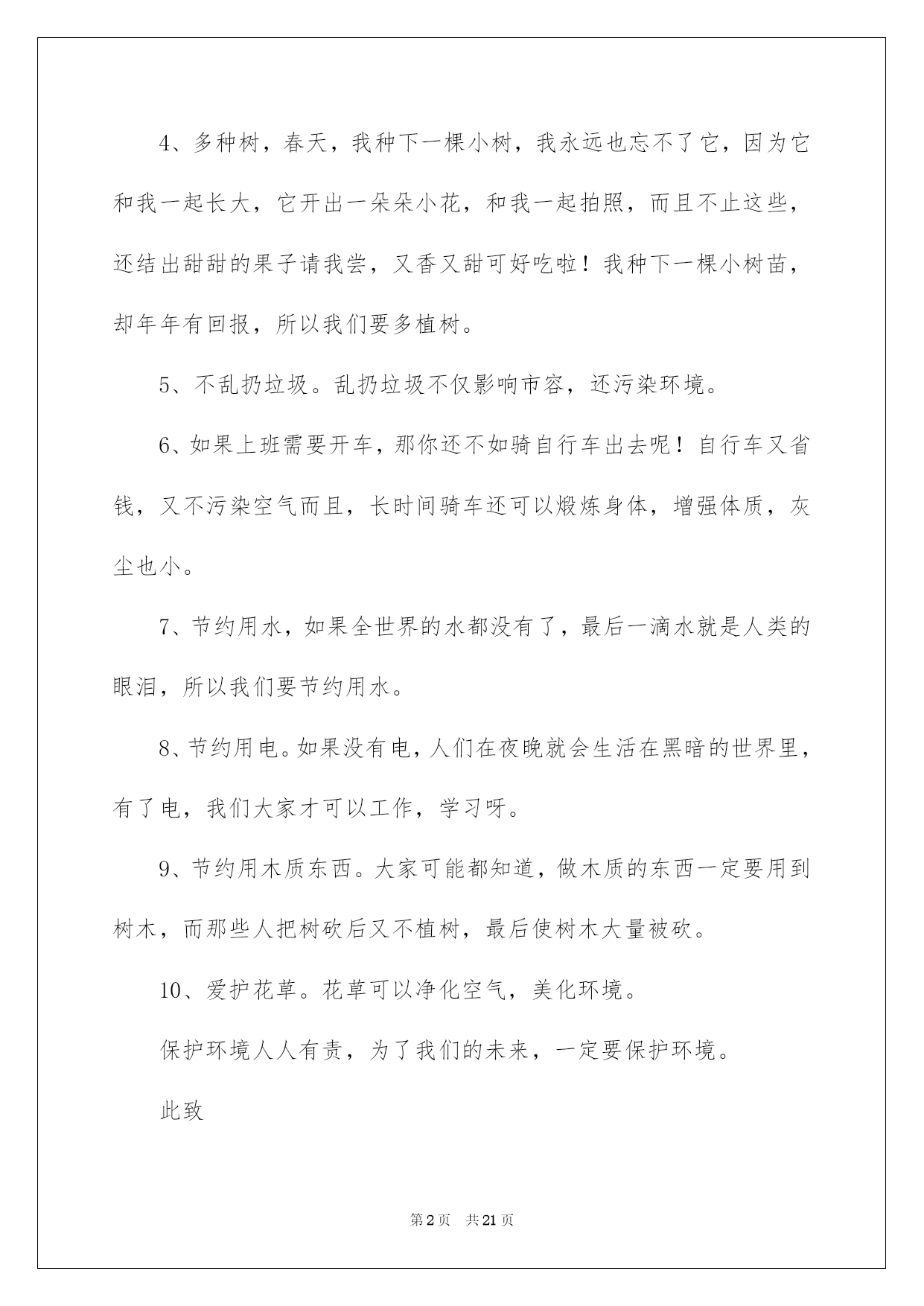 第PAGE\*Arabic\*MERGEFORMAT21页共NUMPAGES\*Arabic\*MERGEFORMAT21页第PAGE\*MERGEFORMAT21页共NUMPAGES\*MERGEFORMAT21页第PAGE\*MERGEFORMAT21页共NUMPAGES\*MERGEFORMAT21页第PAGE\*MERGEFORMAT21页共NUMPAGES\*MERGEFORMAT21页第PAGE\*MERGEFORMAT21页共NUMPAGES\*MERGEFORMAT21页第PAGE\*MERGEFORMAT21页共NUMPAGES\*MERGEFORMAT21页第PAGE\*MERGEFORMAT21页共NUMPAGES\*MERGEFORMAT21页第PAGE\*MERGEFORMAT21页共NUMPAGES\*MERGEFORMAT21页第PAGE\*MERGEFORMAT21页共NUMPAGES\*MERGEFORMAT21页第PAGE\*MERGEFORMAT21页共NUMPAGES\*MERGEFORMAT21页第PAGE\*MERGEFORMAT21页共NUMPAGES\*MERGEFORMAT21页2022环保倡议书环保倡议书在学习、工作生活中,倡议书应用范围愈来愈广泛,倡议书有利于倡议者交代清楚倡议活动的原因,以及当时的各种背景事实。还是对倡议书一筹莫展吗?以下是我整理的环保倡议书,欢迎大家分享。环保倡议书1全国的小朋友们:大家好!新的世纪,我们渴望干净的地球,渴望健康的地球,渴望环保的家园,渴望绿色、健康、卫生的社区遍地开花!让我们立即行动起来!在此,我们发出倡议:1、不乱砍滥伐,即使需要树木,伐过树后,也要植树,那样,才能使生态平衡。2、不丢一粒米,白米饭,香极了,我们吃饭不忘种田人,每一颗米来的都不容易,是大豆粒的汗珠换来的,优秀的儿童一定要爱惜它。3、不在树上乱刻,你看,你在树上乱刻,小树流下的水就像在流眼泪,小树苗哭了。4、多种树,春天,我种下一棵小树,我永远也忘不了它,因为它和我一起长大,它开出一朵朵小花,和我一起拍照,而且不止这些,还结出甜甜的果子请我尝,又香又甜可好吃啦!我种下一棵小树苗,却年年有回报,所以我们要多植树。5、不乱扔垃圾。乱扔垃圾不仅影响市容,还污染环境。6、如果上班需要开车,那你还不如骑自行车出去呢!自行车又省钱,又不污染空气而且,长时间骑车还可以煅炼身体,增强体质,灰尘也小。7、节约用水,如果全世界的水都没有了,最后一滴水就是人类的眼泪,所以我们要节约用水。8、节约用电。如果没有电,人们在夜晚就会生活在黑暗的世界里,有了电,我们大家才可以工作,学习呀。9、节约用木质东西。大家可能都知道,做木质的东西一定要用到树木,而那些人把树砍后又不植树,最后使树木大量被砍。10、爱护花草。花草可以净化空气,美化环境。保护环境人人有责,为了我们的未来,一定要保护环境。此致敬礼!倡议人:20xx年xx月x日环保倡议书2各位同学们:听奶奶说,儿时的她常常穿梭于青山绿水之间。山,矗立在面前,草木郁郁葱葱,山花簇簇。绵绵细雨唤起满山云雾,山峰在袅袅云烟中若隐若现,更显得雄伟险峻,让人觉得它神秘而美丽。可是现在呈现在我们眼前的山早已失去梦幻之感,因为:漫山遍野都是垃圾,树枝上挂着丑陋不堪的塑料袋,草丛里随处是晃眼的白色饭盒。人类不断地砍伐树木,破坏生态环境,再也无法与自然和谐相处。现在的我们是:同弃废弃物,同饮垃圾水。为了保护地球母亲赐予我们的宝贵的自然环境,我发出倡议如下:1.停止对森林的滥砍滥伐,积极开展植树造林活动;2.不随便丢弃垃圾,自觉将垃圾带出自然景区。大家互相监督,一旦发现有乱扔垃圾的人,立即上前制止;3.努力学习,多读有关自然的书,了解自然,了解环境与人类的关系;4.减少排放有害气体。尽量少烧秸秆、塑料等物体,避免其燃烧产物对自然地破坏。让我们向美好的环境宣誓:从我做起,积极践行;植绿护绿,保护生态;节约用水,杜绝污染;为保护环境奉献青春!此致敬礼!倡议人:20xx年xx月x日环保倡议书3亲爱的同学们:地球是我们可以生存的地方。如今科学技术十分发达,但是也带来非常多、非常大的隐患。如滥用化学用品、大肆砍伐树木、排放有害气体和液体……都严重威胁着我们的生活和生命健康。地球上的森林资源正在以每年1600万公顷的速度消失,人类虽年年高呼保护森林资源,但森林仍一年一年的消失。我们所用的每一张纸,无不是森林的杀手!我们处在求知的黄金时间,也是用纸的高峰期,但节约用纸是摆在我们面前的重要任务。没用完的纸,切不可随意丢弃,可以把它