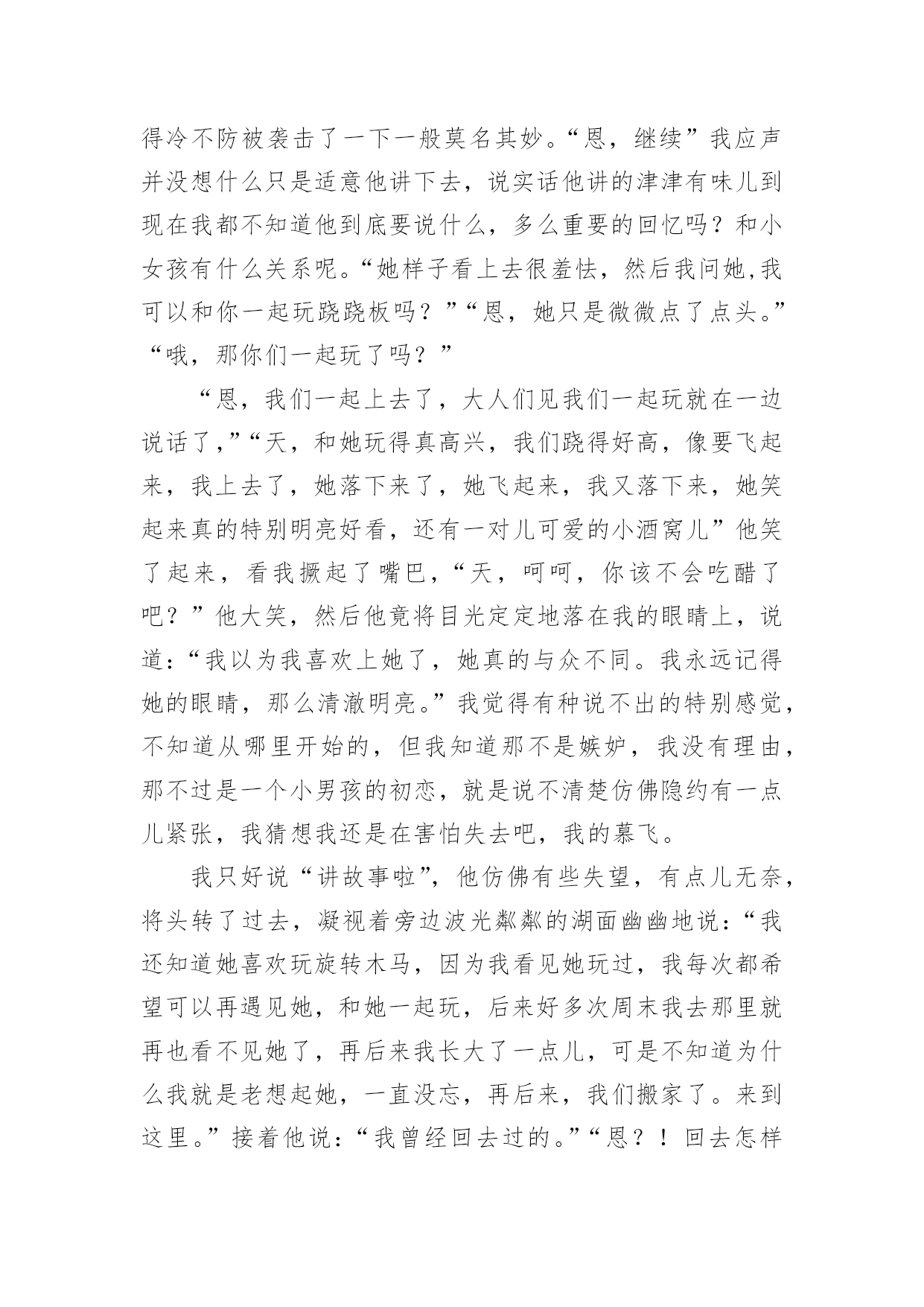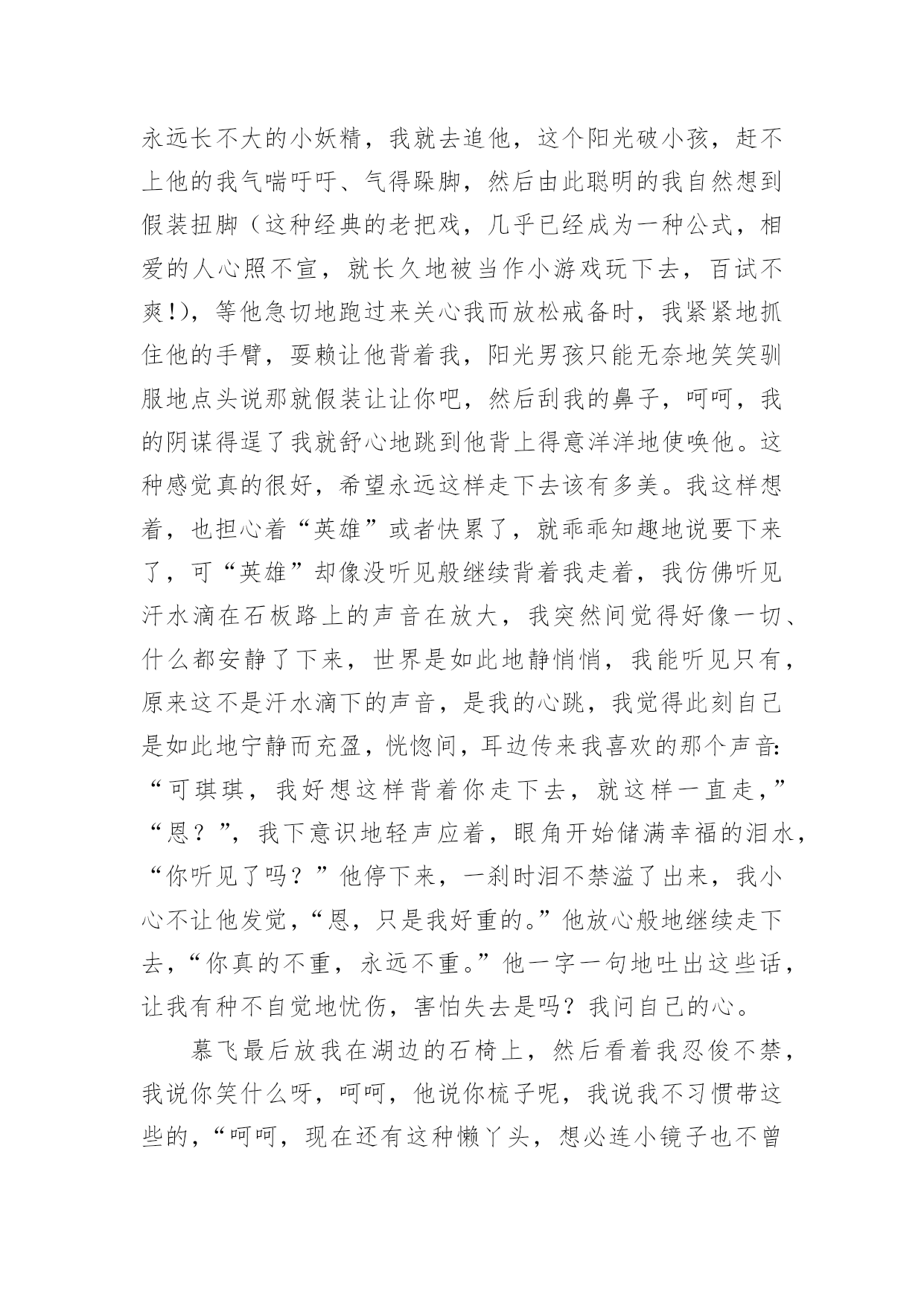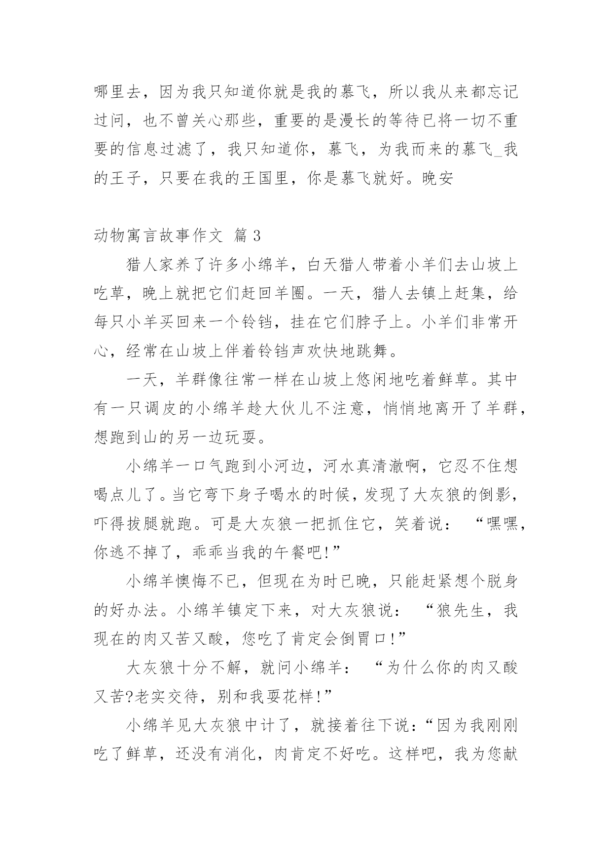 动物寓言故事作文动物寓言故事作文合集八篇在我们平凡的日常里,大家都接触过作文吧,作文是人们以书面形式表情达意的言语活动。写起作文来就毫无头绪?以下是小编为大家整理的动物寓言故事作文8篇,供大家参考借鉴,希望可以帮助到有需要的朋友。动物寓言故事作文篇1一天,小兔和兔妈妈要准备去旅行,他们在果园里摘了一个大西瓜,想在路上饿的时候吃。他们走啊走啊,看见一条小河挡住了他们的去路。就在这时,小兔想了一个好办法,他就说我们用刀把西瓜切开,然后再把西瓜的肉吃了,就变成了两条船了。兔妈妈觉得这个办法好,就开始做了。小船做好了,小兔和兔妈妈坐着小船高高兴兴地过了小河。他们又继续旅行了。动物寓言故事作文篇2我们也经常到公园去,看那些交好的小动物还有人工湖的湖水。那天,我跳起来去捉那些飘摆的灵动的柳叶,慕飞在旁边看着忍不住发笑“哈哈哈”,我白了他一眼嘴里边嘟囔“讨厌!”继续跳着固执地一定要捉到它们。后来被晾在旁边的他趁我不备乘机将我的头发揉乱,然后逃到一边嘲笑说我是永远长不大的小妖精,我就去追他,这个阳光破小孩,赶不上他的我气喘吁吁、气得跺脚,然后由此聪明的我自然想到假装扭脚(这种经典的老把戏,几乎已经成为一种公式,相爱的人心照不宣,就长久地被当作小游戏玩下去,百试不爽!),等他急切地跑过来关心我而放松戒备时,我紧紧地抓住他的手臂,耍赖让他背着我,阳光男孩只能无奈地笑笑驯服地点头说那就假装让让你吧,然后刮我的鼻子,呵呵,我的阴谋得逞了我就舒心地跳到他背上得意洋洋地使唤他。这种感觉真的很好,希望永远这样走下去该有多美。我这样想着,也担心着“英雄”或者快累了,就乖乖知趣地说要下来了,可“英雄”却像没听见般继续背着我走着,我仿佛听见汗水滴在石板路上的声音在放大,我突然间觉得好像一切、什么都安静了下来,世界是如此地静悄悄,我能听见只有,原来这不是汗水滴下的声音,是我的心跳,我觉得此刻自己是如此地宁静而充盈,恍惚间,耳边传来我喜欢的那个声音:“可琪琪,我好想这样背着你走下去,就这样一直走,”“恩?”,我下意识地轻声应着,眼角开始储满幸福的泪水,“你听见了吗?”他停下来,一刹时泪不禁溢了出来,我小心不让他发觉,“恩,只是我好重的。”他放心般地继续走下去,“你真的不重,永远不重。”他一字一句地吐出这些话,让我有种不自觉地忧伤,害怕失去是吗?我问自己的心。慕飞最后放我在湖边的石椅上,然后看着我忍俊不禁,我说你笑什么呀,呵呵,他说你梳子呢,我说我不习惯带这些的,“呵呵,现在还有这种懒丫头,想必连小镜子也不曾带的吧?”“我,我才不要那些,自然最好了!”“呵呵,你等下,先在这里休息,我马上回来,记得别乱走啊。”“哦,我知道了,我又不是小孩子。可是_”你要去做什么,我还没来得及出口他已经跑出去好远回头向我招手,看见阳光深处他矫健的背影,我觉得瞬时格外宁静,记忆似在苏醒,树影斑驳,仿佛旧梦,这一恍如同隔世般。他微笑地向我走来,开心的样子,手里提了个小袋子,“呵呵,喏,梳子和镜子来了。”然后拿出来给我看,我手里拿着镜子,再熟悉不过的自己的影子,果然蓬头垢面的,真是自己看了也觉得狼狈呢,刚才玩得太疯了吧?我看见那个镜子里的自己在对我微笑,谜一样神秘般的微笑似曾相识,仿佛画里……完全不可思议的两个奇妙的组合。那温柔的声音,我从镜子中注意到他在看我,深深,凝视般,然后是声音:“我可以,可以给你梳头发吗?”我本来应该发笑的因为这比较好玩,男孩给人家梳头,呵呵,我只见过丫鬟给主子梳头的,在电视里,书上也说过名士给夫人梳头的,却从没亲见过,只是记忆里有一次,嚷着让爸爸给自己梳头,唯一的一次,有些怀念。可是这,应该是不一样的吧?终于我笑不出来了,安静地,因为想念,也因为看见他眼里的认真和无限温柔。终于我点了点头,“恩,那我开始了”,他从我手中拿起那把木梳,的的确确的木梳,檀香木。刚刚从他手里接过的时候,我闻过那香味儿,很舒服,我曾经买过的那只坏掉了,于是我不服,换了把牛角梳,不晓得我是怎么搞的,总是弄断那些梳子,呵呵。那感觉轻轻地、他抚摩我的头发,然后握在手里,一缕一缕地梳顺,然后,他从他的衬衫兜里我从镜子里看见,拿出一根头绳,是紫色的,水晶紫_我喜欢的颜色,原来他竟也这般细心,有发觉到的。“恩,你怎么有这个,”我问,“咦?被你发现了啊,我想悄悄换掉的。”“恩,见你头上那只旧了,买来想送你的,可是带在身上居然不知道要怎么说出口。”心想慕飞居然有不好意思,暗暗高兴他真的在意我呢,我就说,“哦,你的预谋。”他愉快地笑了,“旧的这只,就送我吧,上面还有你的头发呢,呵呵”他顺手塞进口袋里,仿佛怕我来抢的架势。“梳好了,美女看看怎样?”我打量自己,注意到自己被梳理好的光滑柔顺的头发,人也顿时精神许多。我点点头表示满意,“恩,真是个漂亮的马尾呢。”我笑了,“你好古怪呀。”“恩,从前就想遇到她时一定