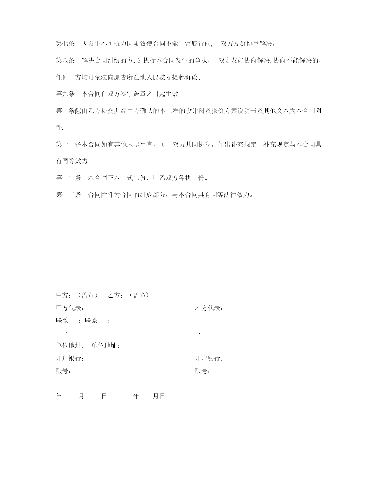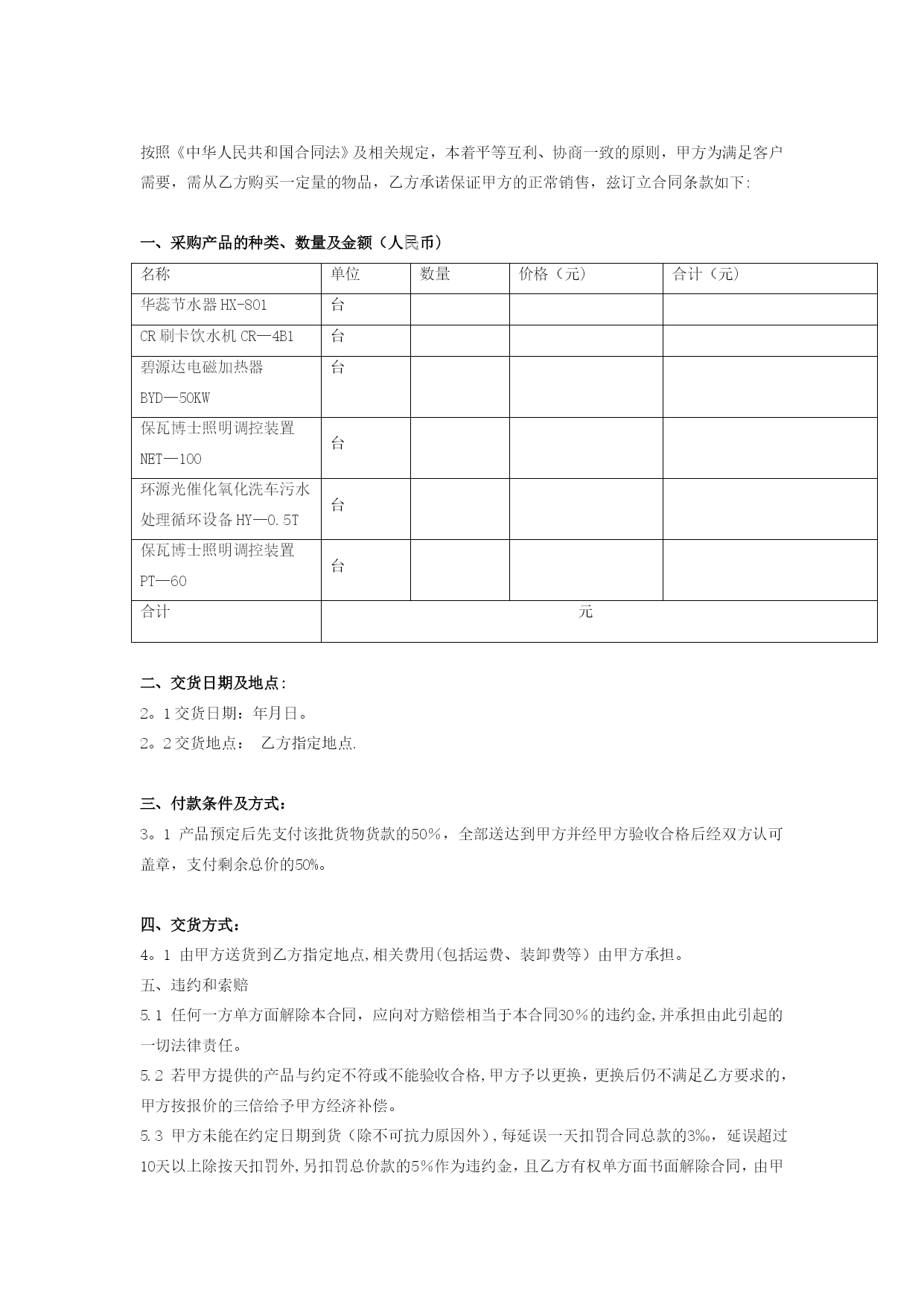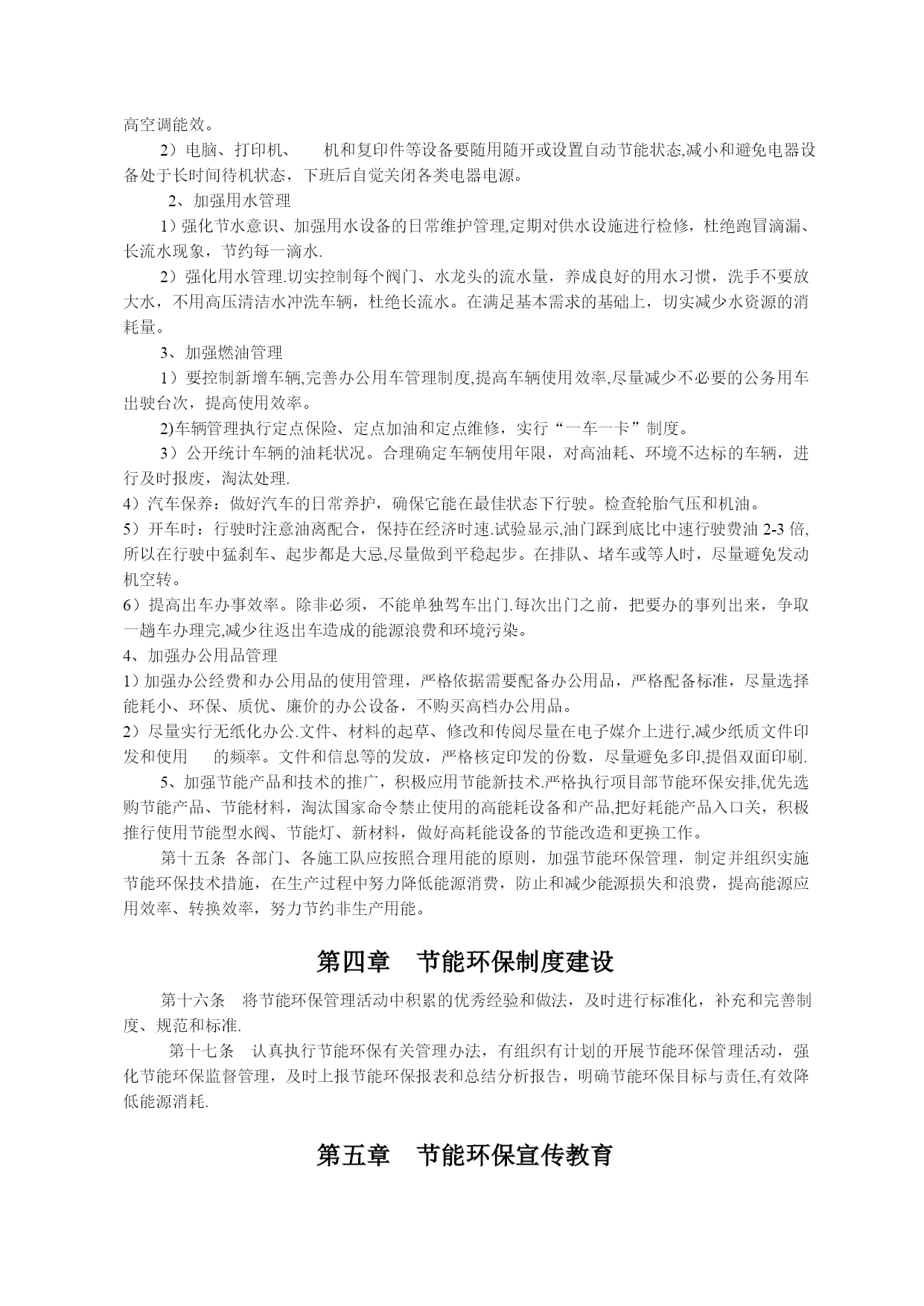 节能环保设备安装项目合同(可以直接使用,可编辑优秀版资料,欢迎下载)节能环保设备安装合同发包单位:(以下简称甲方)承包单位:(以下简称乙方)根据《中华人民共和国合同法》等有关法律、法规的规定,在平等、自愿的基础上,甲乙双方就乙方安装节能环保设备达成如下协议:第一条甲方委托乙方安装节能环保项目概况:项目,材料及人工安装费用共计元。第二条乙方工程材料进场时,由甲方确认并指定货物堆放地点(甲方指定的地点必须是具有安全保证的),工程材料的安全由甲乙方共同负责.乙方安装调试相关设备完毕,甲方现场验收合格,并签字验收认可;未有甲乙双方验收签字,材料、设备不得使用、安装。第三条设备的安装、调试、验收:1、乙方负责的安装、调试。甲乙双方商定:(1)年月日之前,乙方派出工程技术及施工人员到达现场开始安装施工;(2)年月日之前,完成设备安装及系统的调试运转;全部工程完工及验收。2、安装质量标准按国家规范及行业要求,以及乙方和厂家提供的工程安装设计说明。乙方负责提供产品合格证书、材料合格证、产品保修单、日常运行操作程序说明及故障咨询。产品安装方案以乙方提出并经甲方同意为准;需更改设计方案的,须经双方协商同意;涉及机型调整的,应签定合同的补充文本加以确认。第四条价款结算方式及期限:1、本合同价款为双方约定方式支付安装维护工程款(固定价款);2、本合同工程安装总价款为人民币:_____元(大写:);(1)合同签定后,甲方支付乙方(第一期工程款)人民币(占合同总金额的___%)________元(大写:);(2)乙方工程材料(非成品)进场,甲方验收签字,甲方三日内支付乙方(第二期工程款)人民币(占合同总金额的__%)_________________元(大写:);(3)工程尾款(占合同总金额的_%)元(大写:_____________________元),设备调试完毕,工程竣工验收合格后,甲方三天内付清。甲方未付清全款以前,材料及设备权属为乙方。第五条违约责任一、乙方责任:1、工程现场乙方负责人全面负责安装施工现场及安全工作;2、乙方无故拖延工期的,每拖延一天,应向甲方支付价款的1‰的违约金,但因甲方原因造成的除外。3、在施工过程中,乙方应加强现场教育,采取必要的安全措施,乙方工人如发生工伤或疾病,甲方有责任协助抢救,所需费用由乙方负担.4、由于安装不合质量要求,造成的责任及损失由乙方负责.二、甲方责任:1、甲方中途终止工程,应向乙方偿付合同款的50%的违约金。2、甲方未能按合同规定时间支付工程款的,每迟一天,甲方应向乙方支付合同款总额的1‰的违约金,但违约金总额不超过合同款总额的20%。如甲方在达到此限额后仍不能付款,乙方有权终止合同,并追回设备,且甲方应承担乙方的经济损失,乙方也可追究甲方有关的法律责任。第六条产品质量责任和售后服务条款1。自验收之日起,工程保修期为一年。在质量保证期外由于产品质量问题,则乙方收取基本维修费用,更换损坏零部件的,按所更换零部件出厂价格收取费用。2.质保期结束后,乙方为设备使用方提供终身有偿维护服务。服务内容与方式,由使用方和乙方另行自愿签定合同予以确定。第七条因发生不可抗力因素致使合同不能正常履行的,由双方友好协商解决。第八条解决合同纠纷的方式:执行本合同发生的争执,由双方友好协商解决.协商不能解决的,任何一方均可依法向原告所在地人民法院提起诉讼。第九条本合同自双方签字盖章之日起生效.第十条由乙方提交并经甲方确认的本工程的设计图及报价方案说明书及其他文本为本合同附件.第十一条本合同如有其他未尽事宜,可由双方共同协商,作出补充规定,补充规定与本合同具有同等效力。第十二条本合同正本一式二份,甲乙双方各执一份。第十三条合同附件为合同的组成部分,与本合同具有同等法律效力。甲方:(盖章)乙方:(盖章)甲方代表:乙方代表:联系:联系:::单位地址:单位地址:开户银行:开户银行:账号:账号:年月日年月日第一章总则第一条为切实做好项目部节能环保管理工作,加强节能环保管理,提升节能环保综合管理水平,预防和减少环保事故的发生,保障节能环保工作有效开展,特制定本制度。第二条指导思想:致力于建设资源节约型和环境友好型项目,大力推行清洁生产,节约能源及提高能源利用效率,减少污染物排放,保障可持续发展.第三条本制度适于项目部内部用水、用电、用油、用材等能源、资源消耗的管理。第二章节能环保组织建设第四条项目部成立节能环保领导小组,全面部署项目节能环保工作,指导解决工作中的重大问题。第五条项目部节能环保办公室设为工程部,全面负责项目节能环保工作的组织实