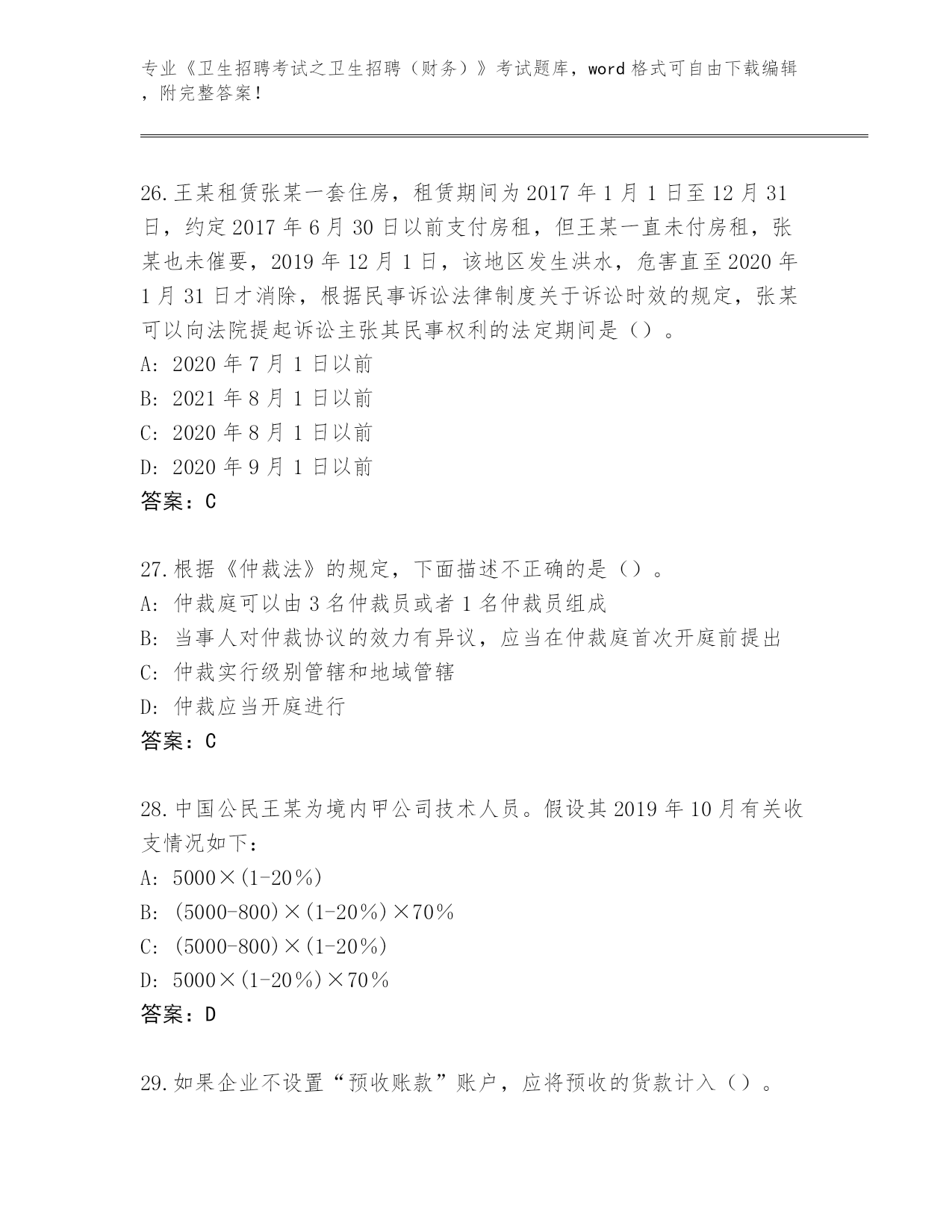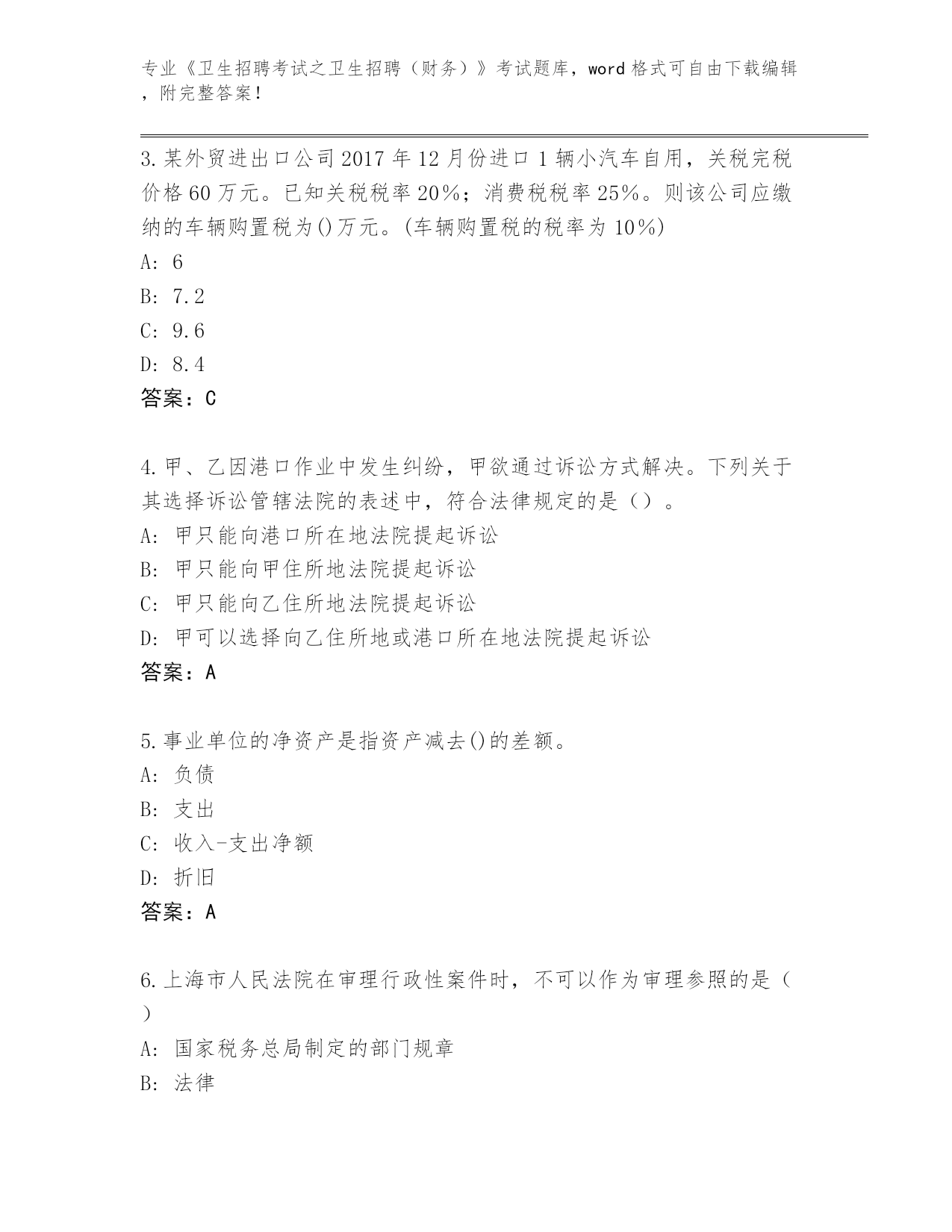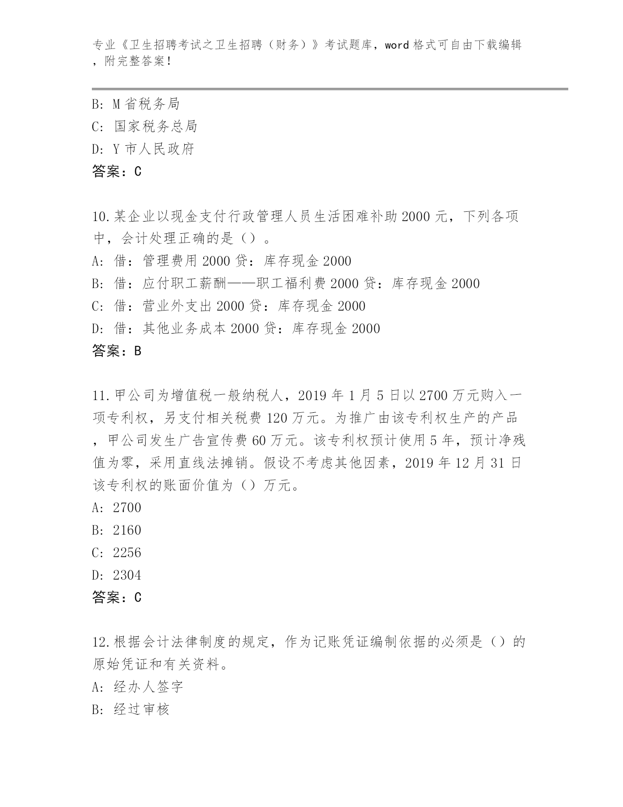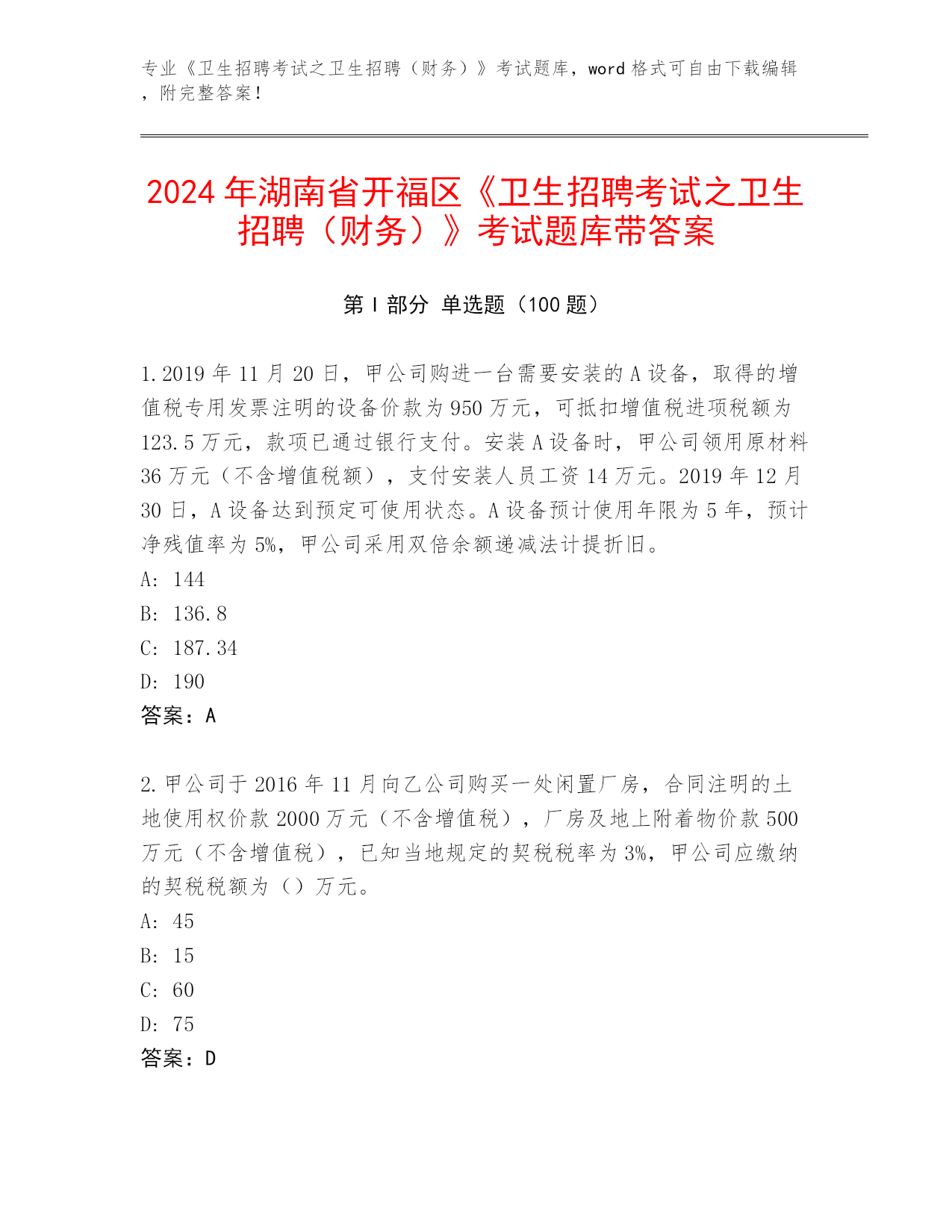 2024年湖南省开福区《卫生招聘考试之卫生招聘(财务)》考试王牌题库带下载答案