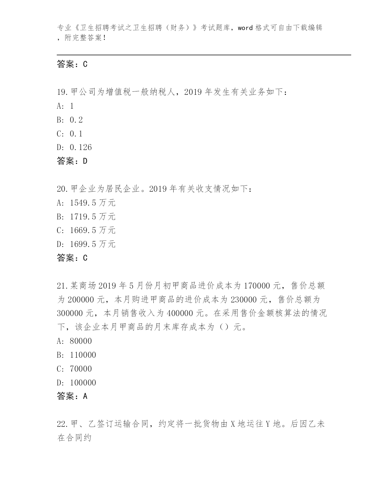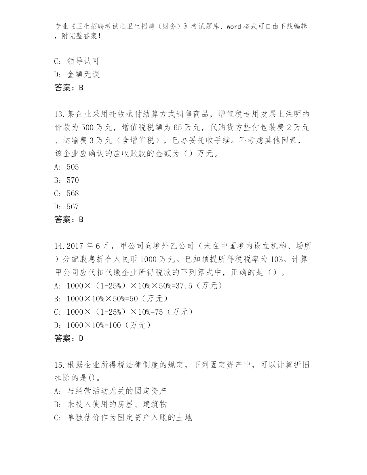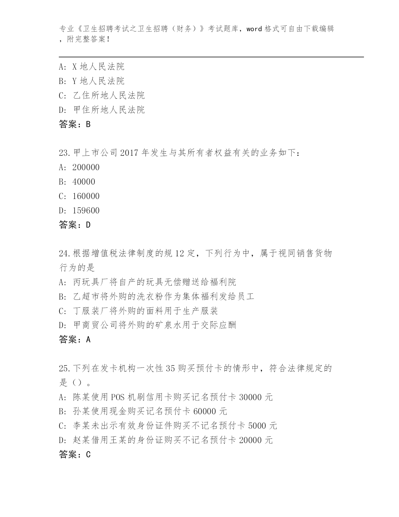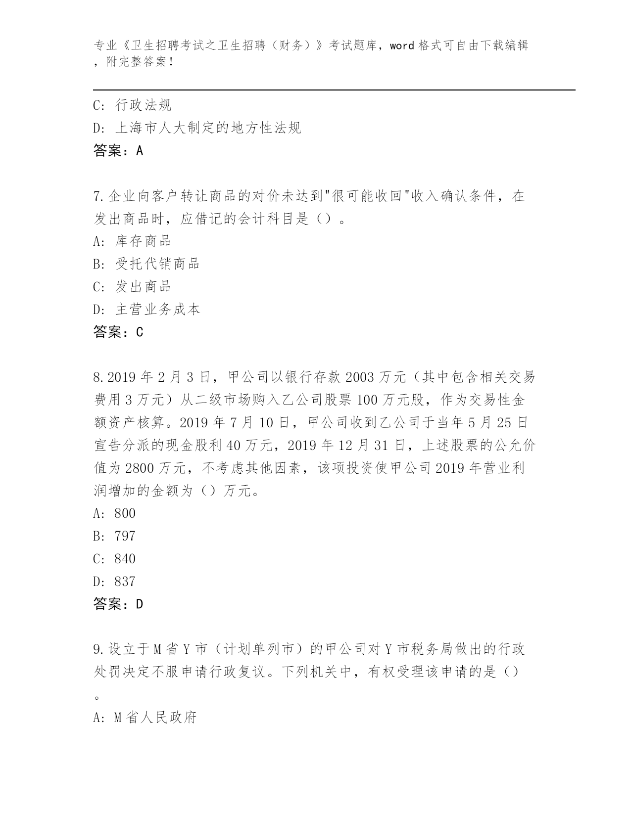 2024年湖南省开福区《卫生招聘考试之卫生招聘(财务)》考试王牌题库带下载答案