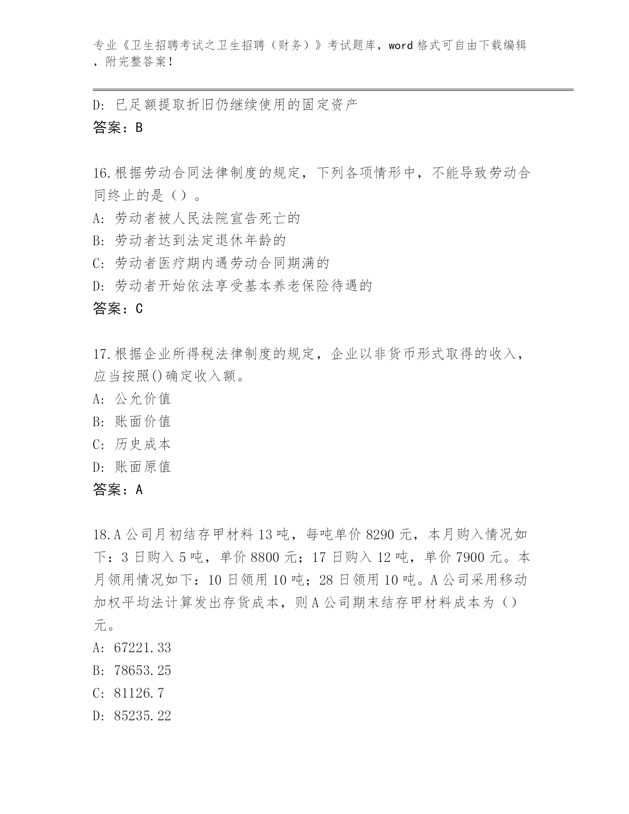 湖南省开福区历年《卫生招聘考试之卫生招聘(财务)》资格考试必刷200题大全带答案(精练)