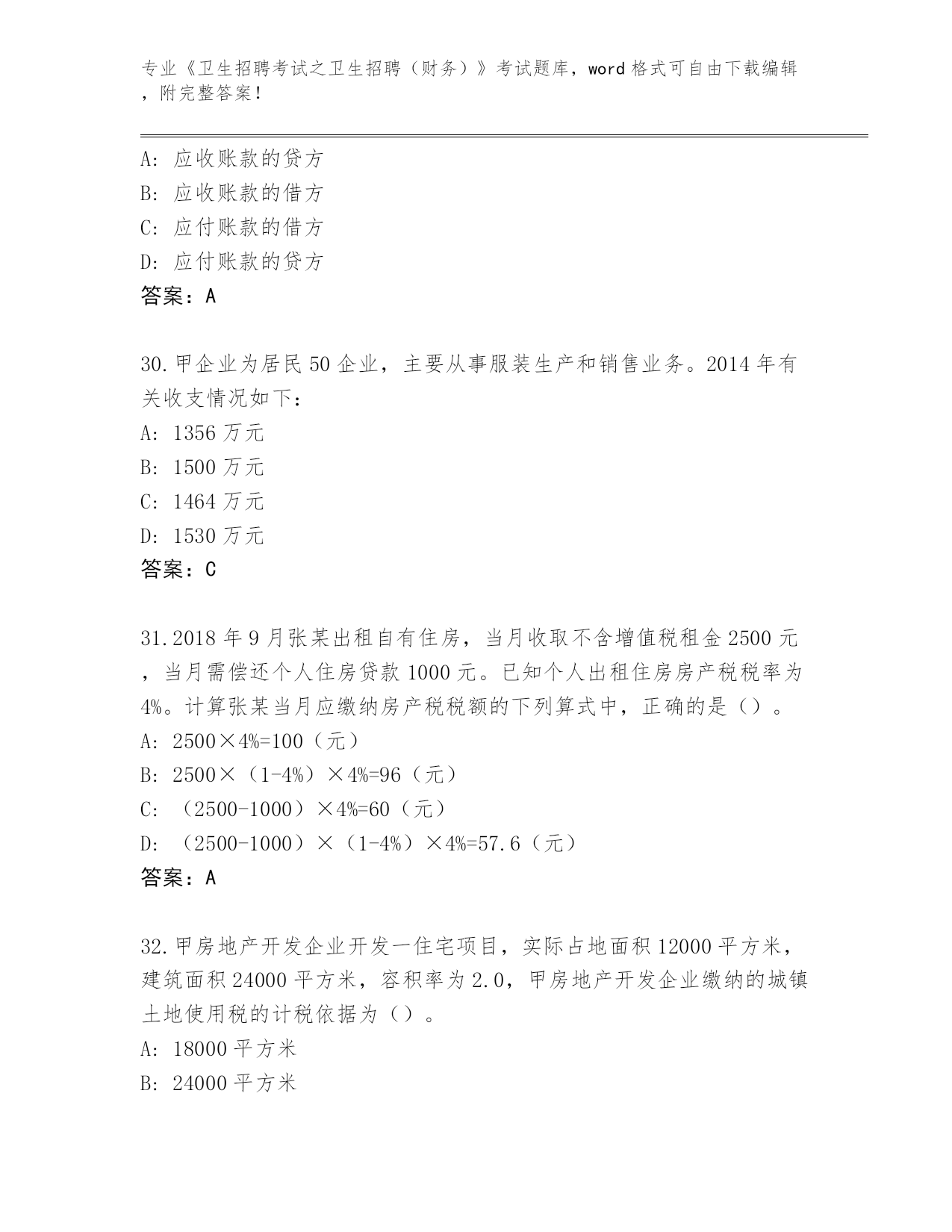 2024年湖南省开福区《卫生招聘考试之卫生招聘(财务)》资格考试题库带答案(模拟题)