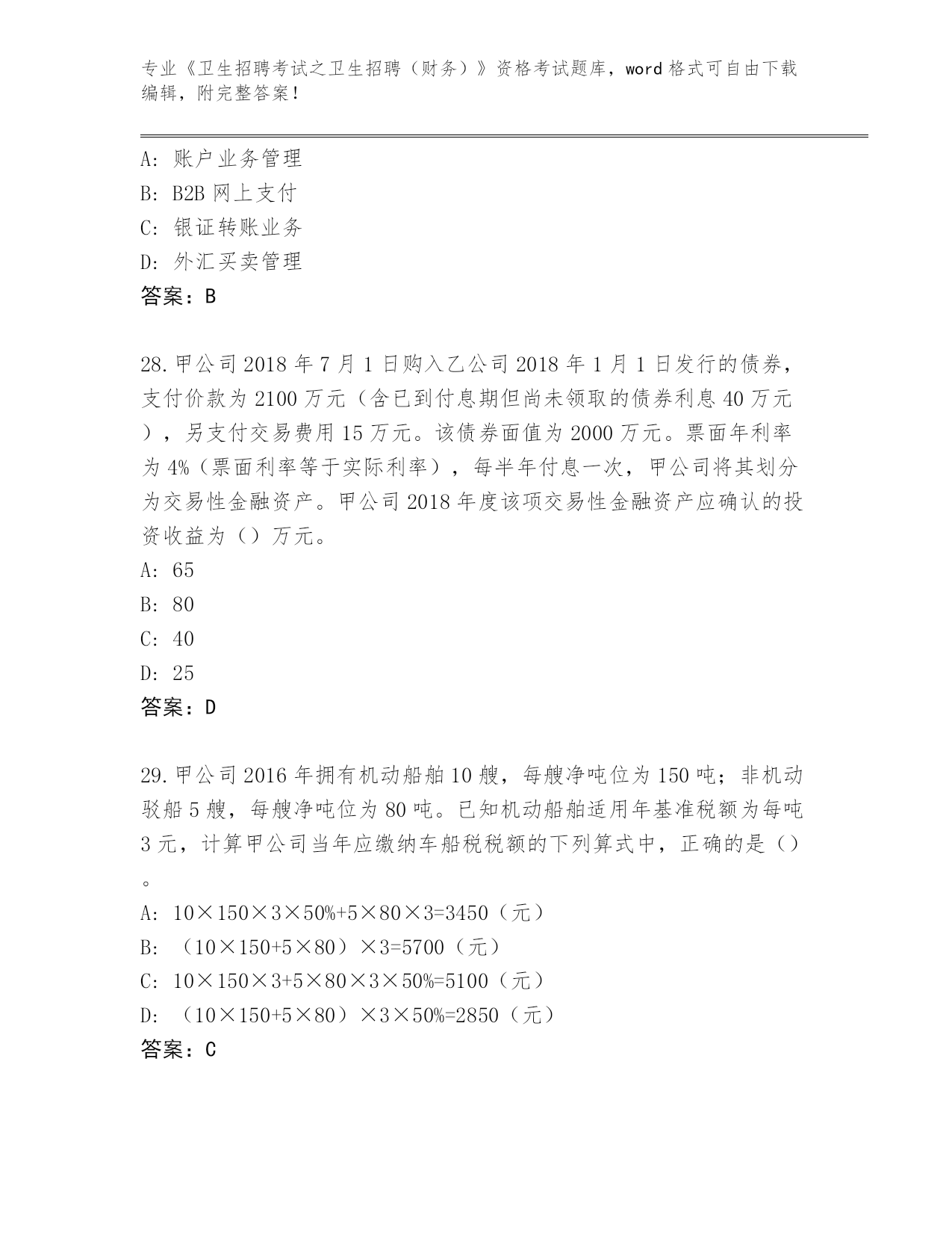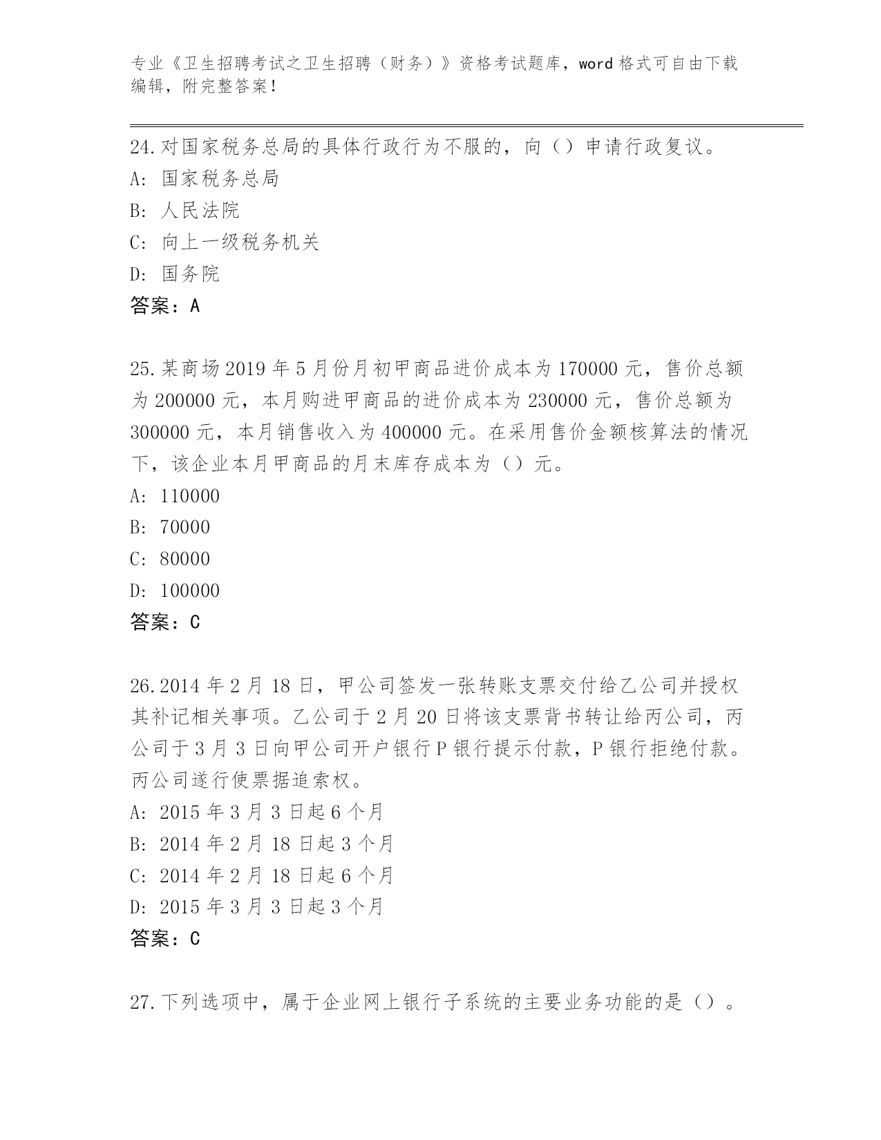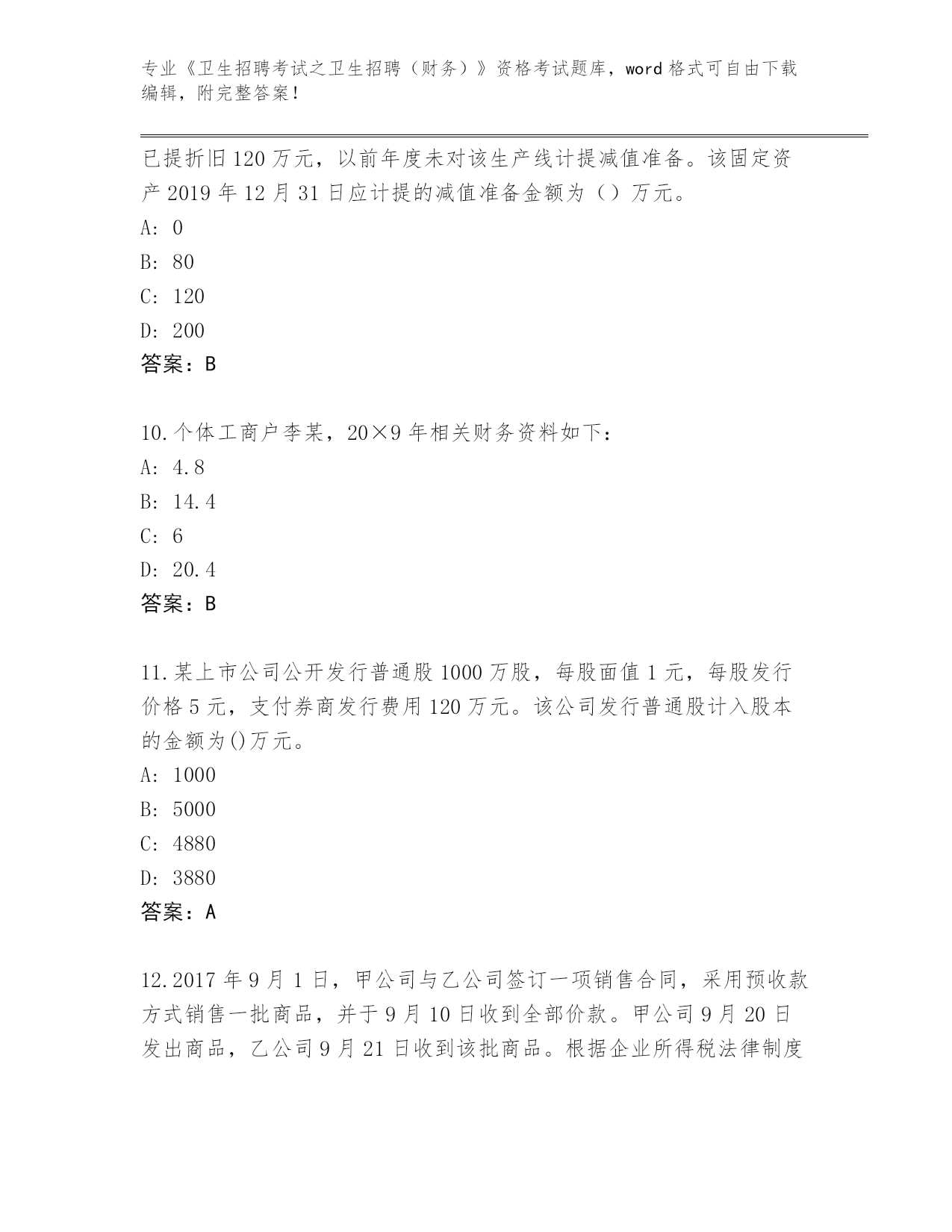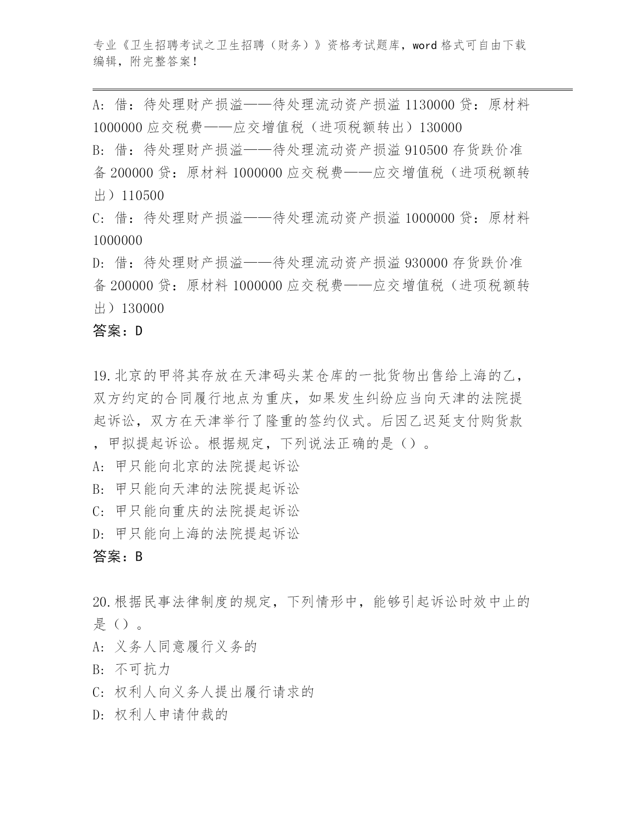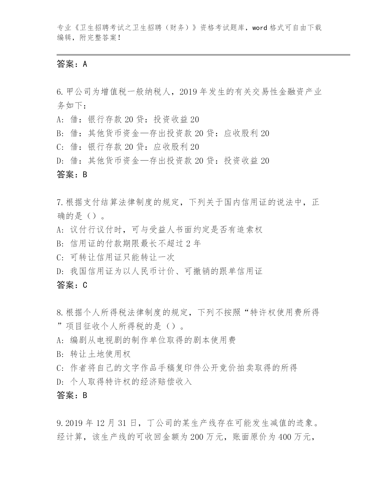 2024年河北省肥乡县《卫生招聘考试之卫生招聘(财务)》资格考试完整题库【易错题】