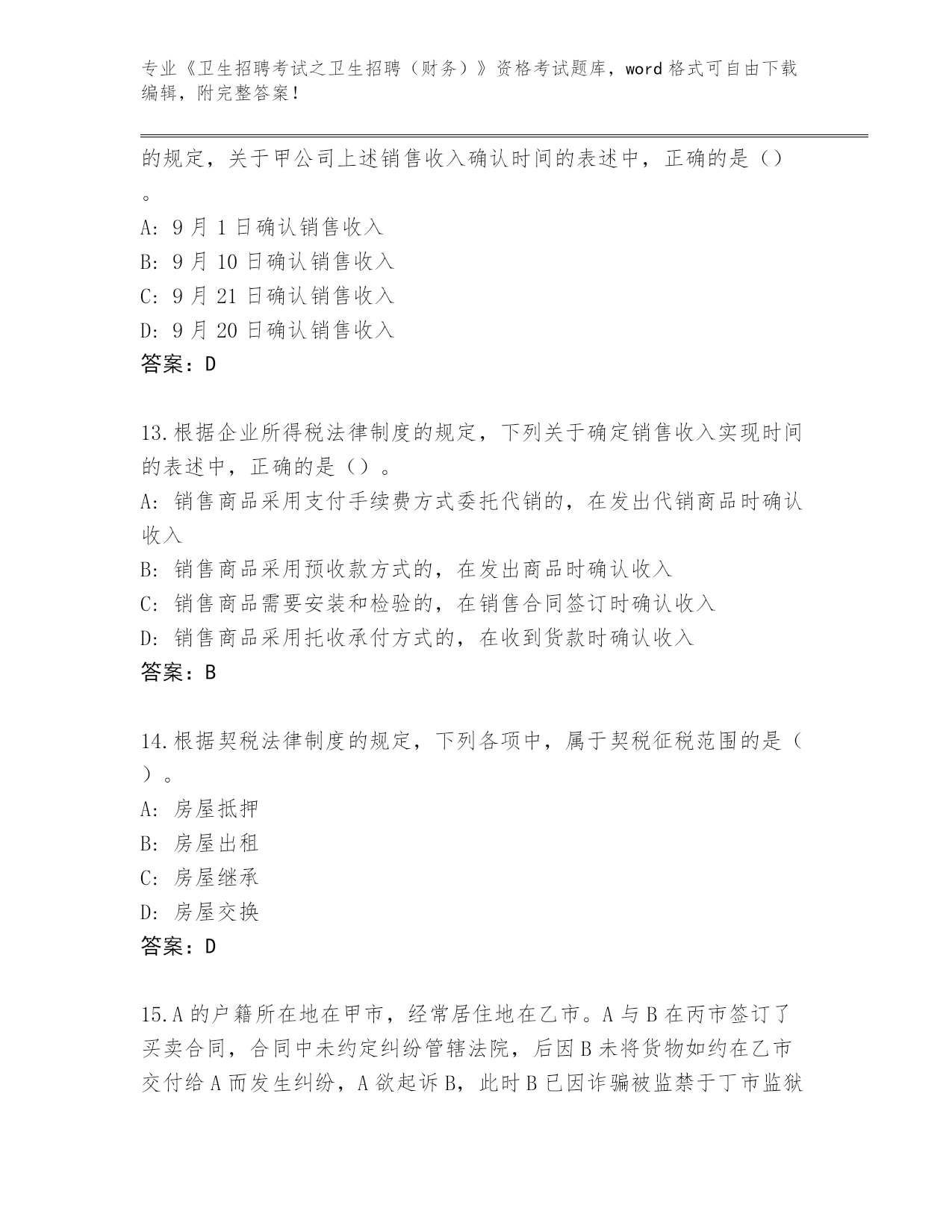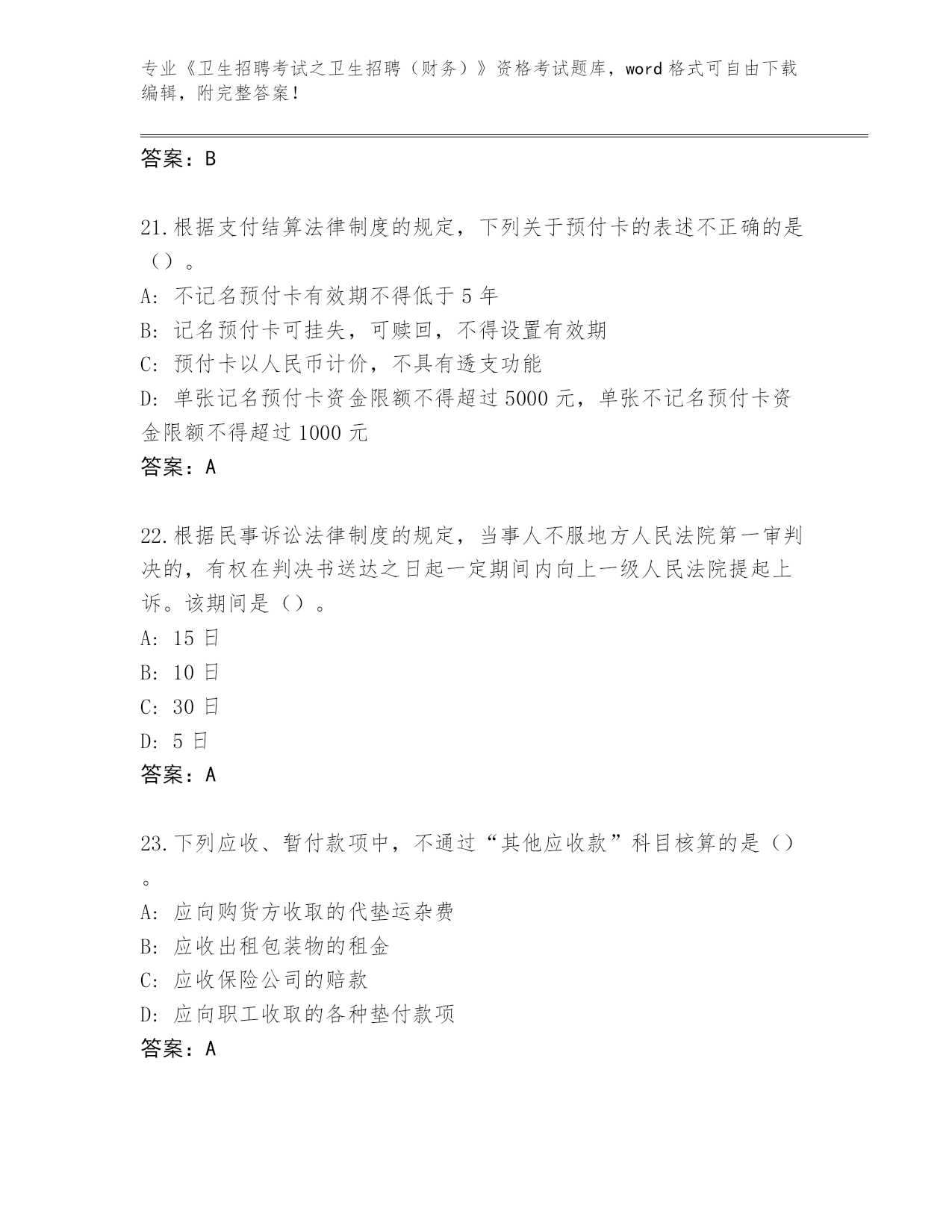 2023-2024年河北省《卫生招聘考试之卫生招聘(财务)》资格考试完整题库(易错题)