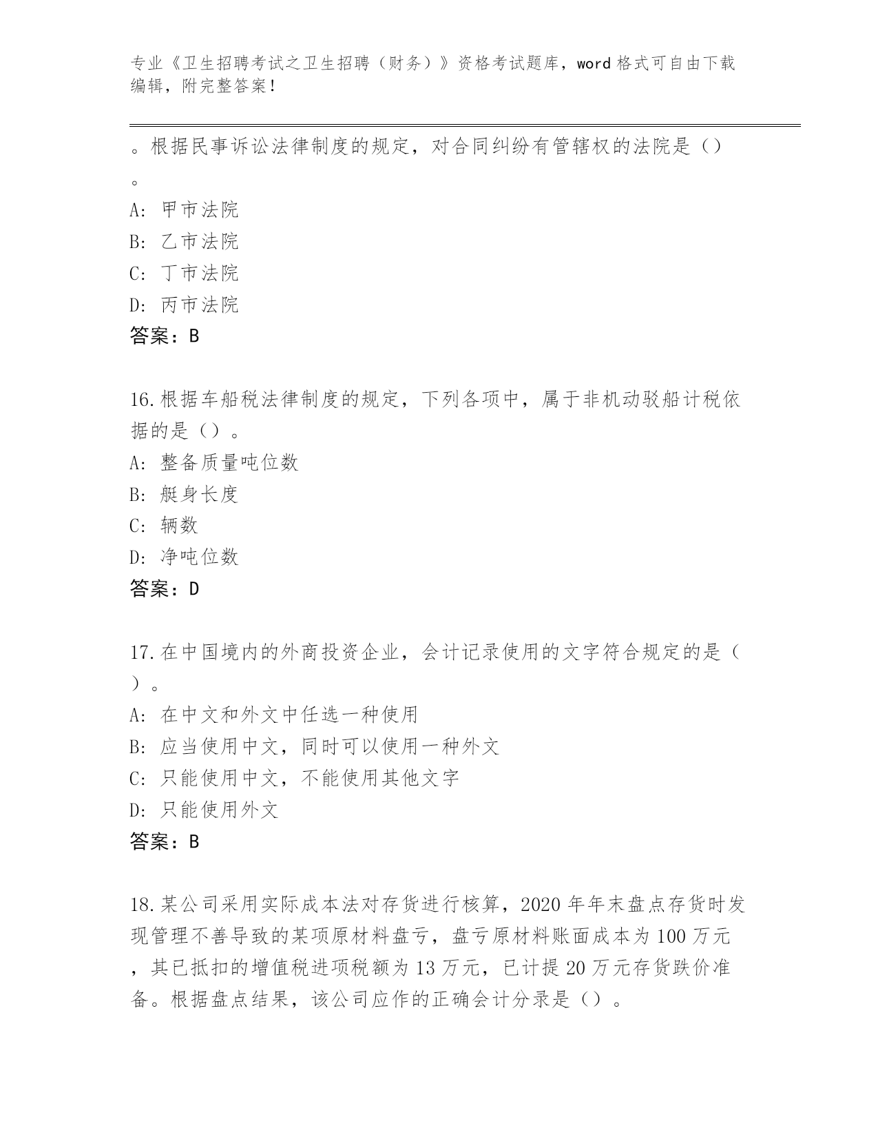 完整版安徽省《卫生招聘考试之卫生招聘(财务)》资格考试(易错题)