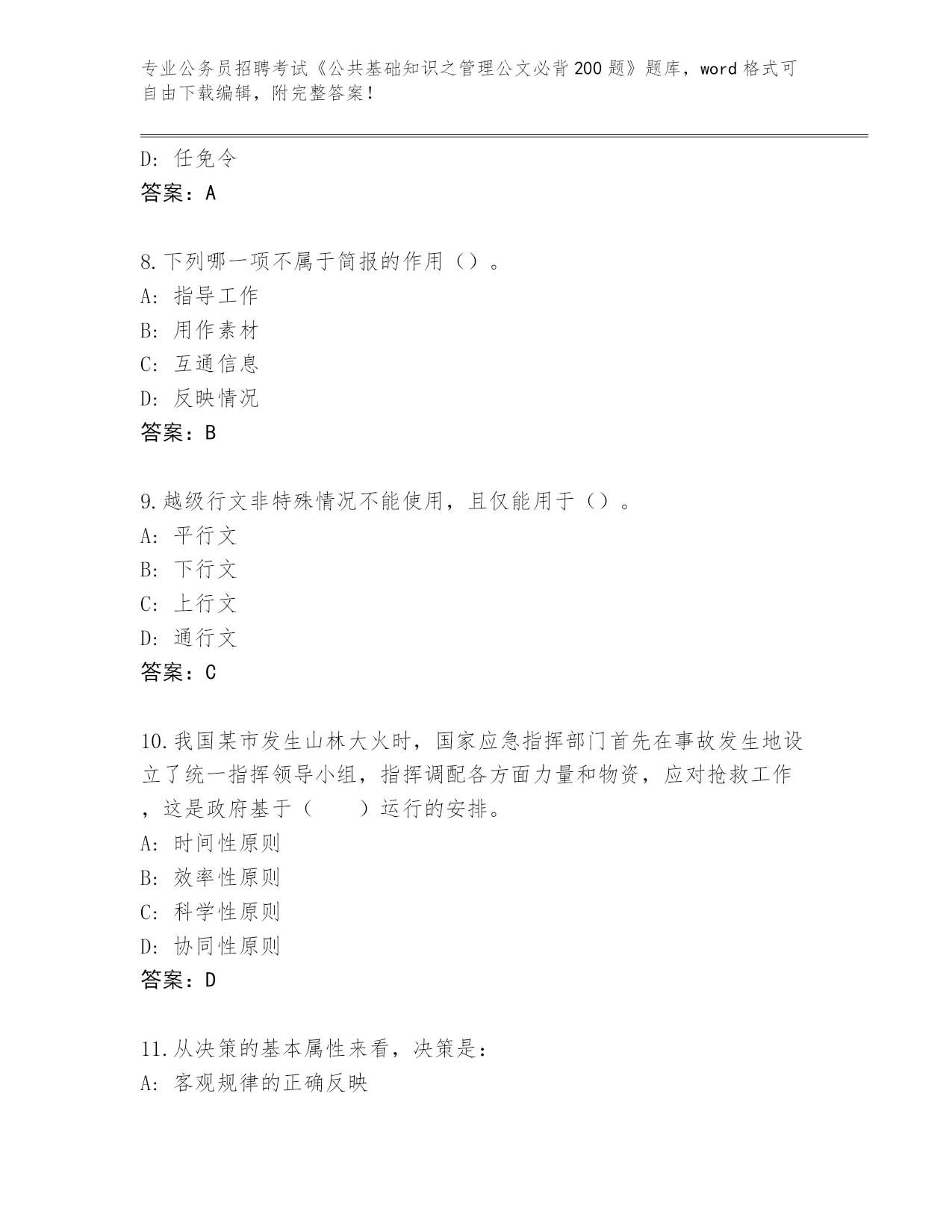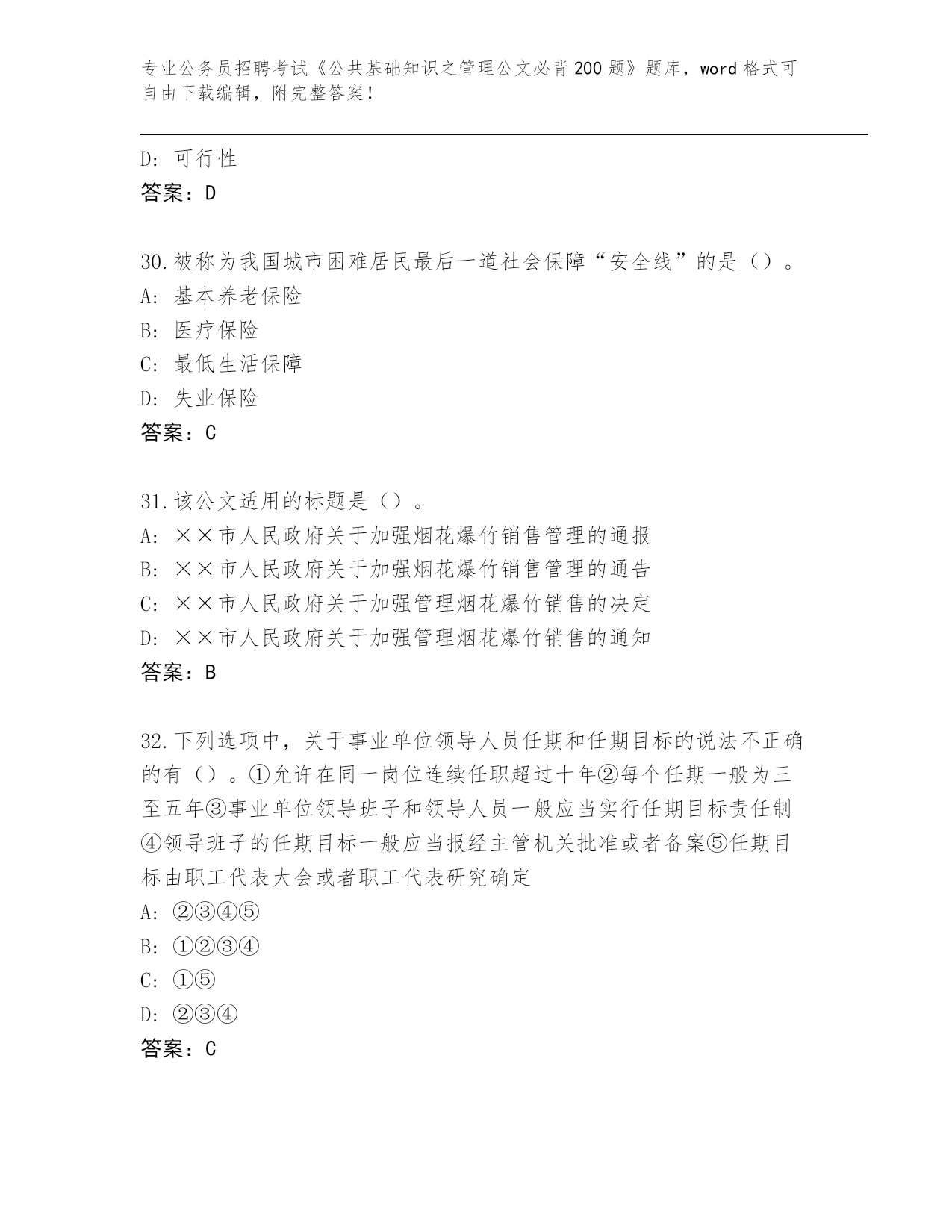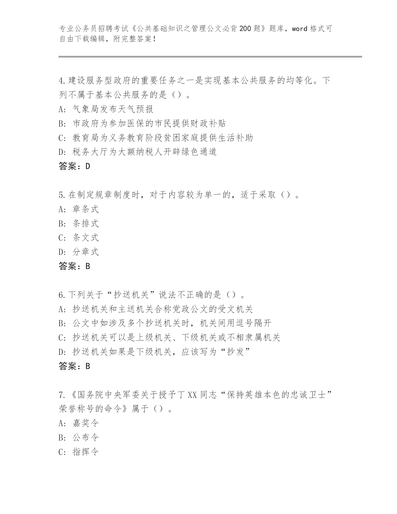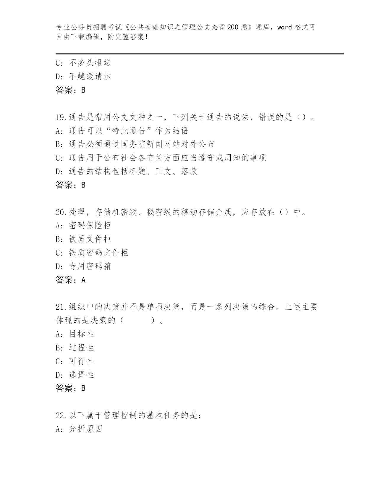 河北省滦县完整版公务员招聘考试《公共基础知识之管理公文必背200题》真题【B卷】.docx