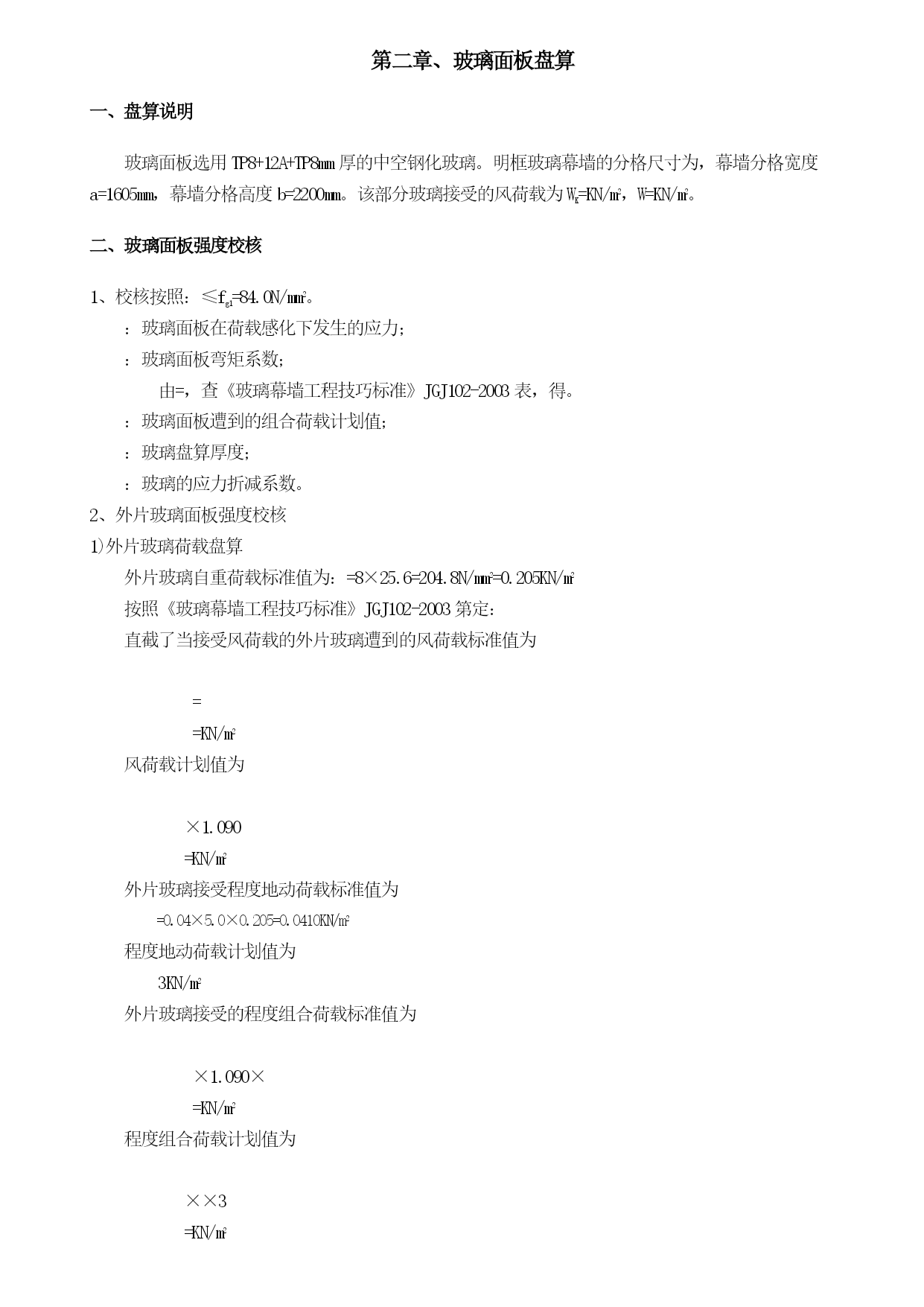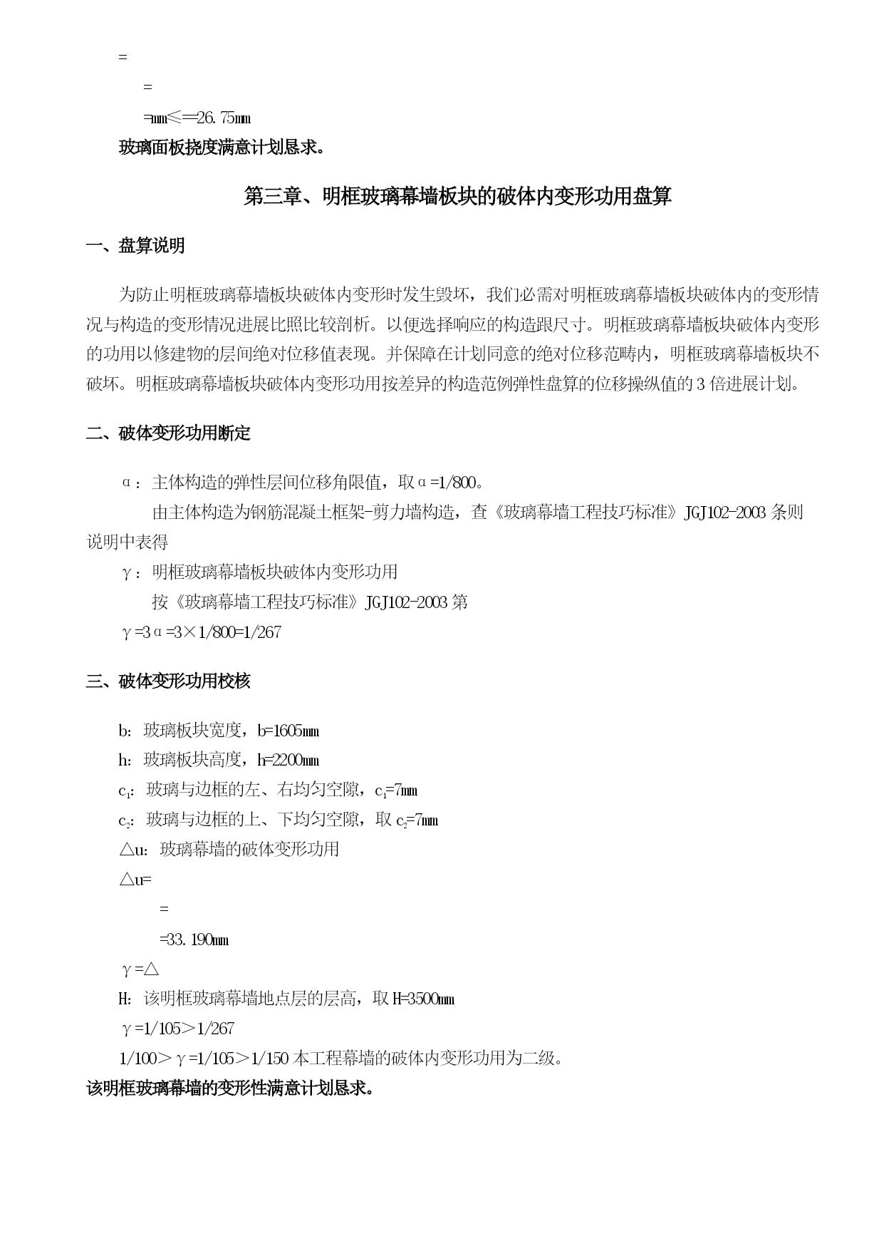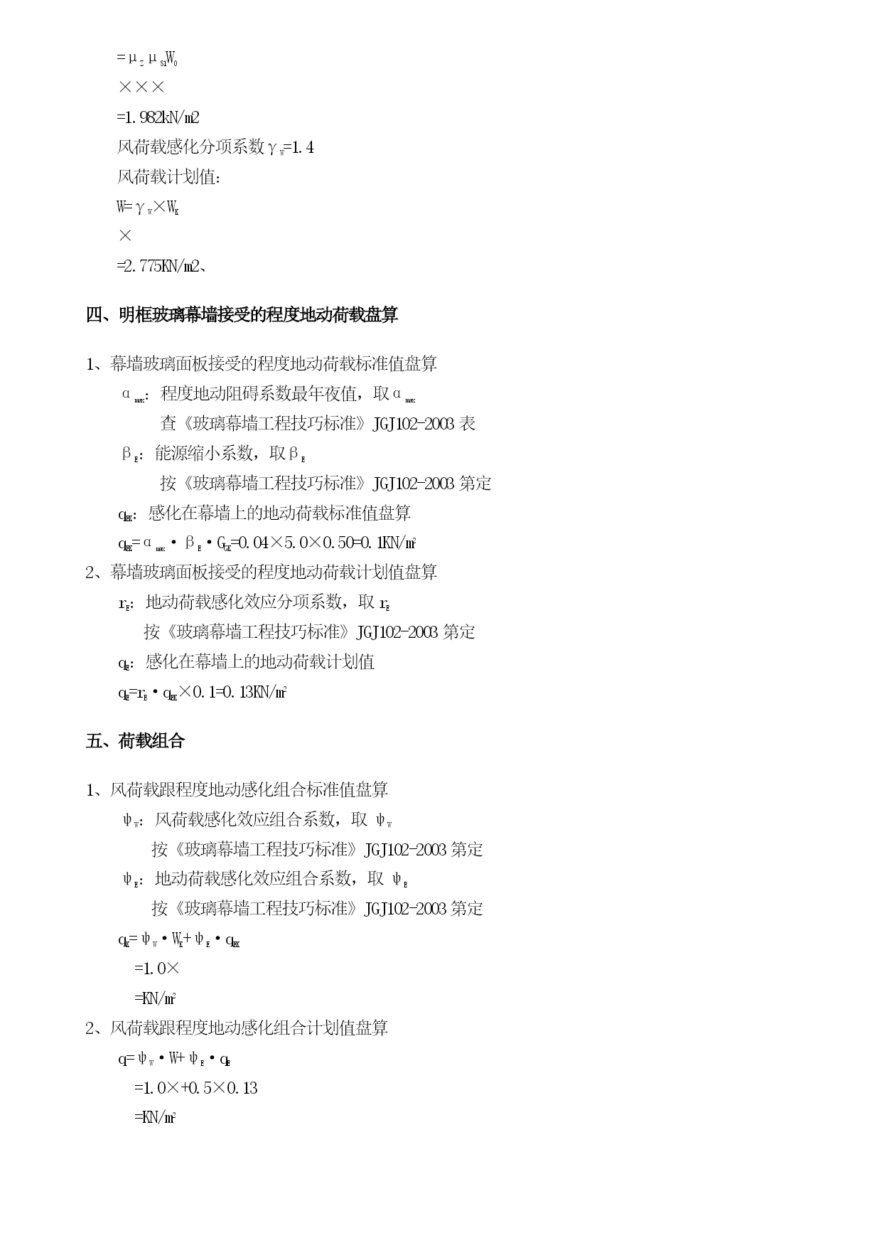 目录TOC\o"1-3"\h\z\uHYPERLINK"_Toc169337300"第一部分、盘算书计划按照PAGEREF_Toc169337300\h9HYPERLINK"_Toc169337301"第二部分根本参数及要紧材料计划目的PAGEREF_Toc169337301\h10HYPERLINK"_Toc169337302"1、根本参数PAGEREF_Toc169337302\h10HYPERLINK"_Toc169337303"2、6063-T5铝型材(壁厚≤10mm)PAGEREF_Toc169337303\h10HYPERLINK"_Toc169337304"3、6063A-T5铝型材(壁厚≤10mm)PAGEREF_Toc169337304\h11HYPERLINK"_Toc169337305"4、浮法玻璃〔厚度5~12mm〕PAGEREF_Toc169337305\h11HYPERLINK"_Toc169337306"5、钢化玻璃〔厚度5~12mm〕PAGEREF_Toc169337306\h11HYPERLINK"_Toc169337307"6、3003铝单板〔、厚〕PAGEREF_Toc169337307\h11HYPERLINK"_Toc169337308"7、构造硅酮密封胶PAGEREF_Toc169337308\h12HYPERLINK"_Toc169337309"8、Q235B钢PAGEREF_Toc169337309\h12HYPERLINK"_Toc169337310"9、构造用不锈钢(0Gr18Ni9)PAGEREF_Toc169337310\h12HYPERLINK"_Toc169337311"10、奥氏体不锈钢螺栓〔A2-70〕PAGEREF_Toc169337311\h12HYPERLINK"_Toc169337312"11、焊缝(Ⅱ级焊缝,焊缝厚度或直径d≤16mm)PAGEREF_Toc169337312\h12HYPERLINK"_Toc169337313"12、C30钢筋混凝土PAGEREF_Toc169337313\h13HYPERLINK"_Toc169337314"13、Φ5mm抽芯铝铆钉PAGEREF_Toc169337314\h13HYPERLINK"_Toc169337315"第三部分、幕墙风荷载感化值盘算PAGEREF_Toc169337315\h13HYPERLINK"_Toc169337316"第一章、盘算说明PAGEREF_Toc169337316\h13HYPERLINK"_Toc169337317"第二章、幕墙风荷载盘算PAGEREF_Toc169337317\h13HYPERLINK"_Toc169337318"一、程度风荷载值盘算PAGEREF_Toc169337318\h13HYPERLINK"_Toc169337319"二、各幕墙分项风荷载盘算值PAGEREF_Toc169337319\h15HYPERLINK"_Toc169337320"第四部分、明框玻璃幕墙构造盘算PAGEREF_Toc169337320\h17HYPERLINK"_Toc169337321"第一章、荷载盘算PAGEREF_Toc169337321\h17HYPERLINK"_Toc169337322"一、盘算说明PAGEREF_Toc169337322\h17HYPERLINK"_Toc169337323"二、明框玻璃幕墙自重荷载盘算PAGEREF_Toc169337323\h17HYPERLINK"_Toc169337324"三、明框玻璃幕墙接受的程度风荷载盘算PAGEREF_Toc169337324\h17HYPERLINK"_Toc169337325"四、明框玻璃幕墙接受的程度地动荷载盘算PAGEREF_Toc169337325\h18HYPERLINK"_Toc169337326"五、荷载组合PAGEREF_Toc169337326\h18HYPERLINK"_Toc169337327"第二章、玻璃面板盘算PAGEREF_Toc169337327\h19HYPERLINK"_Toc169337328"一、盘算说明P
