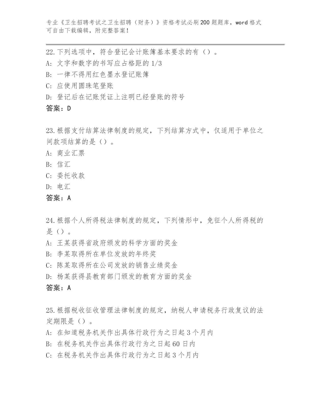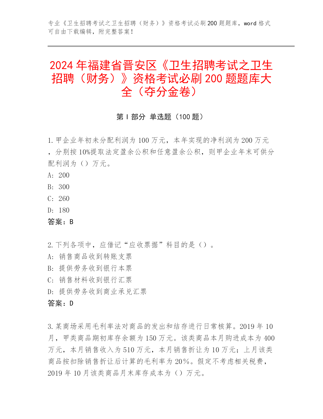 2024年福建省晋安区《卫生招聘考试之卫生招聘(财务)》资格考试必刷200题题库大全(夺分金卷)