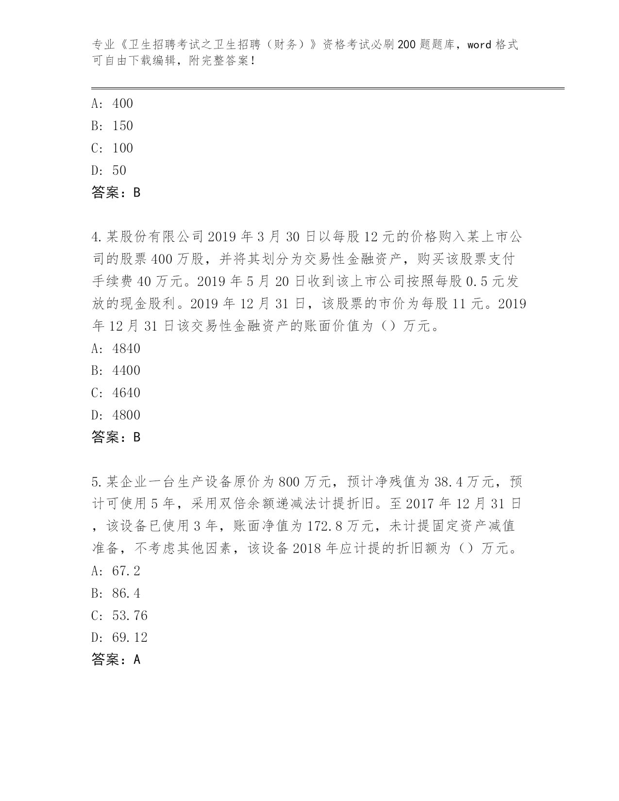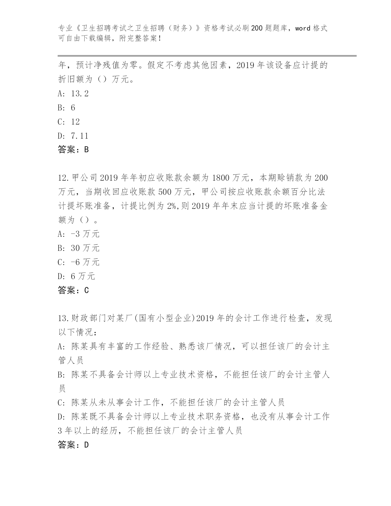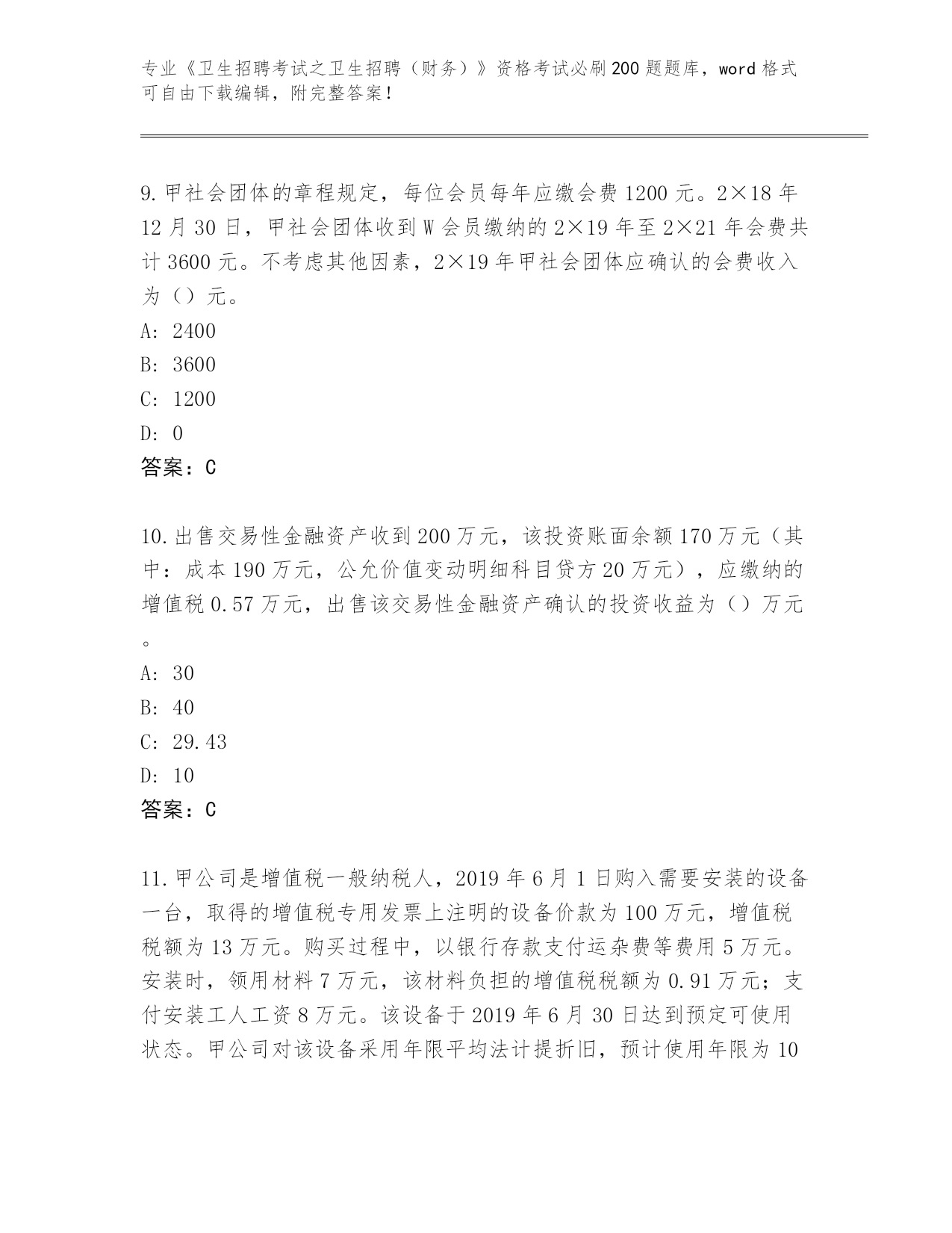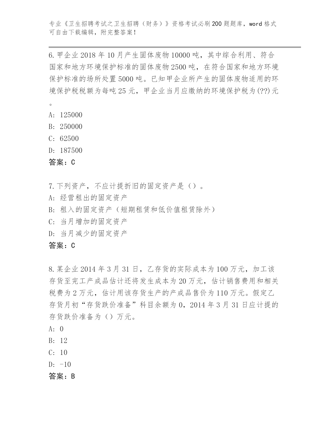 福建省晋安区整理《卫生招聘考试之卫生招聘(财务)》考试必刷200题大全(综合题)