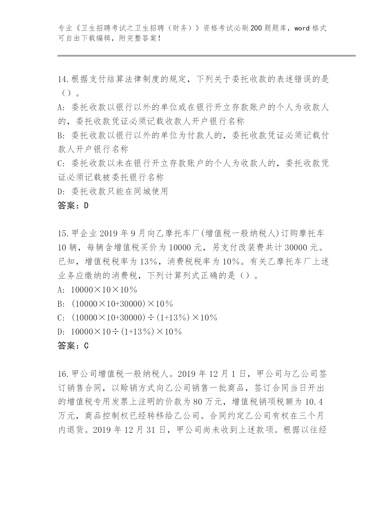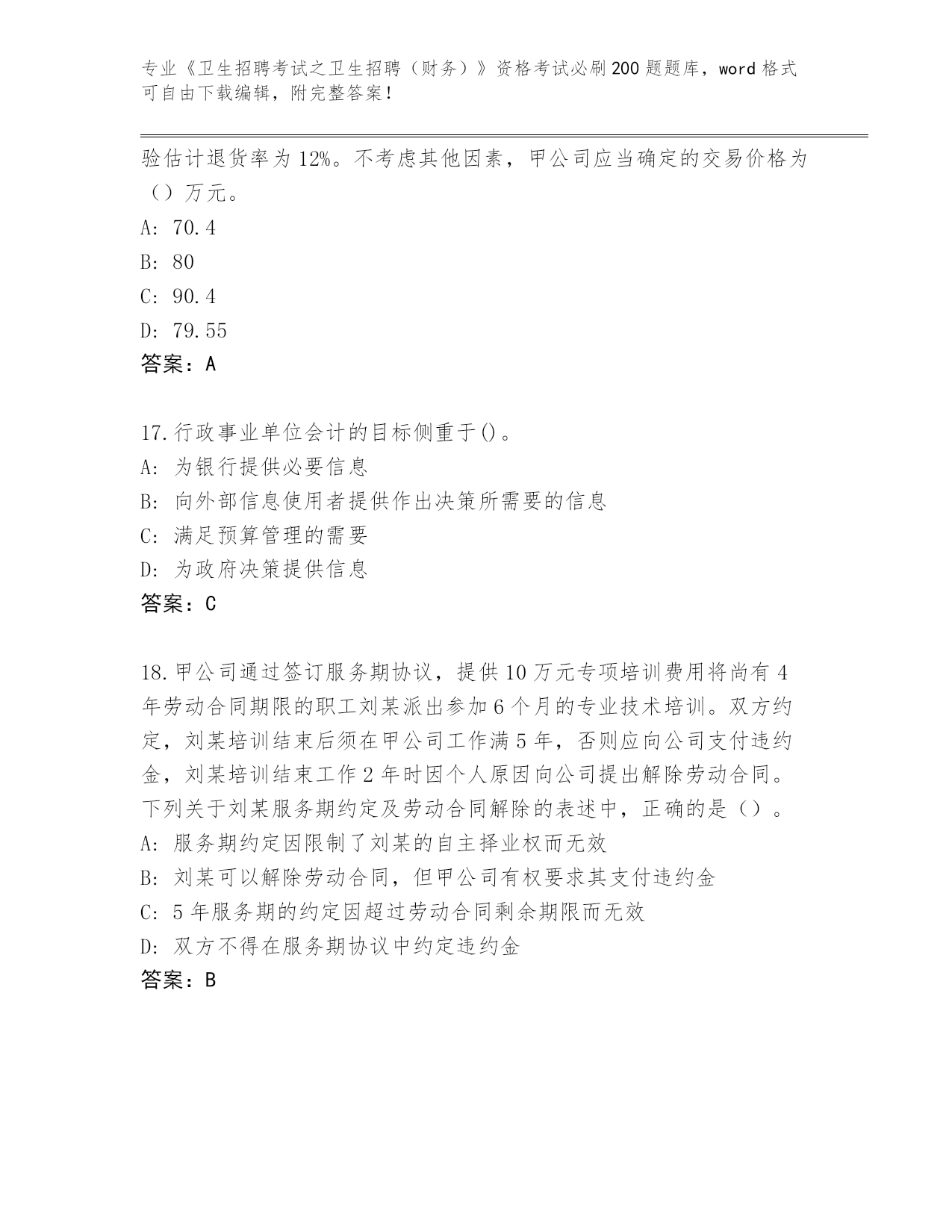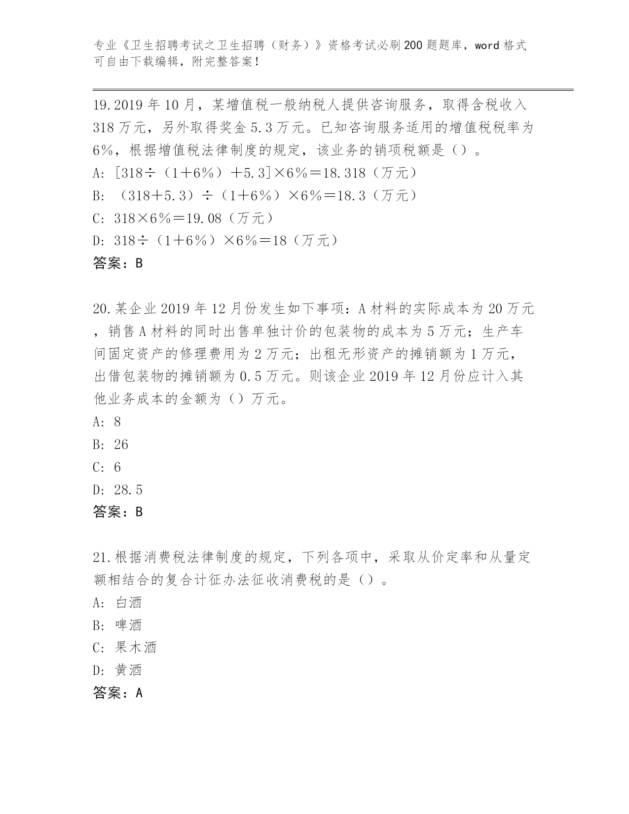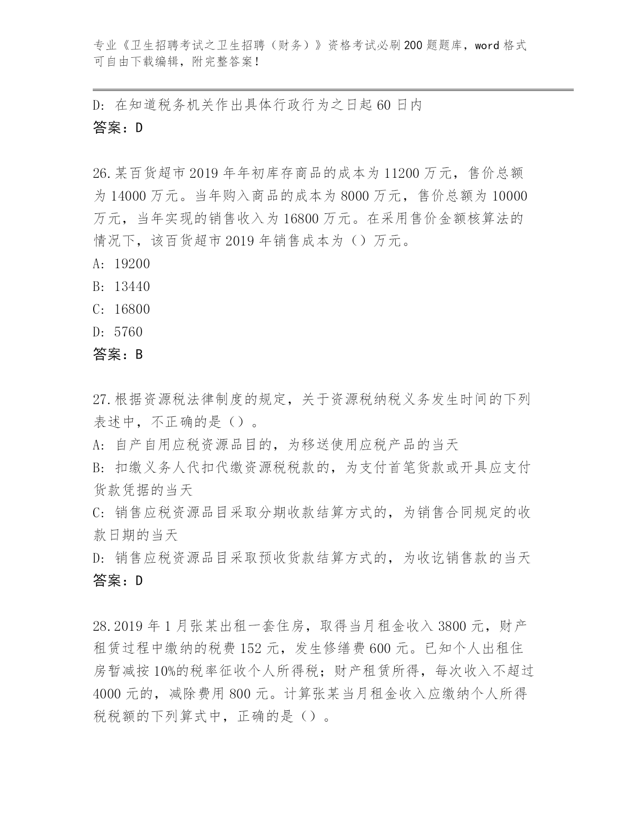 福建省晋安区整理《卫生招聘考试之卫生招聘(财务)》考试必刷200题大全(综合题)