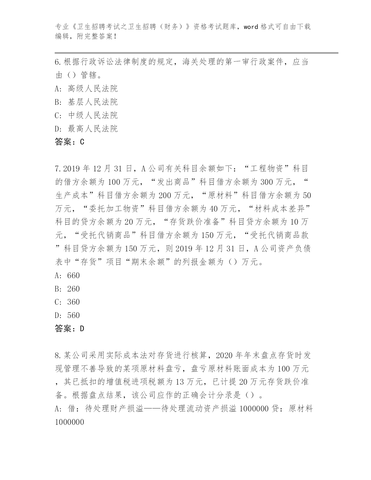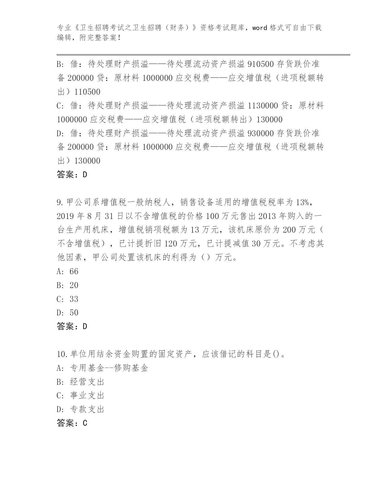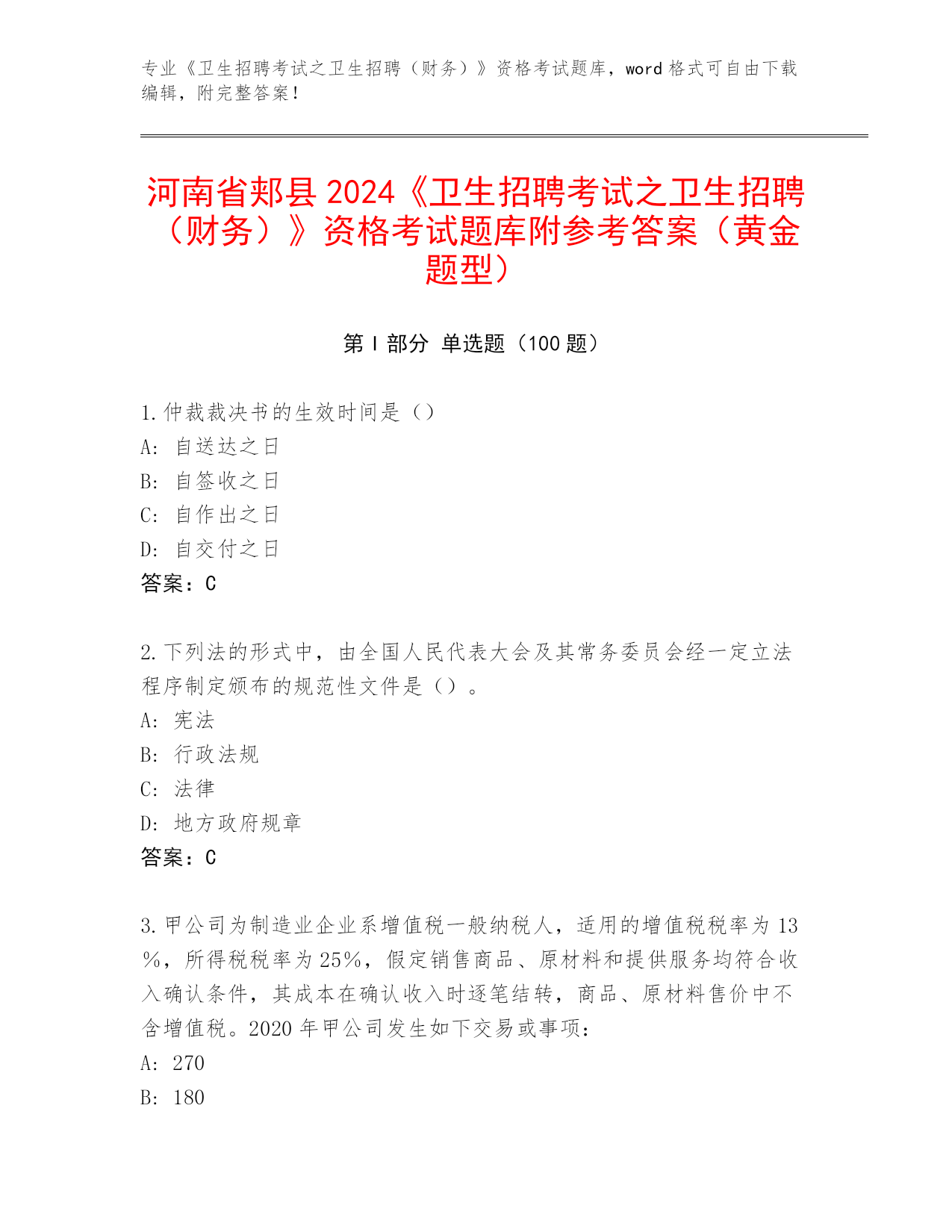 河南省郏县2024《卫生招聘考试之卫生招聘(财务)》资格考试题库附参考答案(黄金题型)