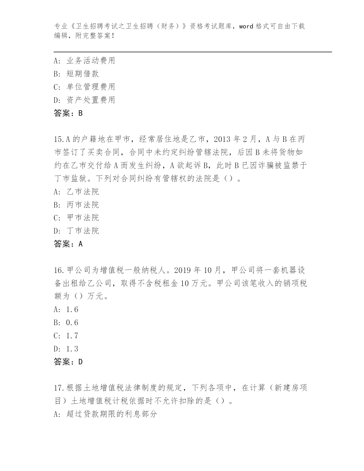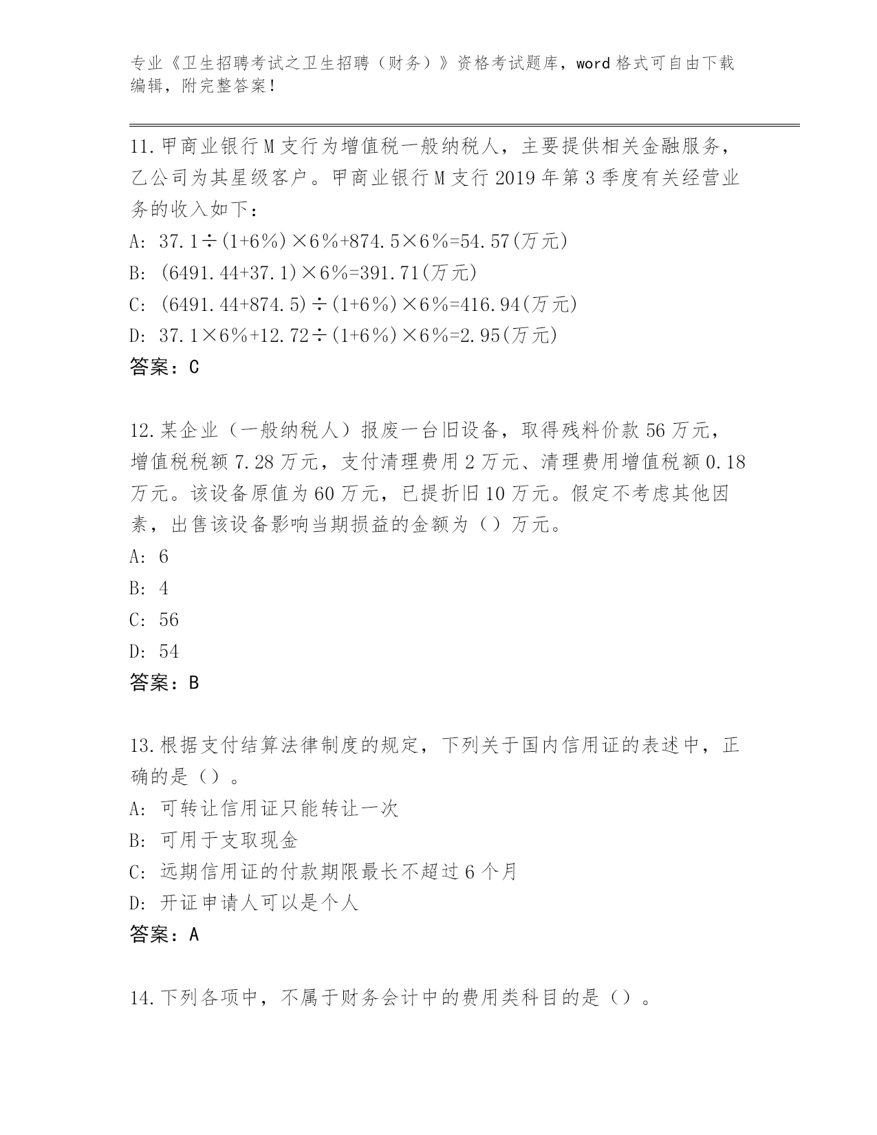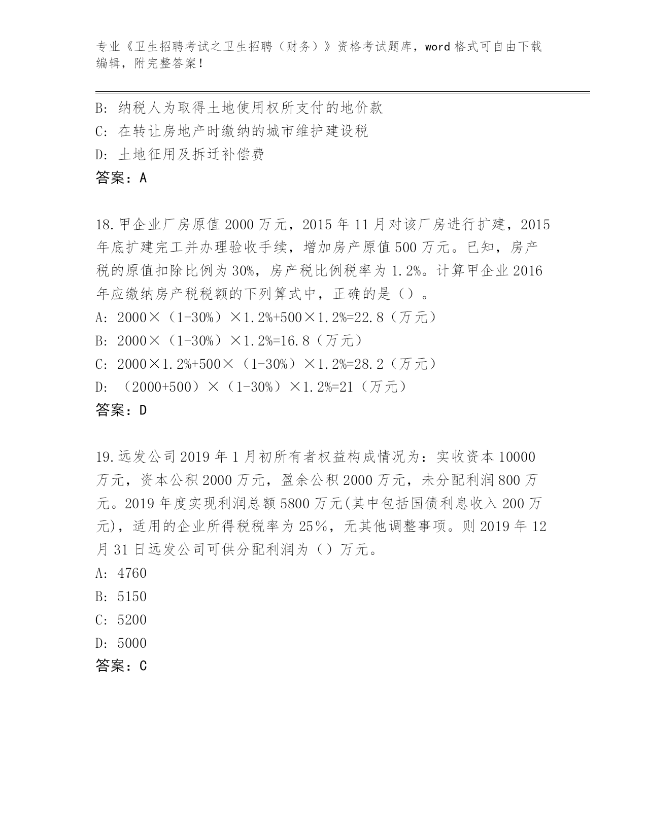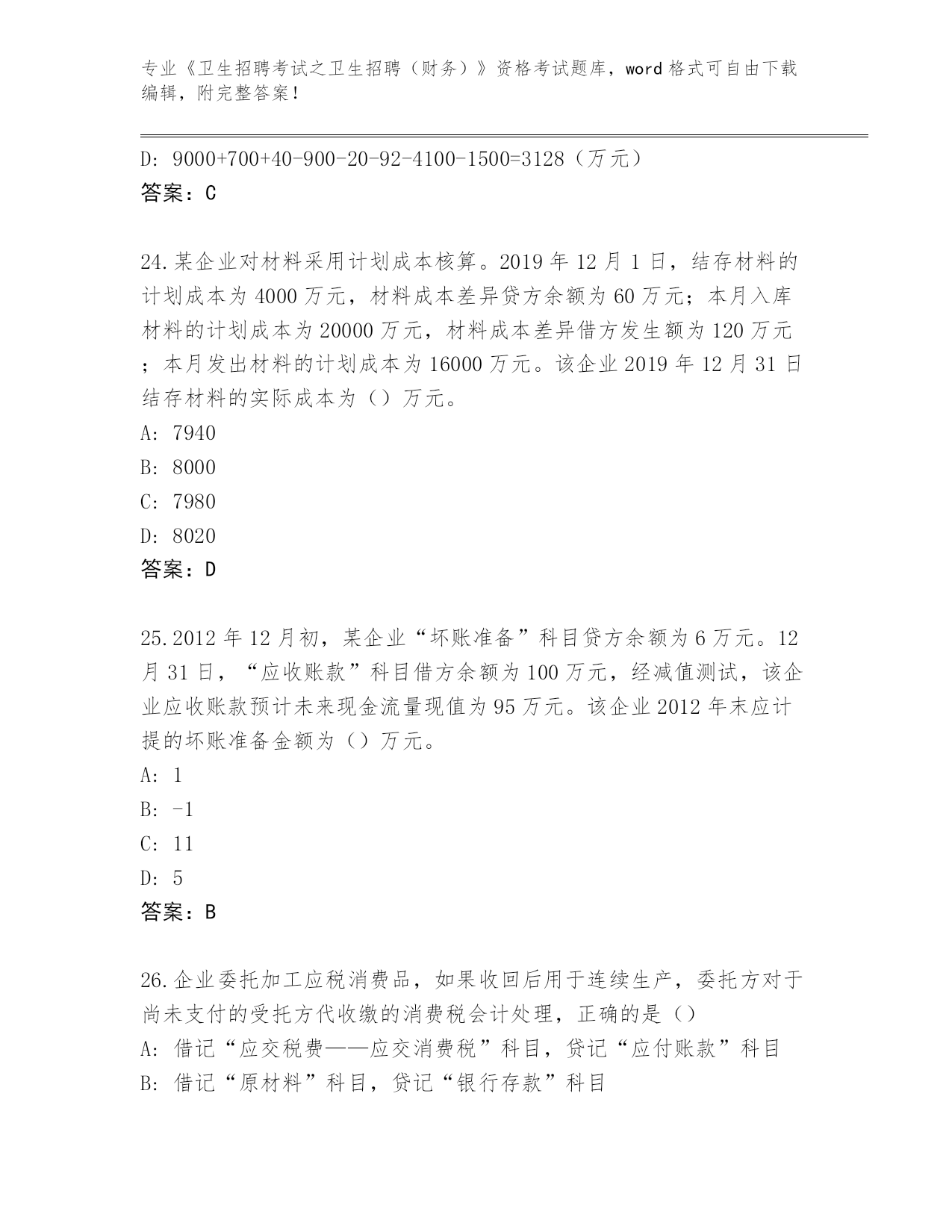 河南省郏县2024《卫生招聘考试之卫生招聘(财务)》资格考试题库附参考答案(黄金题型)