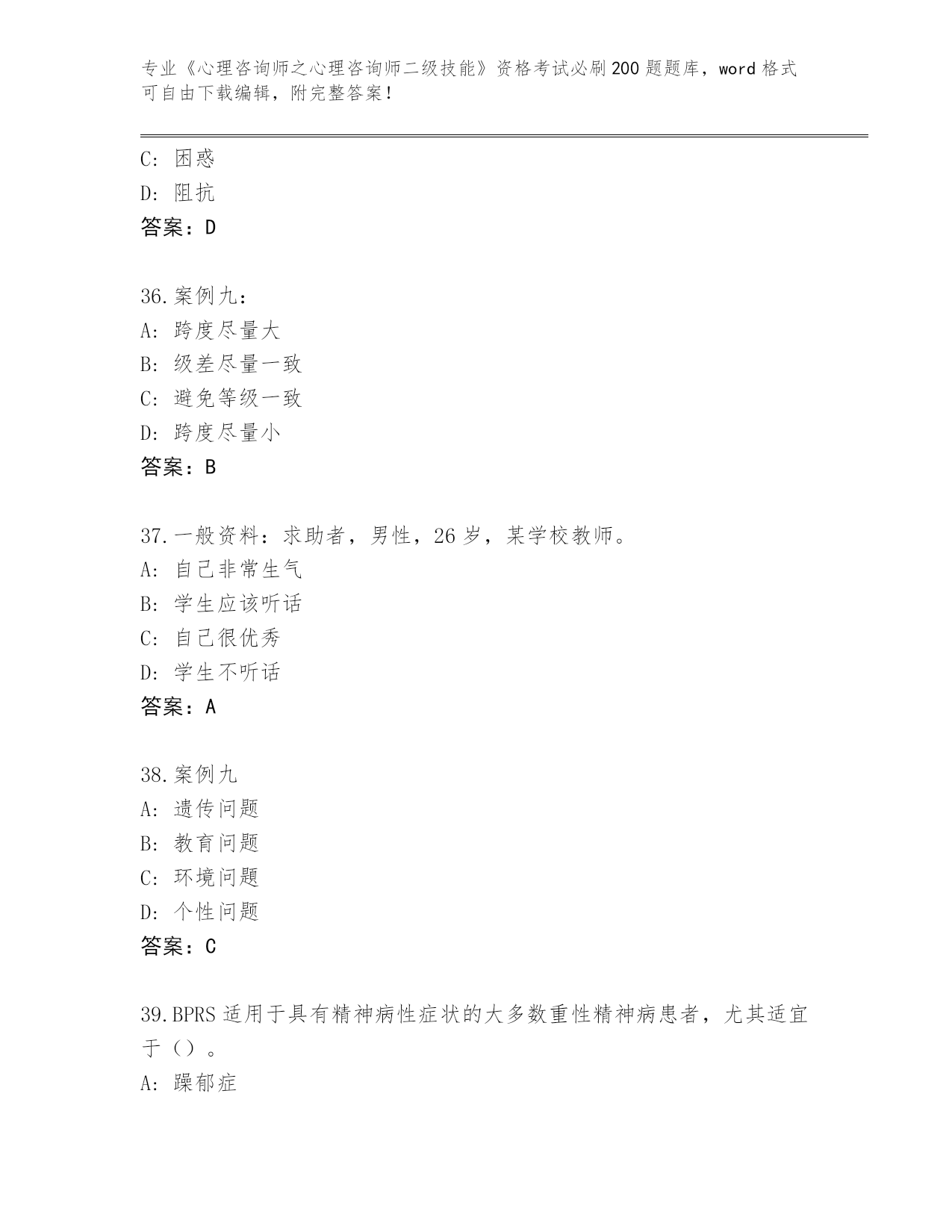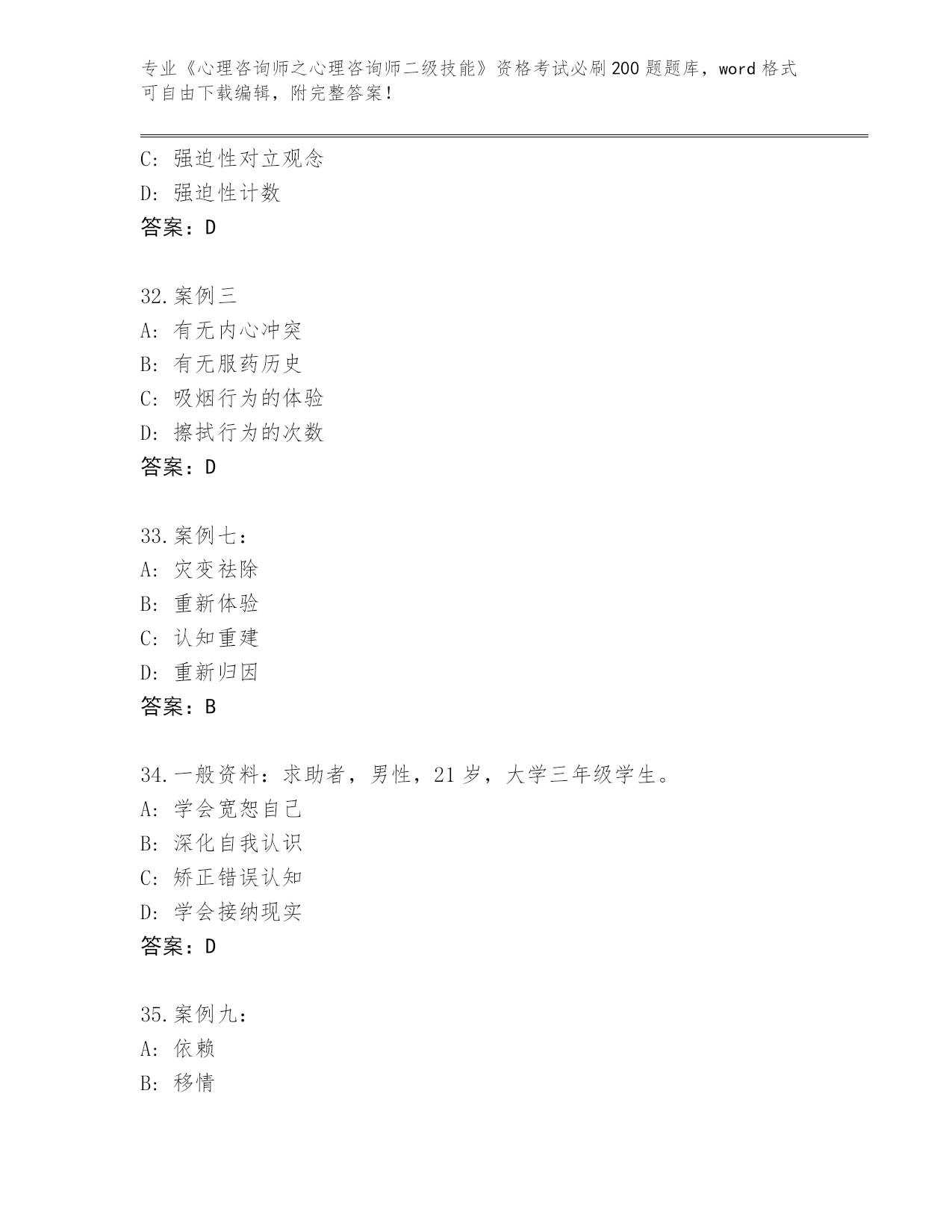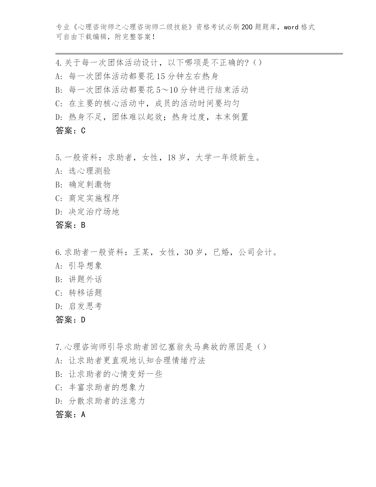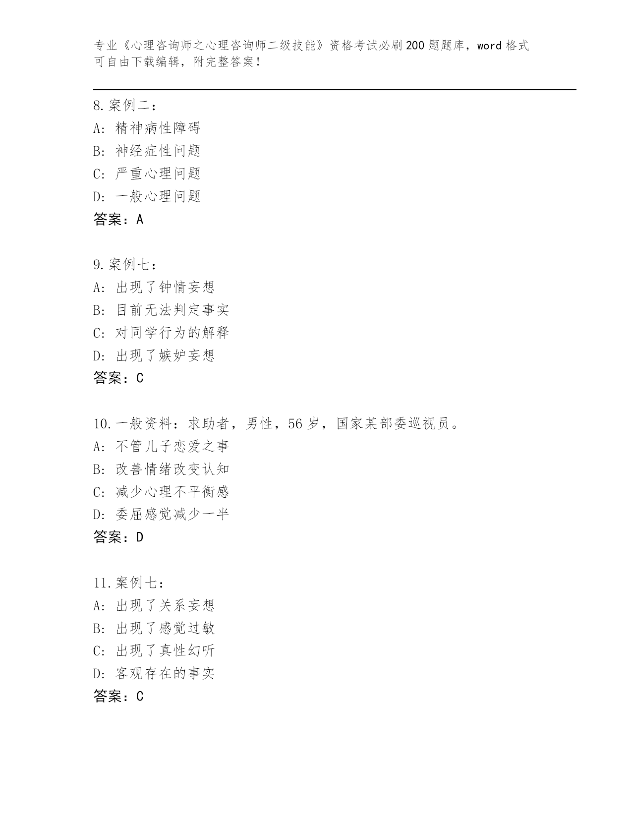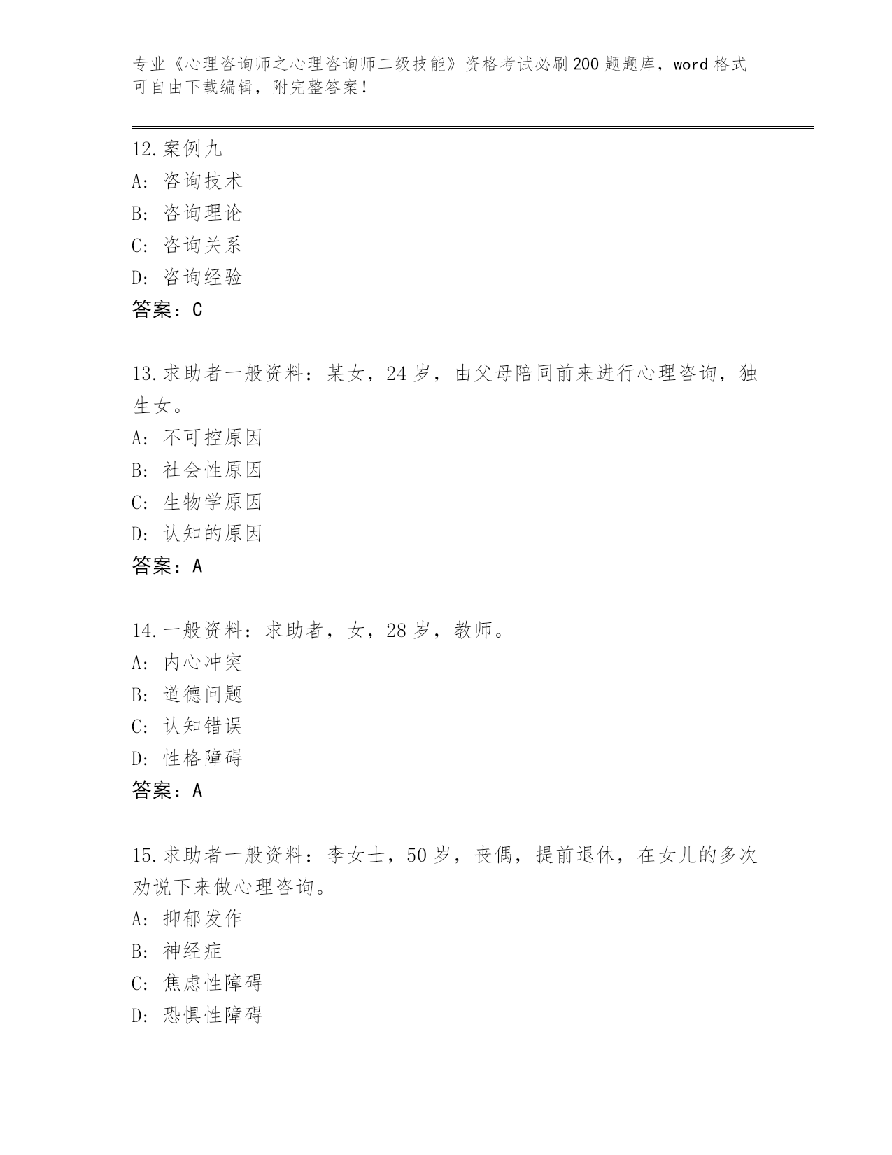云南省《心理咨询师之心理咨询师二级技能》资格考试必刷200题通关秘籍题库(必刷)