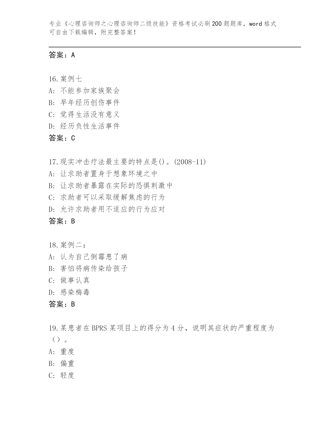 河北省景县2024年《心理咨询师之心理咨询师二级技能》考试必刷200题通关秘籍题库及答案(必刷)