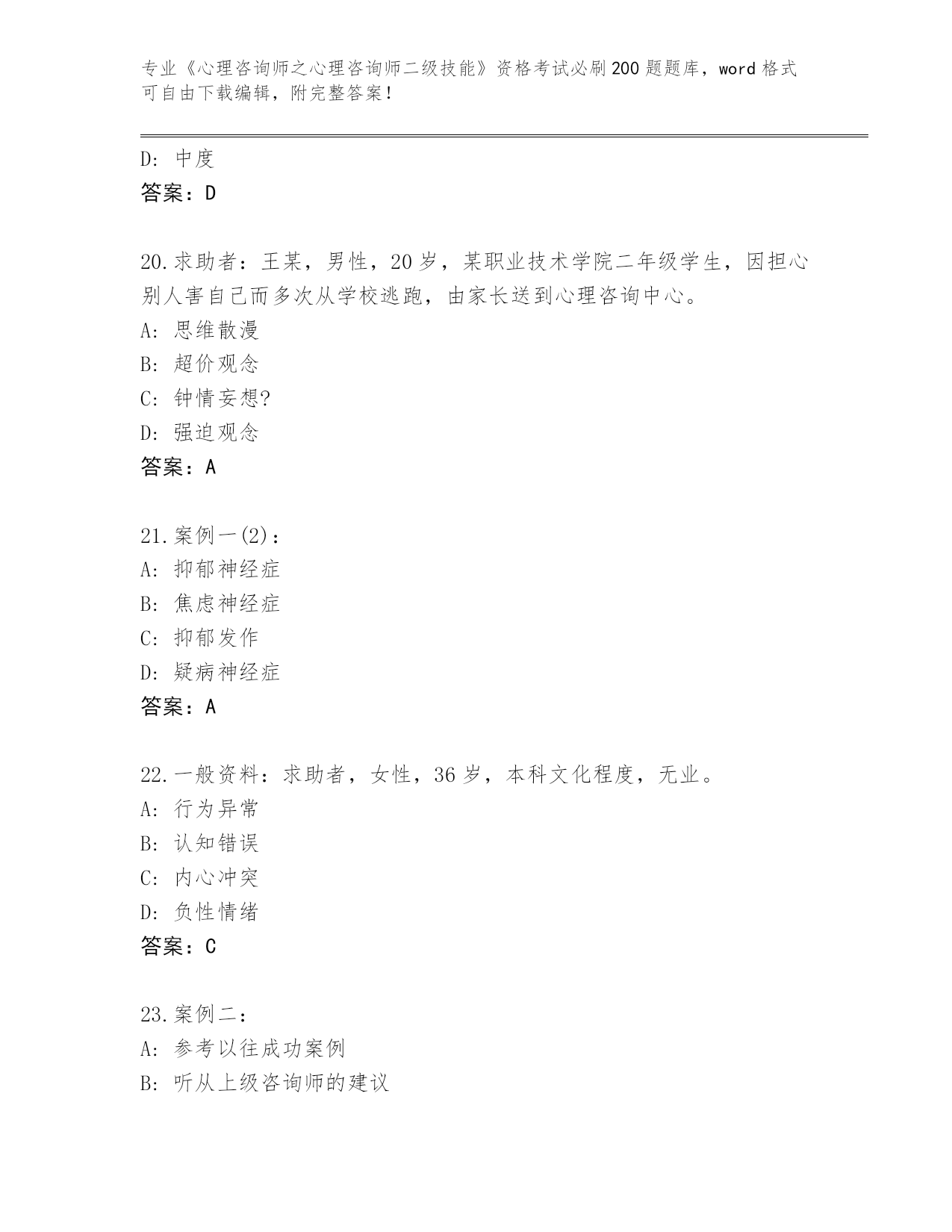 河南省孟州市《心理咨询师之心理咨询师二级技能》资格考试必刷200题通关秘籍题库【】