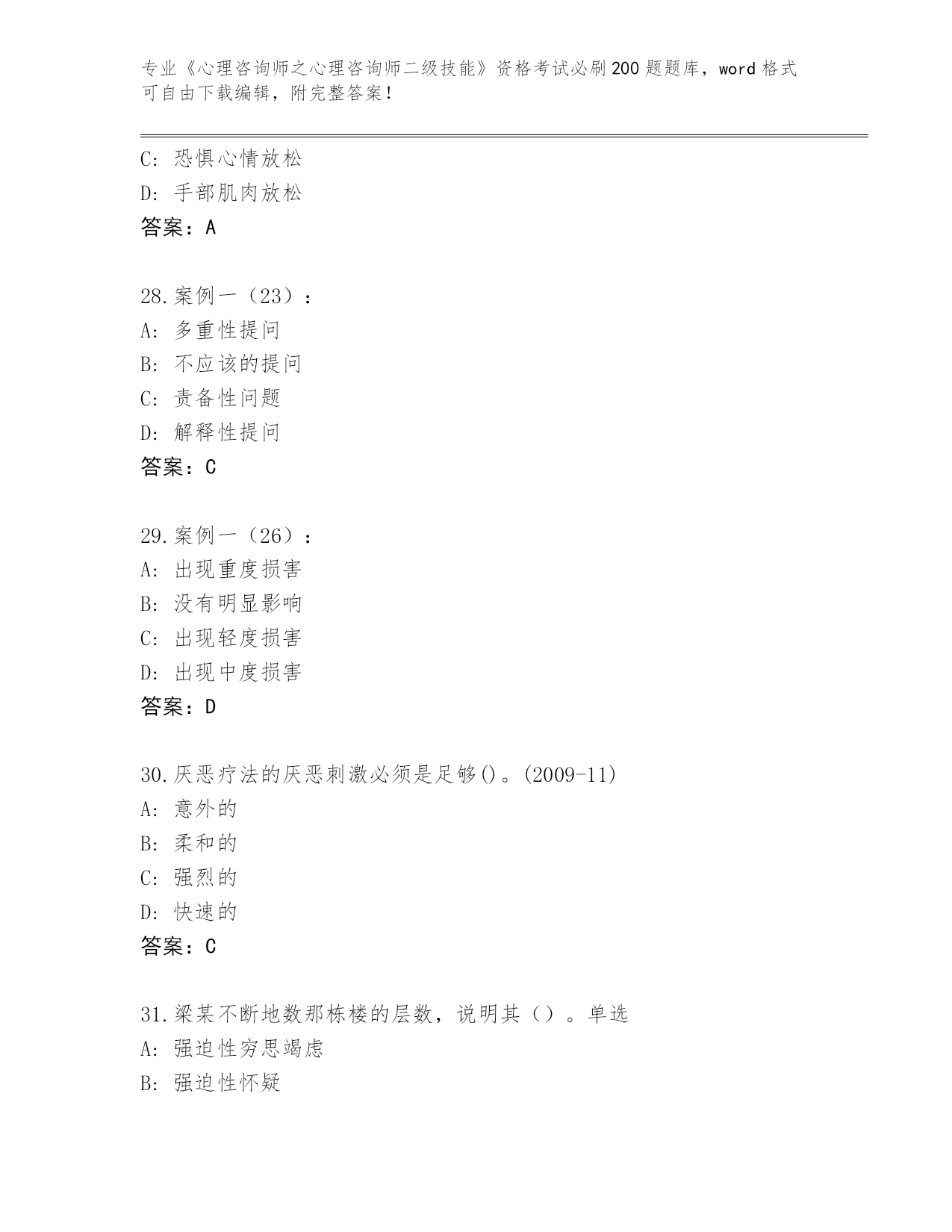 河北省邱县整理《心理咨询师之心理咨询师二级技能》资格考试必刷200题通关秘籍题库【综合卷】
