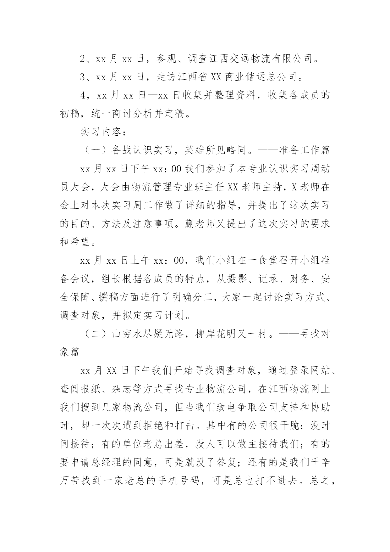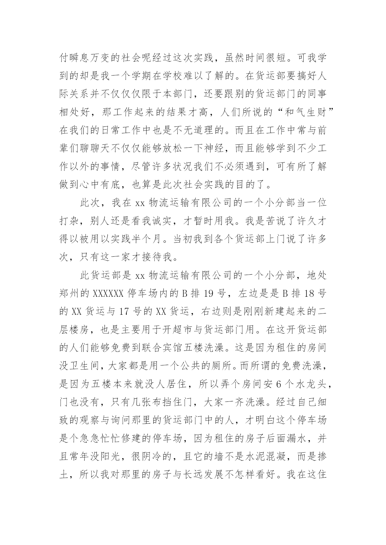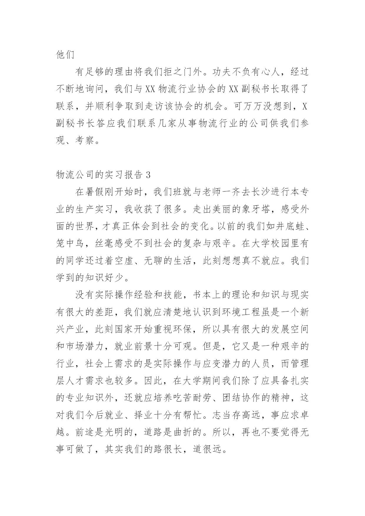物流公司的实习报告我们眼下的社会,我们都不可避免地要接触到报告,报告中涉及到专业性术语要解释清楚。那么,报告到底怎么写才合适呢?以下是小编精心整理的物流公司的实习报告,欢迎大家借鉴与参考,希望对大家有所帮助。物流公司的实习报告1一、实习目的:选择身边的企业单位为对象,联系课上所学理论,采用实地考察跟踪其物流全过程的方法,对盛和物流业发展现状进行初步了解。培养实际调研能力,尝试检验所学知识,并从实际中进一步学习了解物流的内涵与外延。二、实习方式:采用实地调研的方式,具体采用了面对面的访谈了解、过程跟踪调查和侧面行为观察的方式。出动全组成员合理分工,每人负责不同侧面的内容,协同合作,调查后集体讨论分析,并总结实习报告。三、实习时间:四、实习地点:X有限公司五、实习步骤:(一)前期准备工作1、到X物流公司报道。2、在X物流公司,听取物流管理的意见,并拟定实习方式、调查对象。3、通过登录网站、查阅报纸、杂志等方式寻找调查对象,并争取专业物流公司或单位的支持和协助。到系办公室开介绍信。4、准备数码相机、笔记本等实习所需物品。(二)开展实习活动1、走访X县物流行业。2、参观、调查X物流公司。3、走访X物流部门。4、开展具体物流管理工作。(三)后期总结工作收集并整理资料,对物流情况分析并定稿。六、实习内容:(一)实习准备工作我在明确了这次实习的目的、方法及注意事项后。从摄影、记录、财务、安全保障、撰稿方面进行了详细的部署,确定了实习方式、调查对象,并拟定实习计划。(二)走访调查物流部门寻找调查对象,通过登录网站、查阅报纸、杂志等方式寻找专业物流公司,在X物流网上我们搜到几家物流公司,但当我们致电争取公司支持和协助时,却一次次遭到拒绝和打击。其中有的公司很干脆:没时间接待;有的单位老总出差,没人可以做主接待我们;有的要申请总经理的同意,可是就没了答复;还有的是我千辛万苦找到一家老总的手机号码,可是总也打不进去。总之,他们有足够的理由将我们拒之门外。功夫不负有心人,经过不断地询问,我们与X物流行业的管理员取得了联系,并顺利争取到走访该物流的机会。(三)实地调查情况来到X物流部门,这是我本次实习的第一站。当我讲明了这次走访的目的后,便开始了这次人物访谈。首先该站管理员向我讲述了其物流管理的历程。随着市场经济的迅速发展、社会化大生产特别是工业化初步实现。使得产品极大的丰富,产品的大量交换、运输与仓储成为必然。各种各样物资的流动与日俱增,越来越受到人们的关注。X县政府认识到作为新的经济增长点的现代物流业必然成为X经济发展的基础产业。要充分发挥其区位优势。潜在无限的商机,县内外商贾云集,纷纷把目光注视在X这片红土地上。县政府果断提出自己的发展思路和战略构想。并投入大量资金建设好县内、外1小时经济圈。栽好梧桐树、引来金凤凰。短短几年时间x城经济发生了翻天覆地的变化。X物流业也正是在这样的环境下应运而生。政府对物流业发展的高度重视,对该协会成立给予了大力支持,同时五家从事物流行业的公司是该协会的发起单位。县领导对X的物流现状进行了分析,他指出X县的物流业还处在一个低层次的发展阶段,与其他地区相比相对滞后,目前物流业发展停留在仓储和运输两大方面。但是其发展速度极快。随着一些民营企业的兴起,政府调控下的招商引资,市内从事物流业的公司企业大体可分为三大类:国有企业、中外合资企业。因此,X物流业的市场之广,发展潜力之大,就业前景之阔。我有幸走访了一家物流货运部。大约在9:00中,我来到X小区116号,这是一家规模较大的货运站,由于老板出差,接待我的是两位业务主管,x先生首先向我介绍了货运部的基本状况:该托运部是在构建社会“大物流”的市场背景下,配合X县整合X物流资源,打造完整物流产链的要求下组建的,是目前为止规模较大一家企业。投资雄厚以及投资规模的超前宏伟、在X县物流业拥有战略优势资源;并在县内同行业软、硬件业务操作能力的绝对优势,凸映出X县内规模、实力、具有国际先进物流理念的现代化物流企业,这一切构成了交远物流强大的后盾。(四)实习体会X个月的实习转眼而过,回顾实习生活,我在实习的过程中,既有收获的喜悦,也有一些遗憾。通过实习,加深了我对物流管理知识的理解,丰富了我的物流管理知识,使我对物流管理工作有了深层次的感性和理性认识。同时,由于时间短暂,感到有一些遗憾。对物流管理有些工作的认识仅仅停留在表面,只是在看人做,听人讲如何做,未能够亲身感受、具体处理一些工作,所以未能领会其精髓。通过实习,我认识到要做好物流管理工作,既要注重物流管理理论知识的学习,更重要的是要把实践与理论两者紧密相结合。物流管理作为微利性服务行业,它所提供的产品是无形的服务,物流管理是一种全方位、多功能的管理,同时也是一种平凡、琐碎、辛苦的服务性工作。同时,通过这次实习,我才真正体会到社会