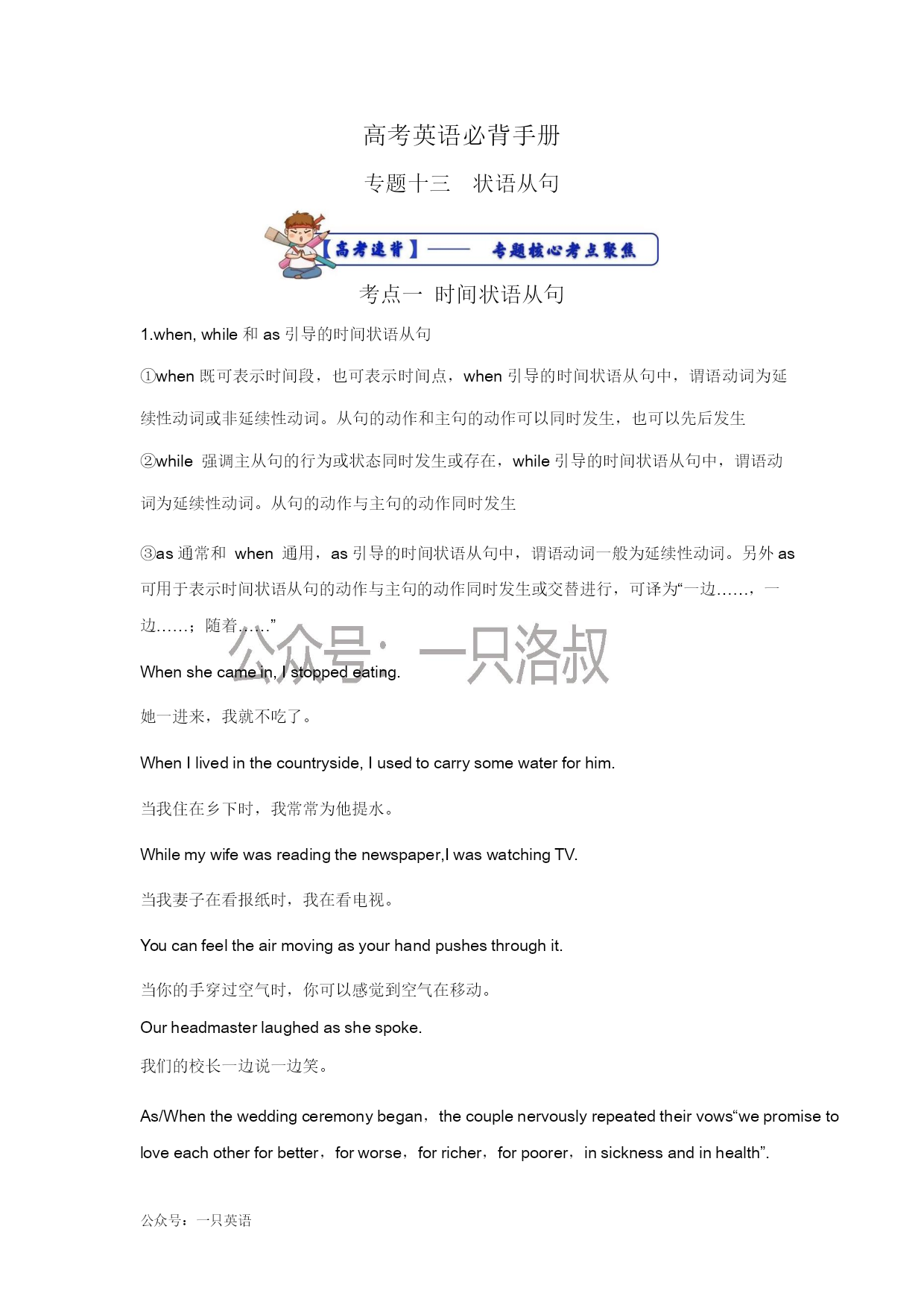 专题 13 高考英语语法【状语从句】核心考点聚焦 -高考英语必背手册