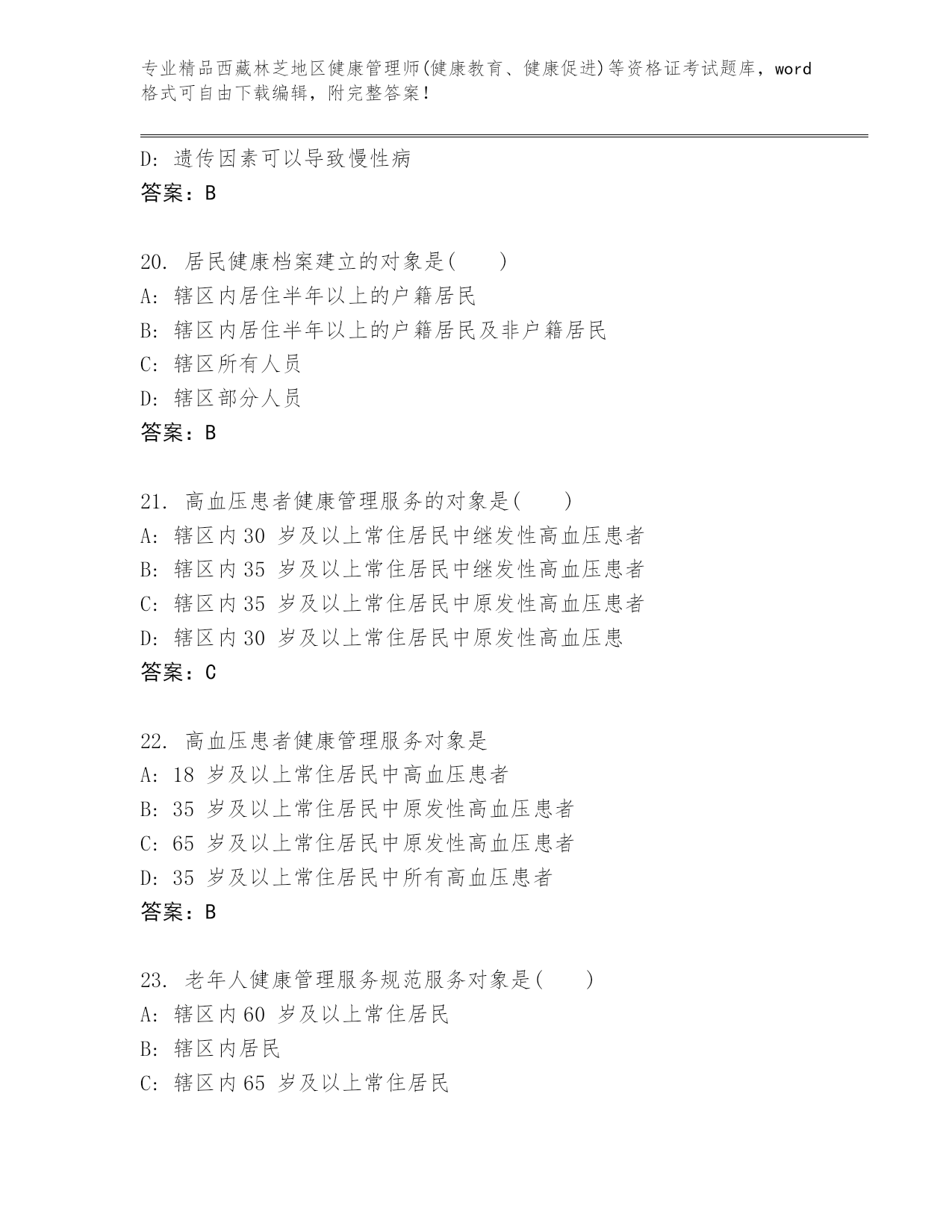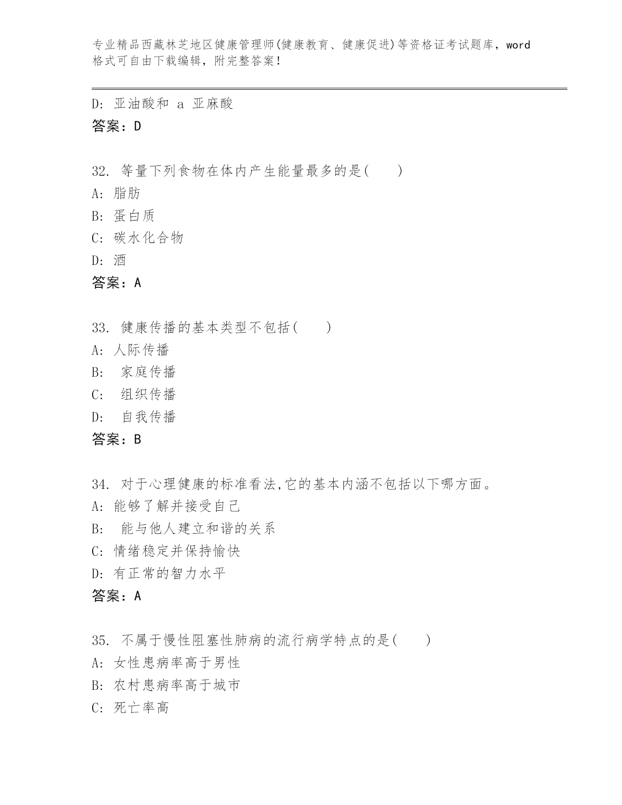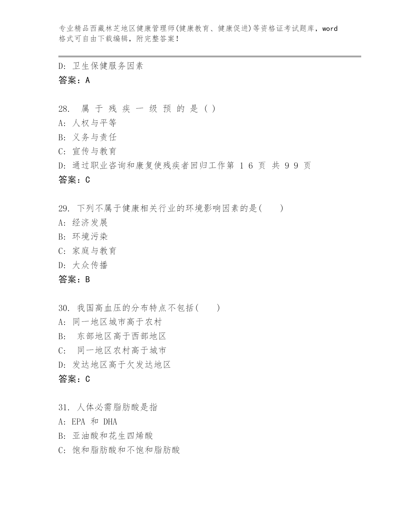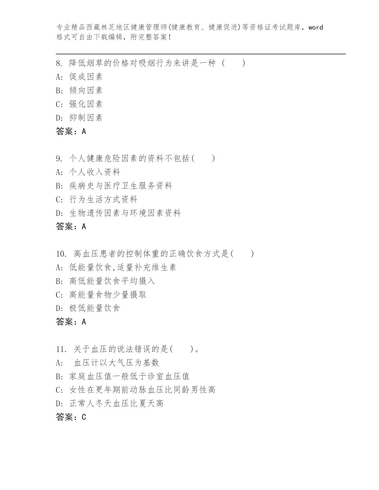 西藏林芝地区健康管理师(健康教育、健康促进)等资格证考试真题带解析答案.docx