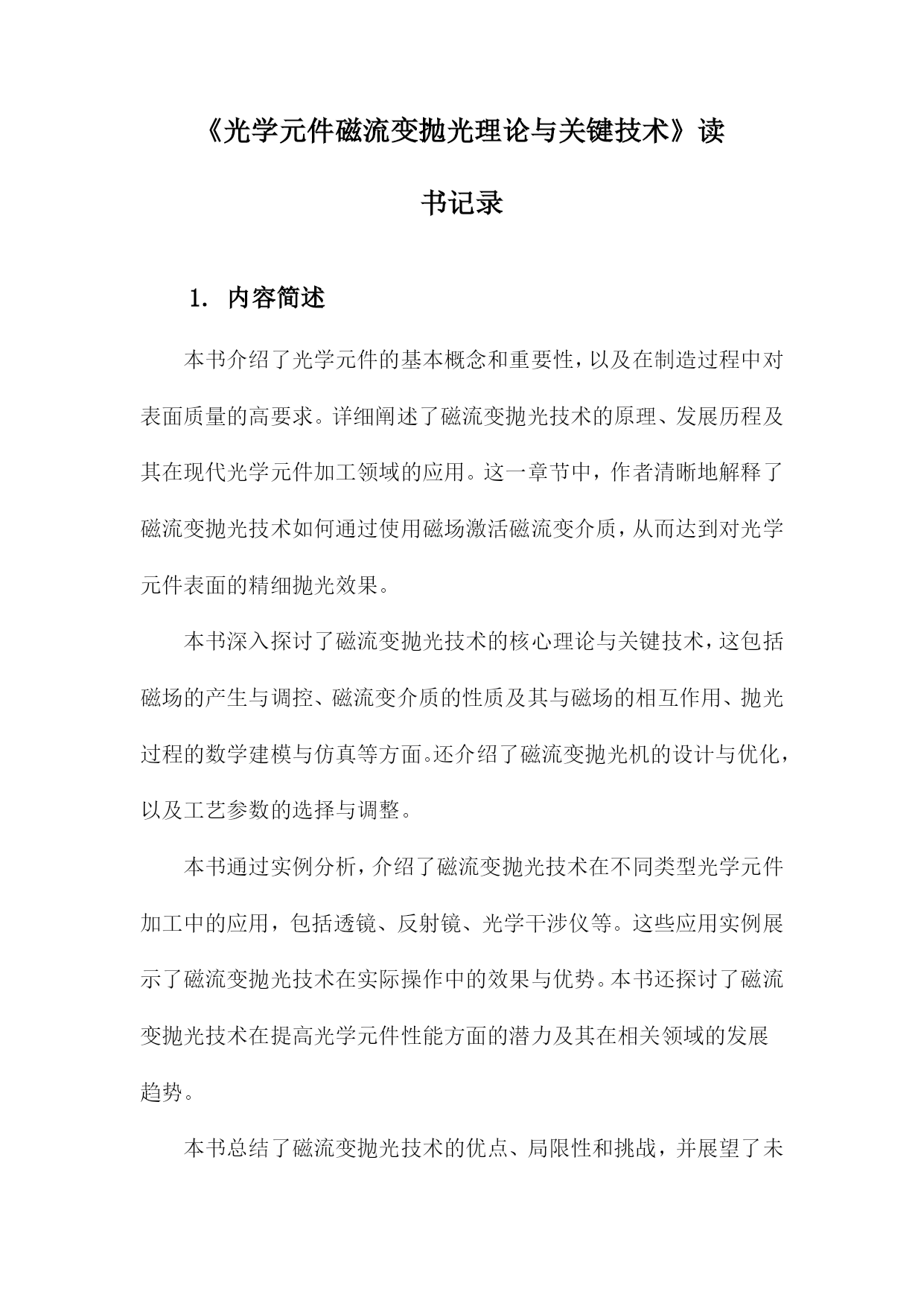 光学元件磁流变抛光理论与关键技术读书记录.docx