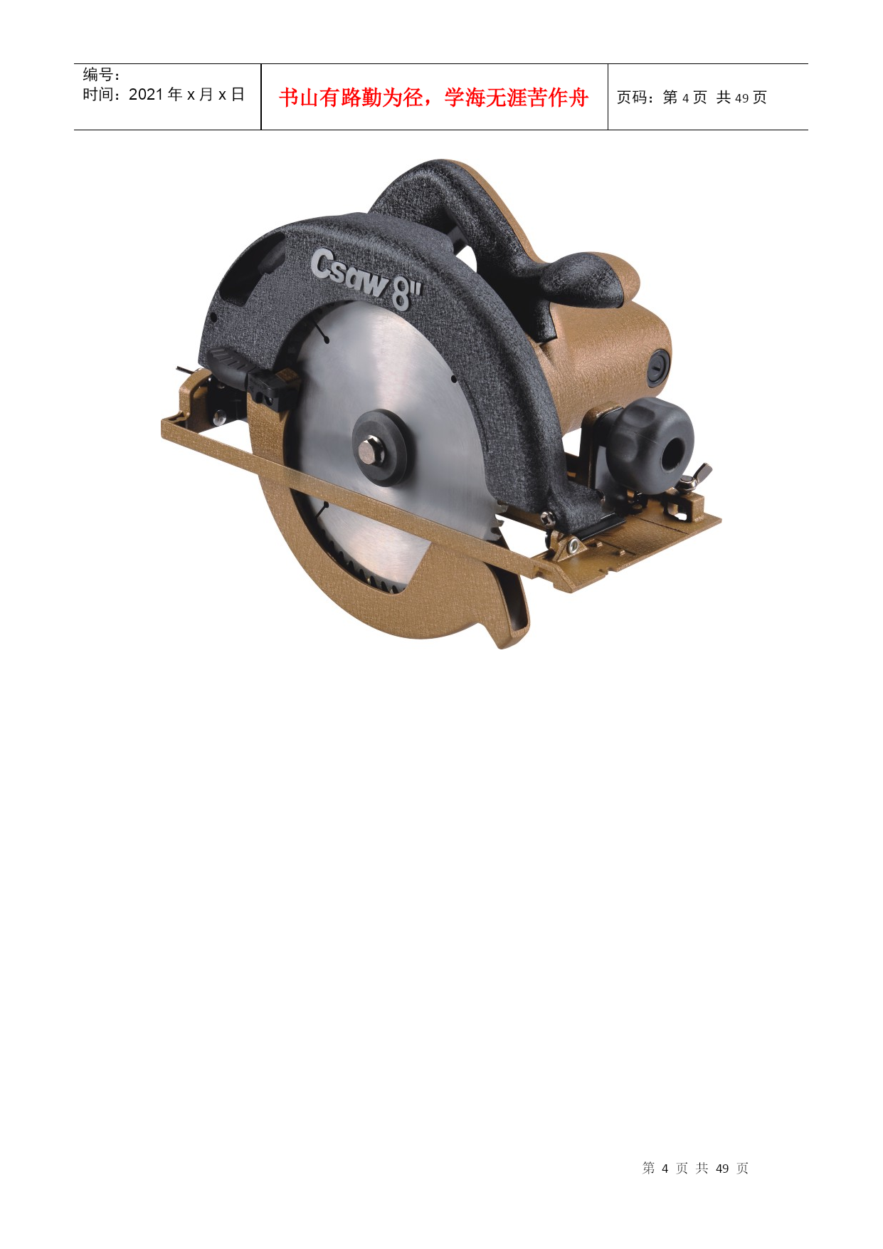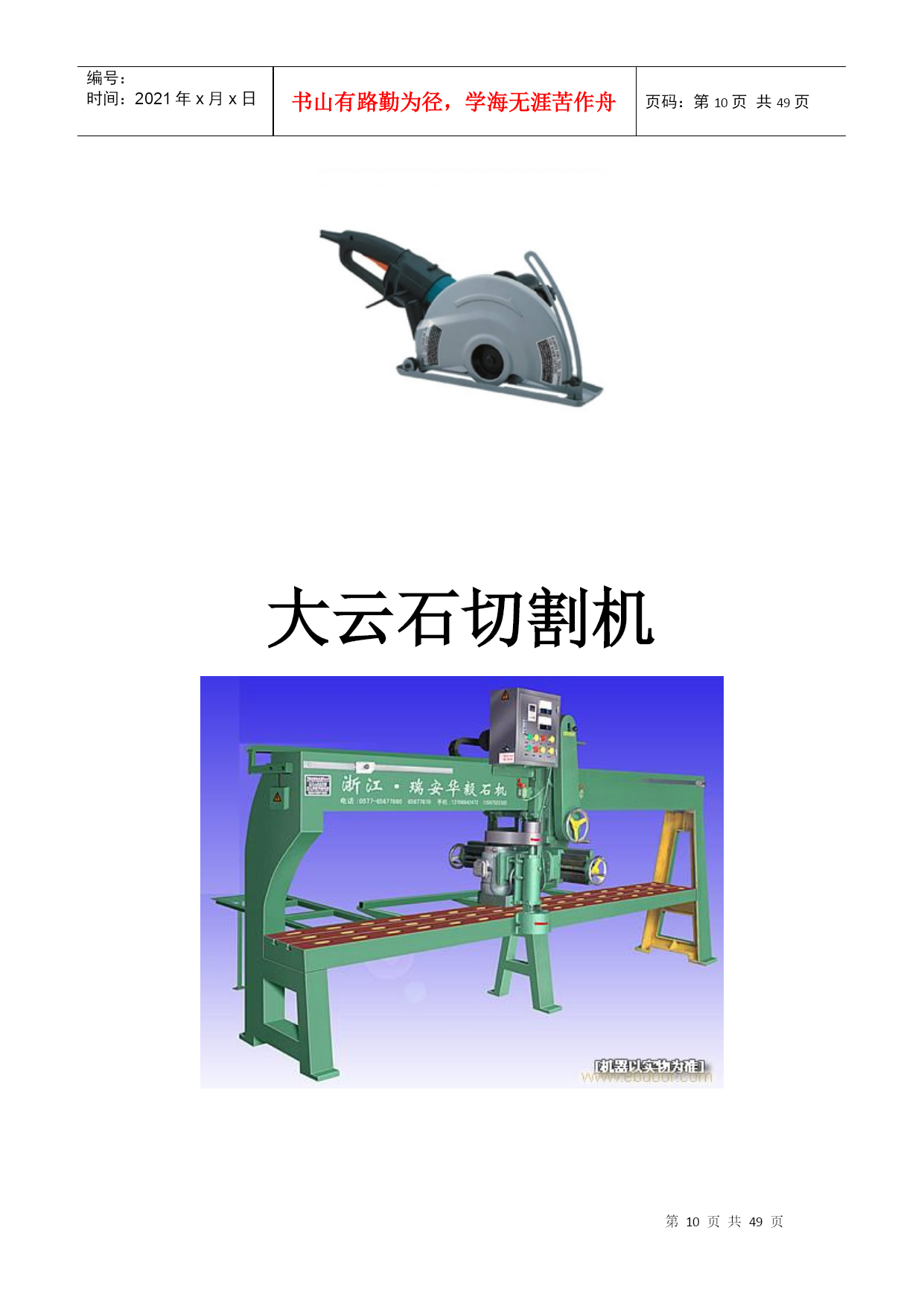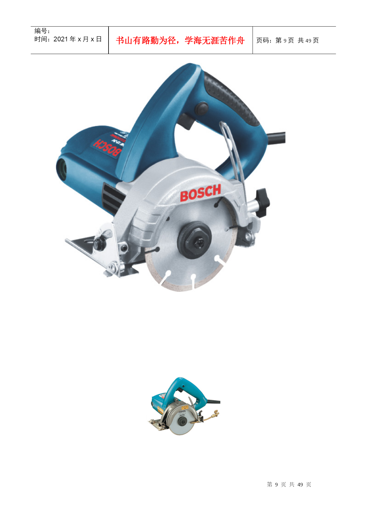 编号:时间:2021年x月x日书山有路勤为径,学海无涯苦作舟页码:第PAGE49页共NUMPAGES49页第PAGE\*MERGEFORMAT49页共NUMPAGES\*MERGEFORMAT49页角磨机电圆锯自攻钻云石切割机大云石切割机台钻喷枪冲击钻切割机空压机手电钻大修边机电动刨无齿锯激光投线仪激光手提测线仪台钳压刨电锤绝缘电阻测量仪