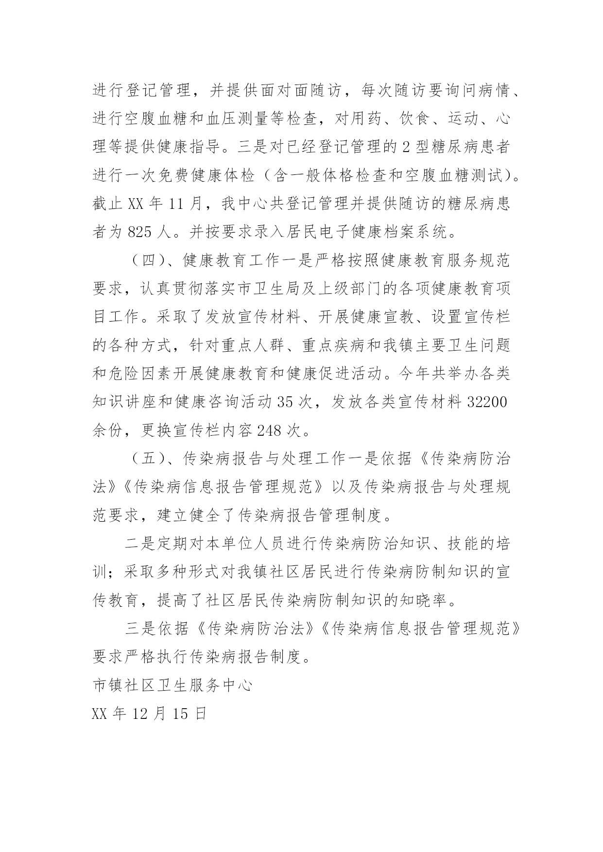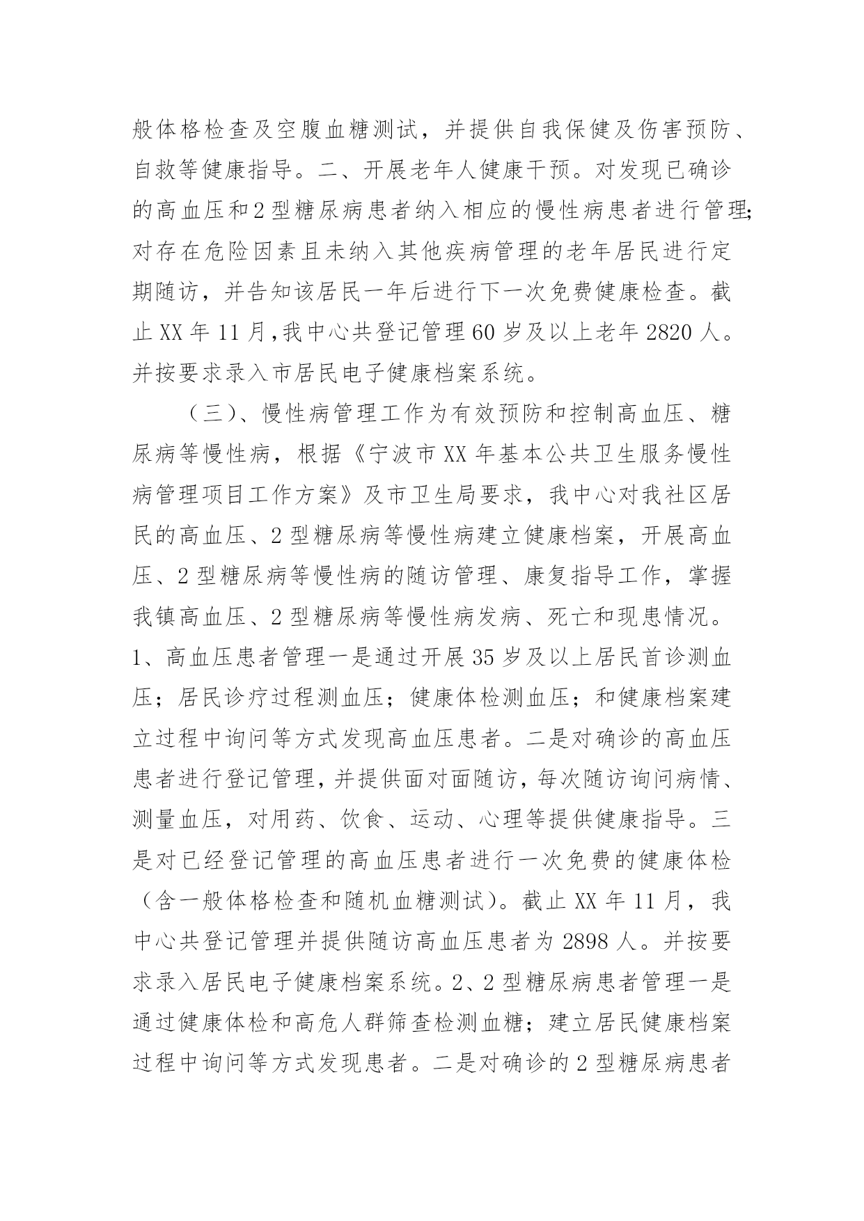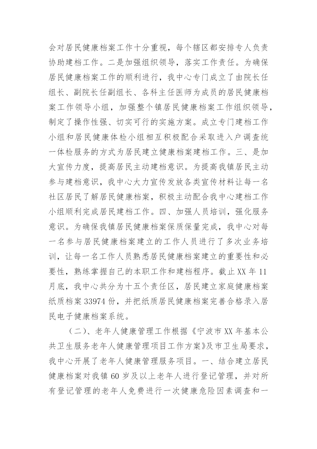公共卫生工作总结总结就是把一个时段的学习、工作或其完成情况进行一次全面系统的总结,它是增长才干的一种好办法,因此十分有必须要写一份总结哦。总结你想好怎么写了吗?以下是小编为大家整理的公共卫生工作总结,仅供参考,欢迎大家阅读。公共卫生工作总结1XX年,我中心在市政府和市卫生局的正确领导下,严格执行《国家基本公共卫生服务规范(XX年版)》认真贯彻落实《宁波市XX年基本公共卫生服务项目工作方案》以及卫生局各类文件精神,加强内部管理,严抓基本公共卫生服务项目工作,充分调动全站职工的工作积极性和主动性,取得了较好效果,现将我中心基本公共卫生服务项目工作总结汇报一、基本公共卫生服务项目开展落实情况(一)、居民健康档案工作根据《XX年基本公共卫生服务建立居民健康档案项目工作方案》要求,在市政府和市卫生局统一部署下,我中心于今年2月份开展了XX年建立居民健康档案工作。一是争取领导重视,搞好综合协调。为迅速落实建档工作,我院多次向市政府、市卫生局和镇政府等基层管理组织单位进行协调与沟通,得到党委政府的大力支持,分管领导亲自组织召开协调会,亲自安排部署,使居委会对居民健康档案工作十分重视,每个辖区都安排专人负责协助建档工作。二是加强组织领导,落实工作责任。为确保居民健康档案工作的顺利进行,我中心专门成立了由院长任组长、副院长任副组长、各科主任医师为成员的居民健康档案工作领导小组,加强整个镇居民健康档案工作组织领导,制定了操作性强、切实可行的实施方案。成立专门建档工作小组和居民健康体检小组相互积极配合采取进入户调查统一体检服务的方式为居民建立健康档案建档工作。三、是加大宣传力度,提高居民主动建档意识。为提高我镇居民主动参与建档意识,我中心大力宣传发放各类宣传材料让每一名社区居民了解居民健康档案,积极主动配合我中心建档工作小组顺利完成居民建档工作。四、加强人员培训,强化服务意识。为确保我镇居民健康档案保质保量完成,我中心对每一名参与居民健康档案建立的工作人员进行了多次业务培训,让每一名工作人员熟悉居民健康档案建立的重要性和必要性,熟练掌握自己的本职工作和建档程序。截止XX年11月底,我中心共分为十五个责任区,居民建立家庭健康档案纸质档案33974份,并把纸质居民健康档案完善合格录入居民电子健康档案系统。(二)、老年人健康管理工作根据《宁波市XX年基本公共卫生服务老年人健康管理项目工作方案》及市卫生局要求,我中心开展了老年人健康管理服务项目。一、结合建立居民健康档案对我镇60岁及以上老年人进行登记管理,并对所有登记管理的老年人免费进行一次健康危险因素调查和一般体格检查及空腹血糖测试,并提供自我保健及伤害预防、自救等健康指导。二、开展老年人健康干预。对发现已确诊的高血压和2型糖尿病患者纳入相应的慢性病患者进行管理;对存在危险因素且未纳入其他疾病管理的老年居民进行定期随访,并告知该居民一年后进行下一次免费健康检查。截止XX年11月,我中心共登记管理60岁及以上老年2820人。并按要求录入市居民电子健康档案系统。(三)、慢性病管理工作为有效预防和控制高血压、糖尿病等慢性病,根据《宁波市XX年基本公共卫生服务慢性病管理项目工作方案》及市卫生局要求,我中心对我社区居民的高血压、2型糖尿病等慢性病建立健康档案,开展高血压、2型糖尿病等慢性病的随访管理、康复指导工作,掌握我镇高血压、2型糖尿病等慢性病发病、死亡和现患情况。1、高血压患者管理一是通过开展35岁及以上居民首诊测血压;居民诊疗过程测血压;健康体检测血压;和健康档案建立过程中询问等方式发现高血压患者。二是对确诊的高血压患者进行登记管理,并提供面对面随访,每次随访询问病情、测量血压,对用药、饮食、运动、心理等提供健康指导。三是对已经登记管理的高血压患者进行一次免费的健康体检(含一般体格检查和随机血糖测试)。截止XX年11月,我中心共登记管理并提供随访高血压患者为2898人。并按要求录入居民电子健康档案系统。2、2型糖尿病患者管理一是通过健康体检和高危人群筛查检测血糖;建立居民健康档案过程中询问等方式发现患者。二是对确诊的2型糖尿病患者进行登记管理,并提供面对面随访,每次随访要询问病情、进行空腹血糖和血压测量等检查,对用药、饮食、运动、心理等提供健康指导。三是对已经登记管理的2型糖尿病患者进行一次免费健康体检(含一般体格检查和空腹血糖测试)。截止XX年11月,我中心共登记管理并提供随访的糖尿病患者为825人。并按要求录入居民电子健康档案系统。(四)、健康教育工作一是严格按照健康教育服务规范要求,认真贯彻落实市卫生局及上级部门的各项健康教育项目工作。采取了发放宣传材料、开展健康宣教、设置宣传栏的各种方式,针对重点人群、重点疾病和我镇主要卫生问题和危险因素开展健康教育和健康促进活动。今年共举办各类知识讲座和健康