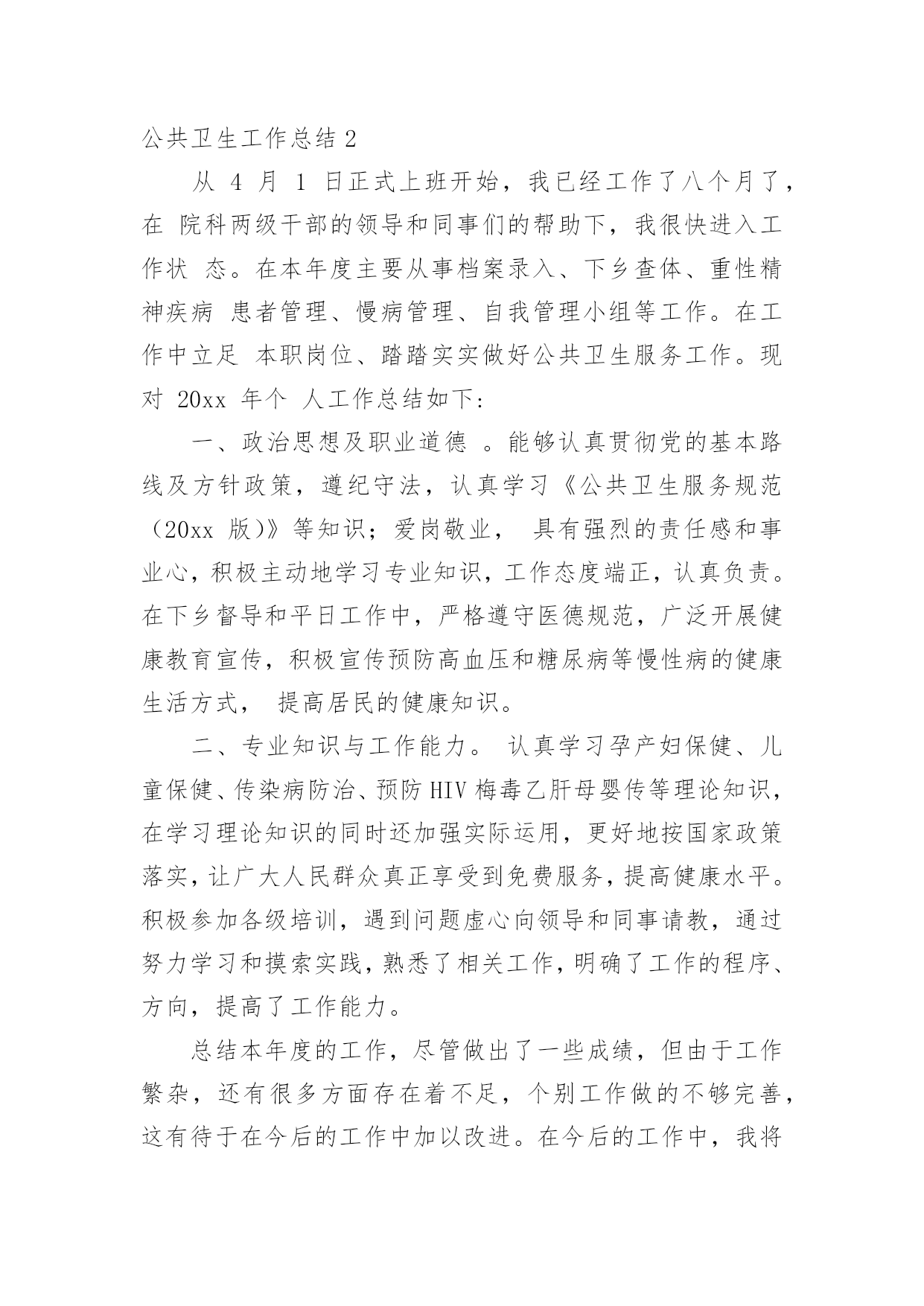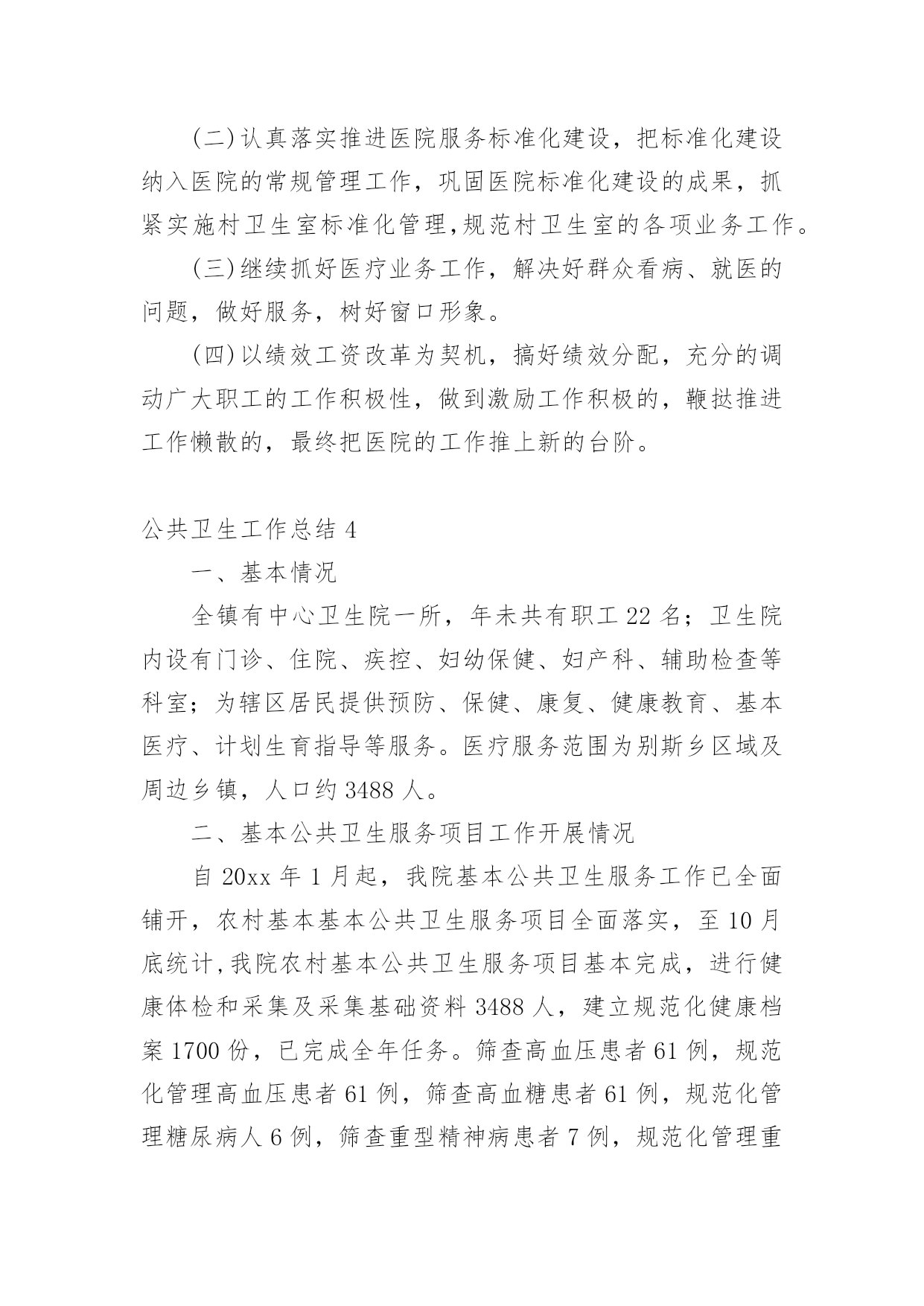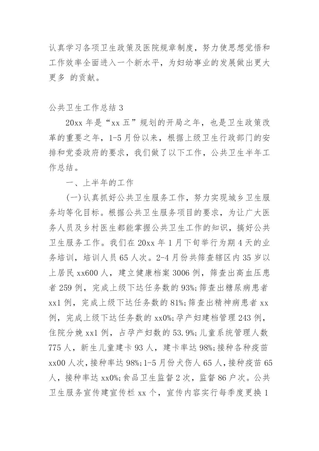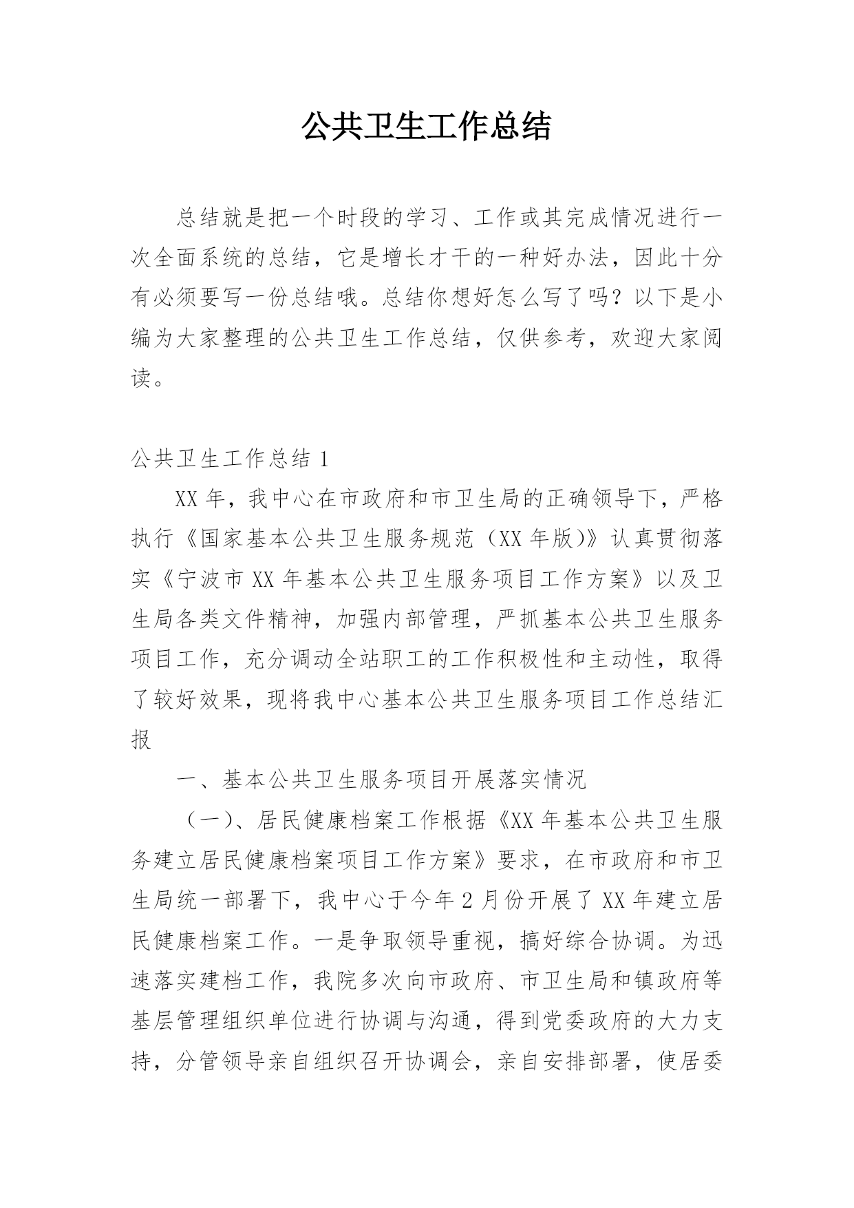 公共卫生工作总结总结就是把一个时段的学习、工作或其完成情况进行一次全面系统的总结,它是增长才干的一种好办法,因此十分有必须要写一份总结哦。总结你想好怎么写了吗?以下是小编为大家整理的公共卫生工作总结,仅供参考,欢迎大家阅读。公共卫生工作总结1XX年,我中心在市政府和市卫生局的正确领导下,严格执行《国家基本公共卫生服务规范(XX年版)》认真贯彻落实《宁波市XX年基本公共卫生服务项目工作方案》以及卫生局各类文件精神,加强内部管理,严抓基本公共卫生服务项目工作,充分调动全站职工的工作积极性和主动性,取得了较好效果,现将我中心基本公共卫生服务项目工作总结汇报一、基本公共卫生服务项目开展落实情况(一)、居民健康档案工作根据《XX年基本公共卫生服务建立居民健康档案项目工作方案》要求,在市政府和市卫生局统一部署下,我中心于今年2月份开展了XX年建立居民健康档案工作。一是争取领导重视,搞好综合协调。为迅速落实建档工作,我院多次向市政府、市卫生局和镇政府等基层管理组织单位进行协调与沟通,得到党委政府的大力支持,分管领导亲自组织召开协调会,亲自安排部署,使居委会对居民健康档案工作十分重视,每个辖区都安排专人负责协助建档工作。二是加强组织领导,落实工作责任。为确保居民健康档案工作的顺利进行,我中心专门成立了由院长任组长、副院长任副组长、各科主任医师为成员的居民健康档案工作领导小组,加强整个镇居民健康档案工作组织领导,制定了操作性强、切实可行的实施方案。成立专门建档工作小组和居民健康体检小组相互积极配合采取进入户调查统一体检服务的方式为居民建立健康档案建档工作。三、是加大宣传力度,提高居民主动建档意识。为提高我镇居民主动参与建档意识,我中心大力宣传发放各类宣传材料让每一名社区居民了解居民健康档案,积极主动配合我中心建档工作小组顺利完成居民建档工作。四、加强人员培训,强化服务意识。为确保我镇居民健康档案保质保量完成,我中心对每一名参与居民健康档案建立的工作人员进行了多次业务培训,让每一名工作人员熟悉居民健康档案建立的重要性和必要性,熟练掌握自己的本职工作和建档程序。截止XX年11月底,我中心共分为十五个责任区,居民建立家庭健康档案纸质档案33974份,并把纸质居民健康档案完善合格录入居民电子健康档案系统。(二)、老年人健康管理工作根据《宁波市XX年基本公共卫生服务老年人健康管理项目工作方案》及市卫生局要求,我中心开展了老年人健康管理服务项目。一、结合建立居民健康档案对我镇60岁及以上老年人进行登记管理,并对所有登记管理的老年人免费进行一次健康危险因素调查和一般体格检查及空腹血糖测试,并提供自我保健及伤害预防、自救等健康指导。二、开展老年人健康干预。对发现已确诊的高血压和2型糖尿病患者纳入相应的慢性病患者进行管理;对存在危险因素且未纳入其他疾病管理的老年居民进行定期随访,并告知该居民一年后进行下一次免费健康检查。截止XX年11月,我中心共登记管理60岁及以上老年2820人。并按要求录入市居民电子健康档案系统。(三)、慢性病管理工作为有效预防和控制高血压、糖尿病等慢性病,根据《宁波市XX年基本公共卫生服务慢性病管理项目工作方案》及市卫生局要求,我中心对我社区居民的高血压、2型糖尿病等慢性病建立健康档案,开展高血压、2型糖尿病等慢性病的随访管理、康复指导工作,掌握我镇高血压、2型糖尿病等慢性病发病、死亡和现患情况。1、高血压患者管理一是通过开展35岁及以上居民首诊测血压;居民诊疗过程测血压;健康体检测血压;和健康档案建立过程中询问等方式发现高血压患者。二是对确诊的高血压患者进行登记管理,并提供面对面随访,每次随访询问病情、测量血压,对用药、饮食、运动、心理等提供健康指导。三是对已经登记管理的高血压患者进行一次免费的健康体检(含一般体格检查和随机血糖测试)。截止XX年11月,我中心共登记管理并提供随访高血压患者为2898人。并按要求录入居民电子健康档案系统。2、2型糖尿病患者管理一是通过健康体检和高危人群筛查检测血糖;建立居民健康档案过程中询问等方式发现患者。二是对确诊的2型糖尿病患者进行登记管理,并提供面对面随访,每次随访要询问病情、进行空腹血糖和血压测量等检查,对用药、饮食、运动、心理等提供健康指导。三是对已经登记管理的2型糖尿病患者进行一次免费健康体检(含一般体格检查和空腹血糖测试)。截止XX年11月,我中心共登记管理并提供随访的糖尿病患者为825人。并按要求录入居民电子健康档案系统。(四)、健康教育工作一是严格按照健康教育服务规范要求,认真贯彻落实市卫生局及上级部门的各项健康教育项目工作。采取了发放宣传材料、开展健康宣教、设置宣传栏的各种方式,针对重点人群、重点疾病和我镇主要卫生问题和危险因素开展健康教育和健康促进活动。今年共举办各类知识讲座和健康