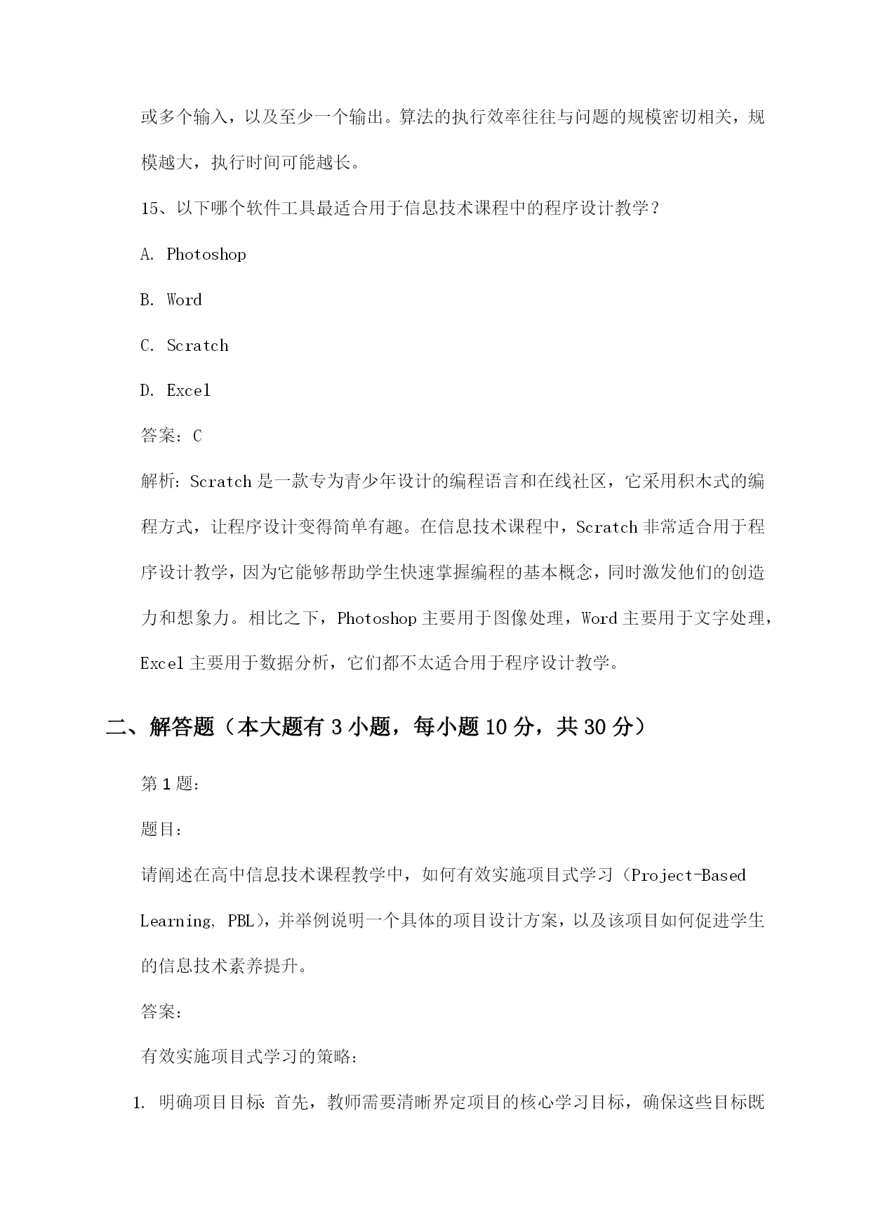教师资格考试高中信息技术学科知识与教学能力2024年下半年试题及答案解析.docx