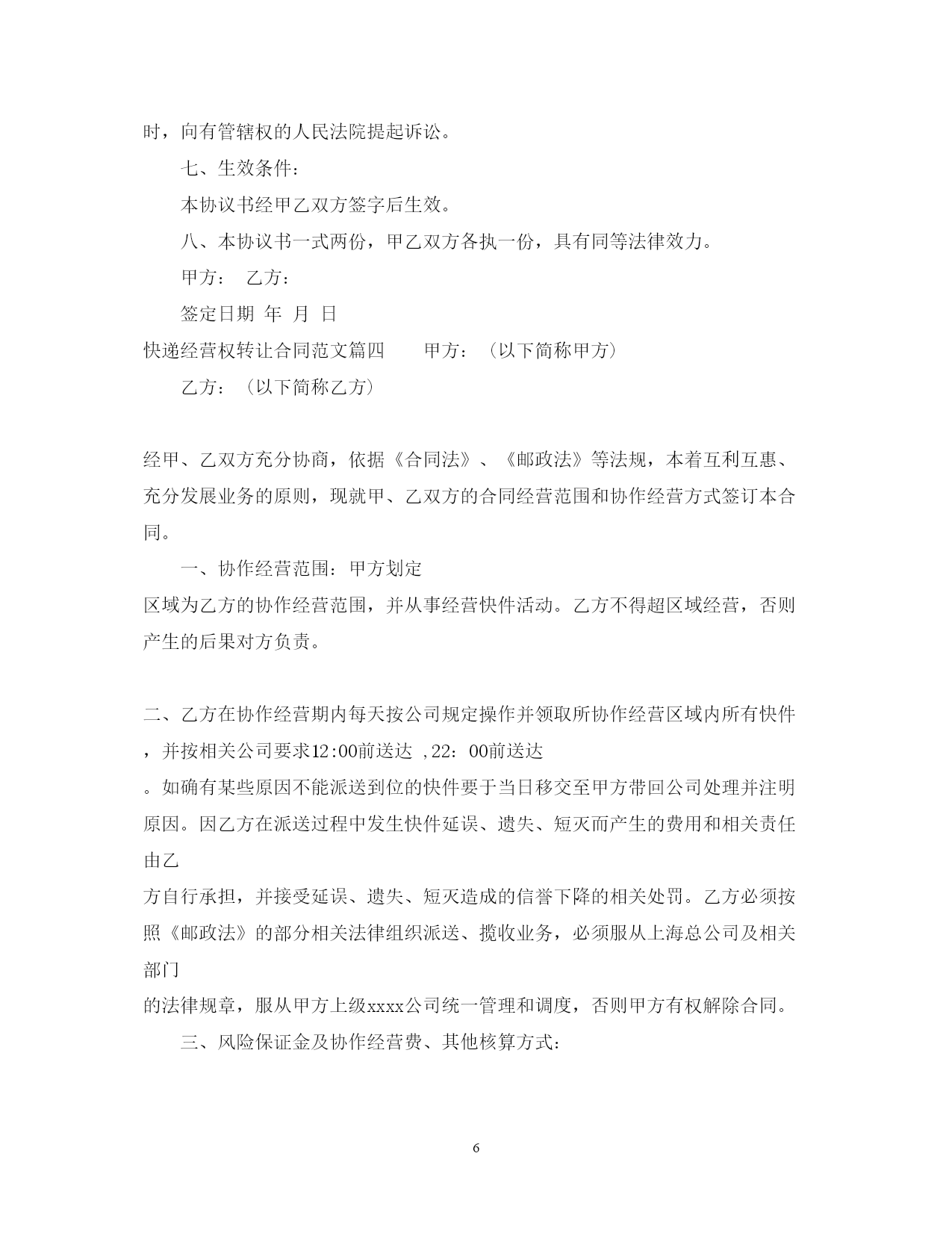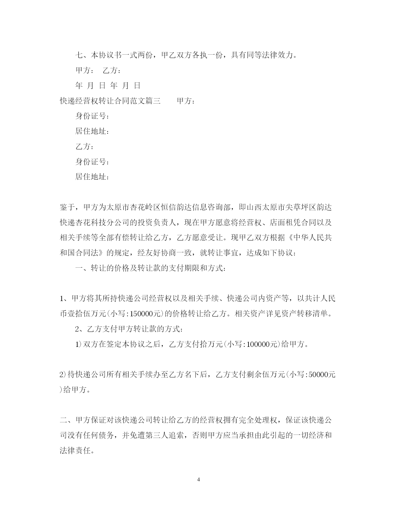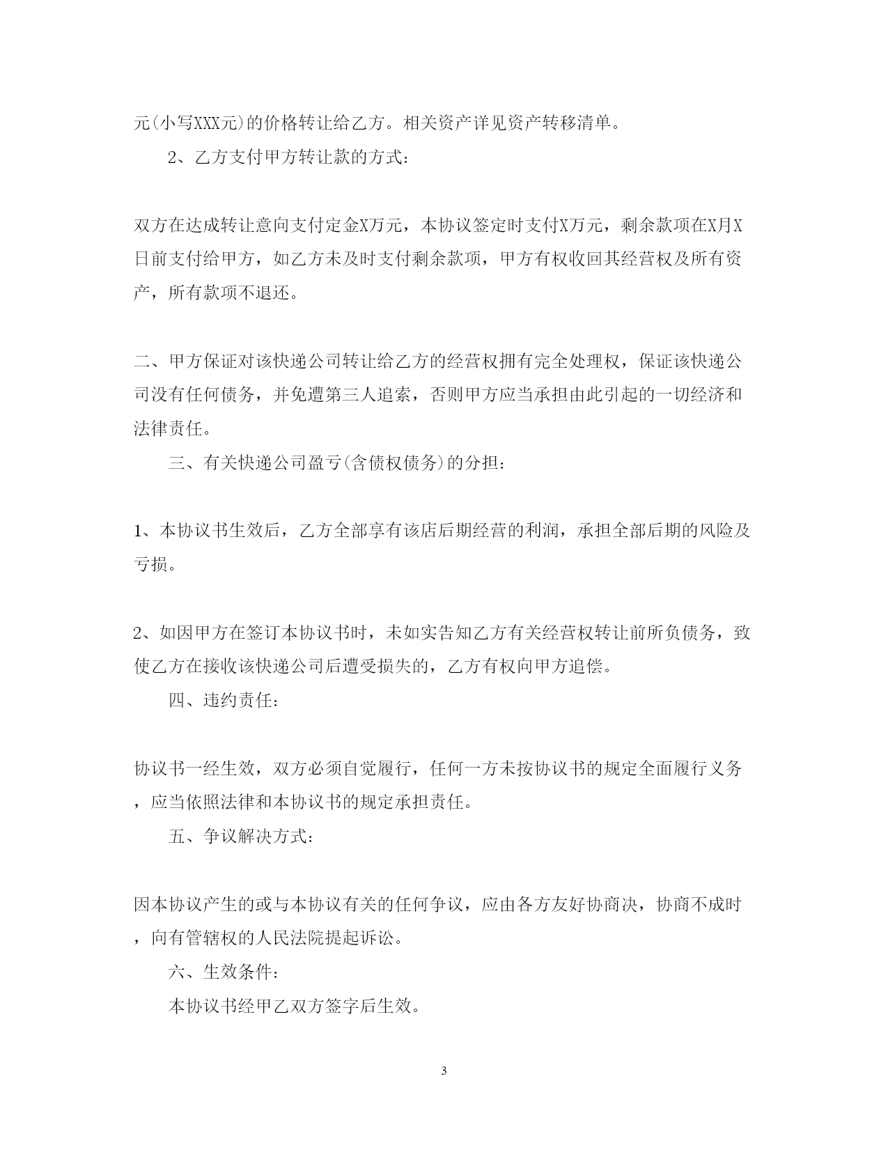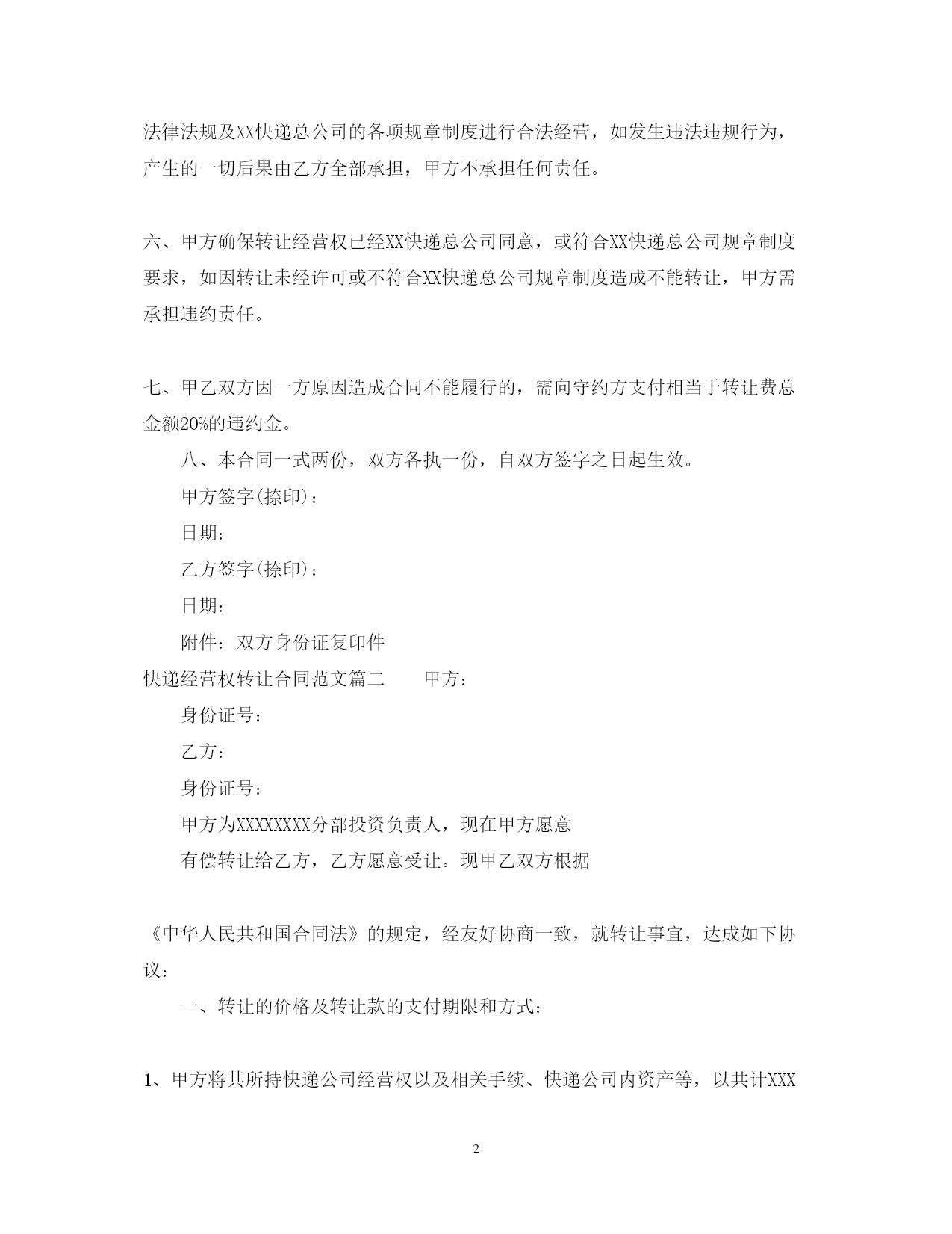 2022年快递经营权转让合同_快递经营权转让合同范本.docx