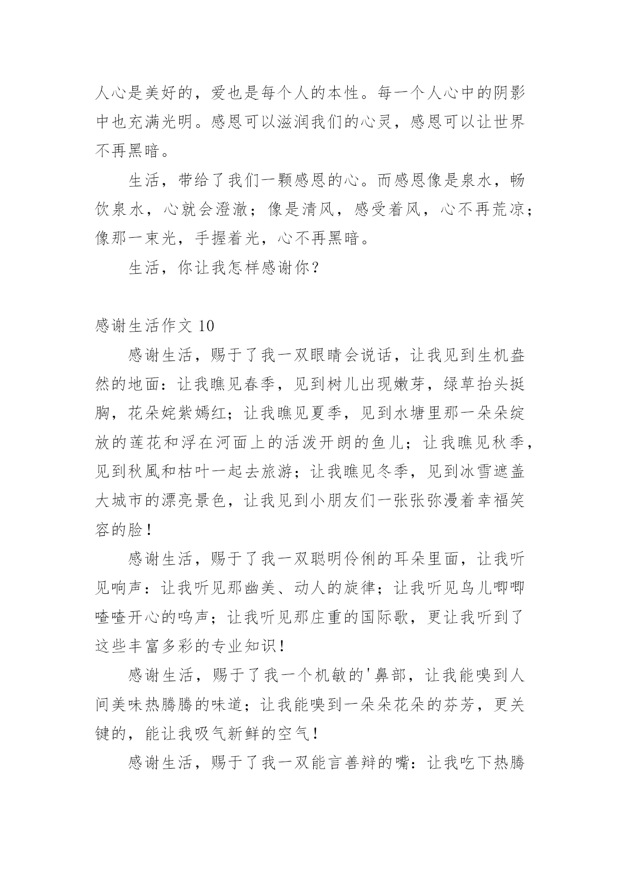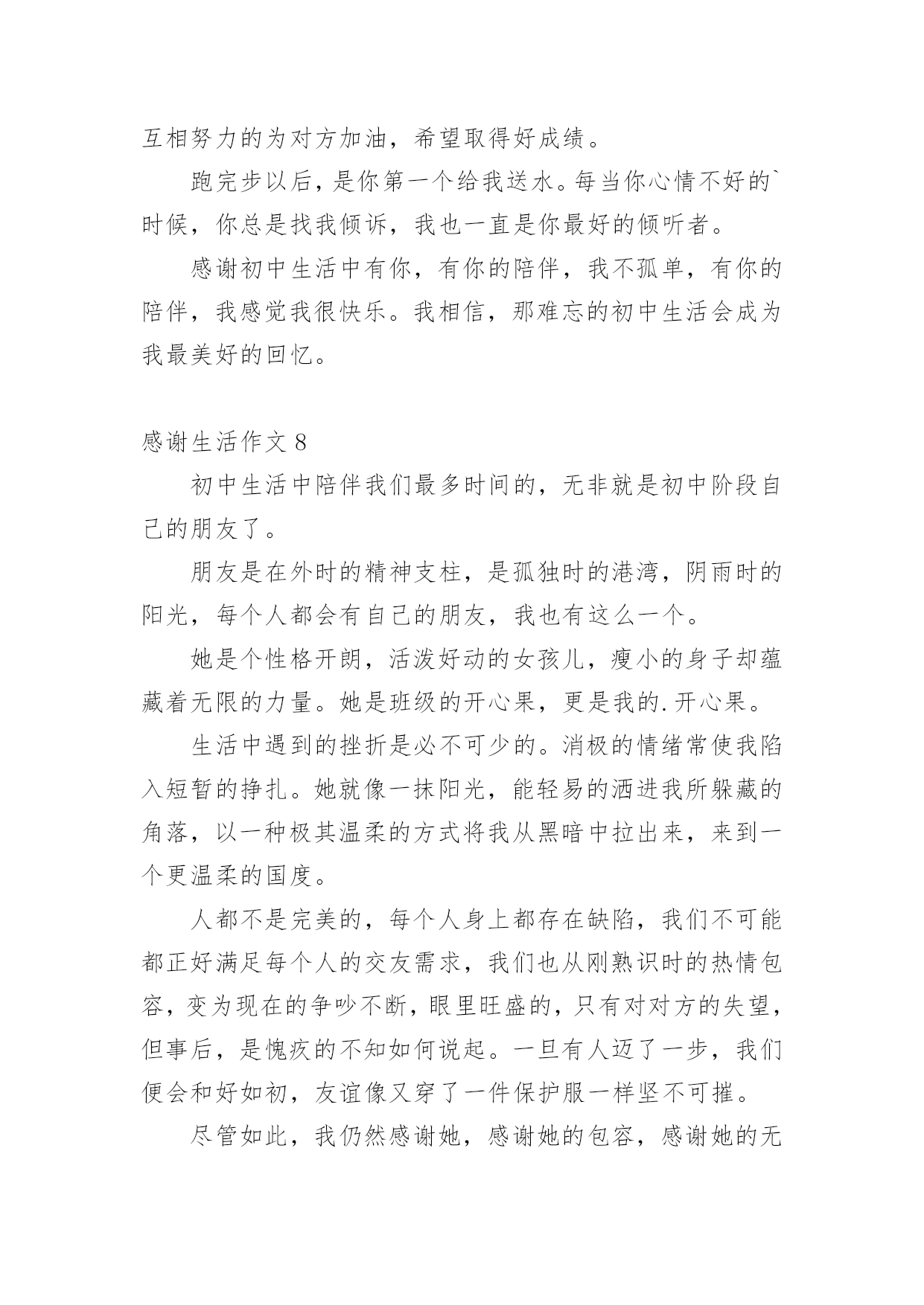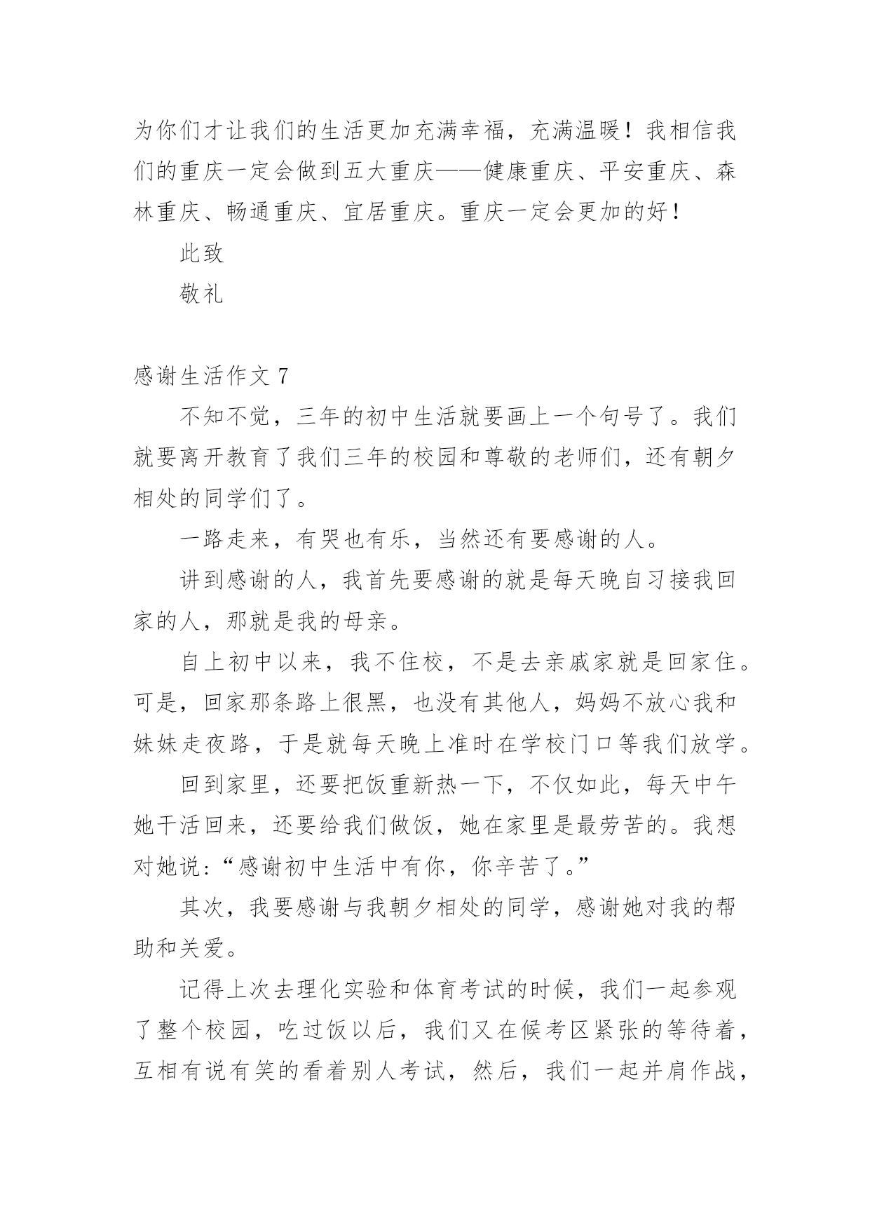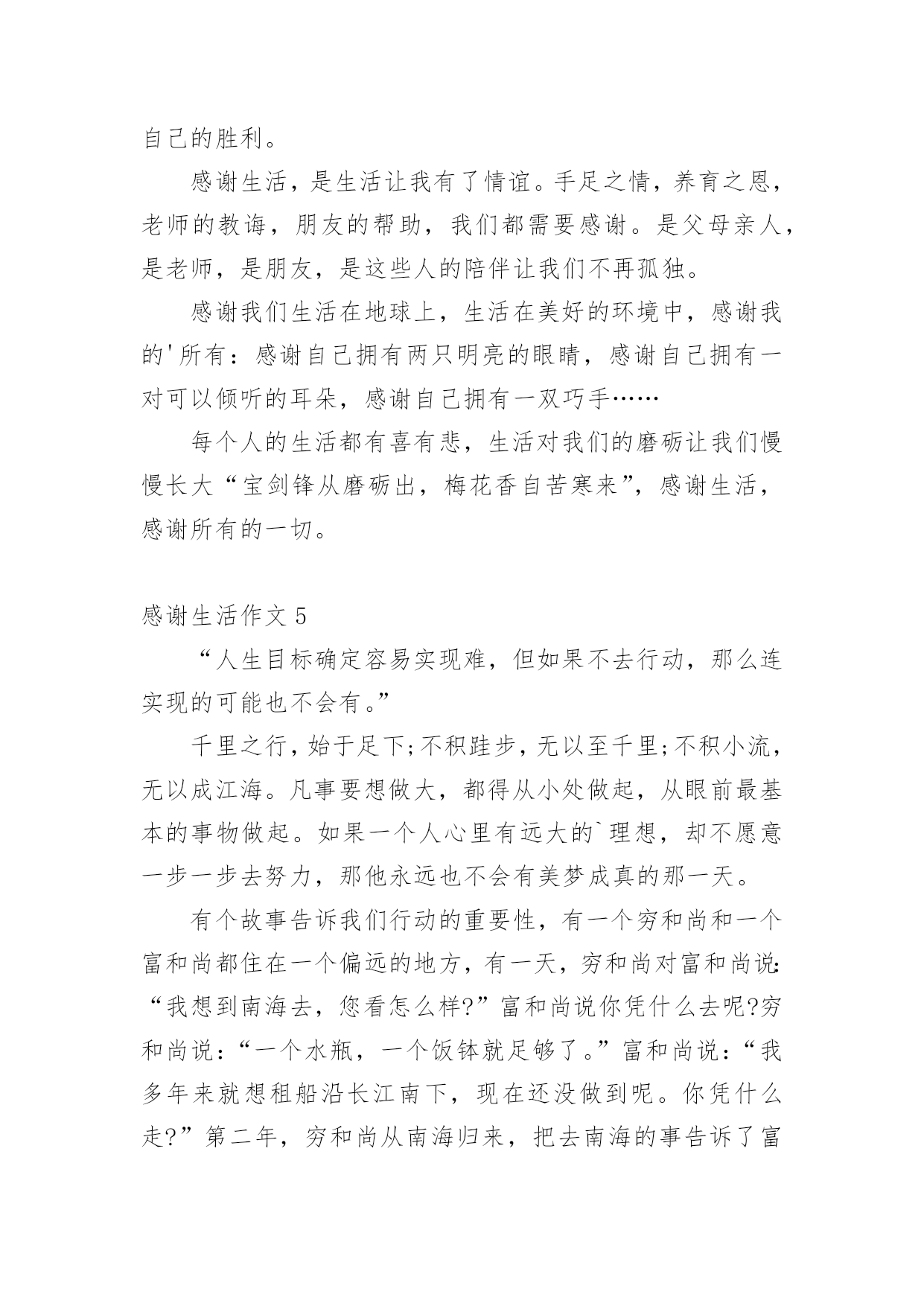 感谢生活作文感谢生活作文精华(15篇)无论是身处学校还是步入社会,大家都跟作文打过交道吧,写作文是培养人们的观察力、联想力、想象力、思考力和记忆力的重要手段。怎么写作文才能避免踩雷呢?下面是小编为大家整理的感谢生活作文,希望能够帮助到大家。感谢生活作文1记得那一次我去参加古筝考级。等候室里随处可见的是忙碌的身影:有人在背谱子,有人在轻唱着考级曲,还有的人在讨论着指法。在这样的氛围中,我渐渐紧张起来,心脏跳动得越来越快。这时,一位老师走进来说:“105至115号到外面坐着!”啊,我是118号,怎么这么快就到我了!我的心不由得紧绷起来,思绪开始凌乱:要是弹错了怎么办?如果出现突发状况怎么办?中途要上厕所怎么办?我越想越怕,死死地盯着打开的谱子,可脑子里却是一片空白,怎么也记不进去,而眼前的谱子就像一个调皮的.小孩在冲着我做鬼脸……我心烦意乱地合上谱子,闭上眼睛。这时,心底有个声音瓢了出来:李思齐,你这样下去可不行!是啊,我必须调整自己,呼气,吸气……反反复复了好几次,心情竟也平复了不少。我沉下心来问自己:为什么会紧张呢?不就是怕考不过吗?可是,就算考不过,又有什么关系了?大不了明年再考一次。再说平时练习得那么熟练,只要正常发挥,又怎么会考不过呢……想到这里,我挺直了腰板,刚才的紧张一扫而光。在报到“118”号时,我轻松地走进了考场。结果并不意外,我考得非常好。感谢生活中的历练,让我知道无论何时何地都应该保持一颗镇定的心,坦然面对到来的一切!感谢生活作文2出生之前我感谢生活,让我在娘胎里玩耍。出生之后我感谢生活,让我活在这个缤纷的世界。懂事之前我感谢生活,让我无忧无虑,乐陶陶。懂事之后我感谢生活,它让我懂得孝敬父母,尊老爱幼。学习之前我感谢生活,它让我对知识有浓厚的.求知感,学习之后我感谢生活,它让我在知识的海洋里遨游。困难之前我感谢生活,让我一切平平淡淡,没困难,遇到困难之后,它让我知道要战胜困难,挑战困难。成功之前我感谢生活,它让我充满自信地走向舞台,成功之后我感谢生活,它让我常到了喜悦。失败之前我感谢生活,它让我有充分的心理准备,失败之后我感谢生活,它要我坚强,勇敢面对。快乐之前我感谢生活,让我活得有滋有味,快乐之后我感谢生活,它让我拥有快乐的回忆。悲伤之前我感谢生活,它给我快乐与平淡,悲伤之后我感谢生活,它我多了经验,多了坎坷。我感谢生活,每一个细节,每一种滋味!我感谢生活,感谢生活给我带来的一切!感谢生活作文3敬爱的姜万富爷爷:您好!电视上看到了关于您的报道,我的'心中一股敬佩之情油然而生在您身上有在困难面前不屈不挠,迎难而上,无私为少数民族同胞奉献自己的热血和青春的精神,您扎根新疆43年,在昆仑之巅、90万亩牧场默默行医,这是一处壮美之地,尽管贫瘠,但是神圣,昆仑山下,新疆生产建设兵团农三师叶城二牧场,大漠荒原,古意苍茫,唯见夺目胡杨,如锚似虬的劲根紧抠地床,生命顽强,守望山河,风骨凛然,铿锵豪放。这是一个坚定的人生选择,无论环境多么恶劣,生命总是流淌奉献———17岁的您风华正茂时,就告别东海之滨的故乡上海,西行万里,来到边疆扎根落户,爱岗敬业,救死扶伤,情洒少数民族同胞心坎。您坚持43年扎根边疆不动摇。您从上海支边来到了新疆生产建设兵团农三师叶城二牧场,投身开发边疆、建设边疆和巩固祖国西北边防的艰苦实践。您过荒、放过羊、采过矿,先后担任过叶城二牧场连队卫生员、场卫生院医生、院长等职。多年来,您有好几次离开新疆的机会,包括上世纪80年代刮起“知青回城风”的时候,一起从上海来的伙伴,陆续都回城了,尤其是同为支边青年的前妻以离婚相胁,也没能让您离开。您最终选择了留下,这一留,就是43年。他无怨无悔。他把青春、把人生都献给了昆仑山。就这样抛繁华而乐寂静,舍安逸而取艰难,终由青春少年变成花甲老人。整整43个春秋,无怨无悔,如歌如诗……感谢生活作文4有人说,生活像一杯白开水,平淡无味,可我认为生活是五彩缤纷的,酸甜苦辣咸样样俱全。生活不可能一帆风顺,总要有困难,有悲伤,这些磨砺让我明白了许多,学会了坚持不懈、顽强不屈。妈妈说,生活像柠檬一样酸涩。望着她那双日日洗衣做饭的手,那双指节突出、皮肤粗糙的手,我明白了。爸爸说,生活是火一样烈的。爸爸是一名律师,每天都与别人唇枪舌剑、针锋相对,他的生活多么激烈。爷爷说,生活比黄连还苦。是啊,看着爷爷脸上一道道被无情岁月深深留下的痕迹,那历经沧桑的皱纹,我知道了。弟弟说,生活像蜜一样甜。是啊,我们是祖国的花朵,生长在21实际这个和平时代,有爸爸妈妈的爱,有爷爷奶奶的疼,这样的生活多么甜蜜。感谢生活,是它一次次的磨砺,让我不再像小时候一样于是只会哭泣。曾经的自己,仿佛还是一个小孩子,蹒跚学步、咿呀学语,一次次的跌倒,一次次的困难,才有了现在自己的胜利。感谢生活,是生活让我有了情谊。手足之情,