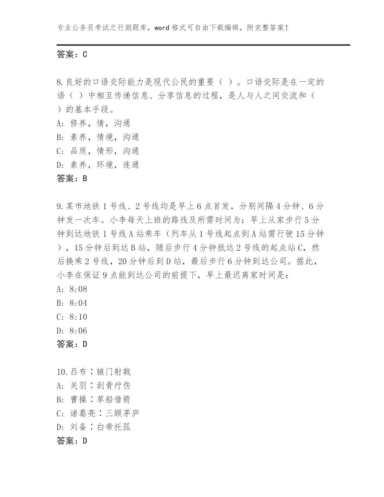 云南省弥渡县公务员考试之行测大全及参考答案AB卷