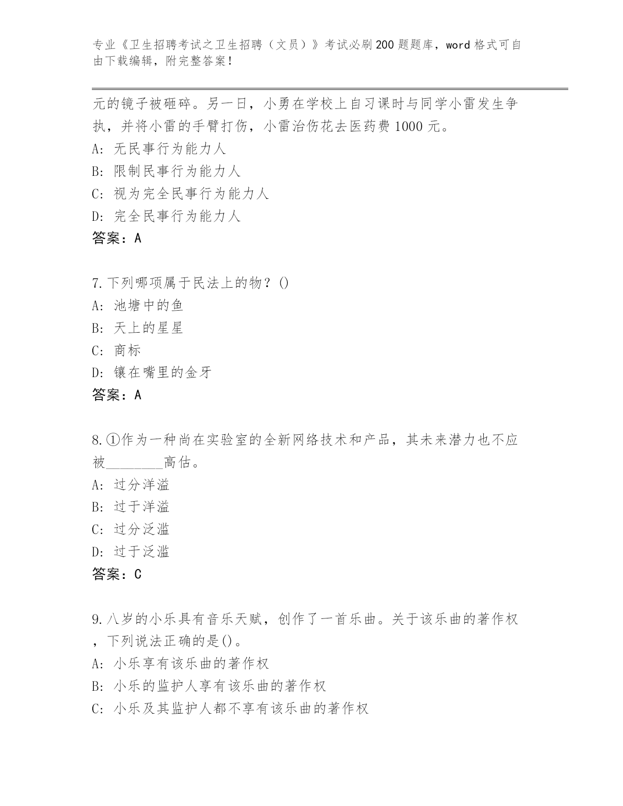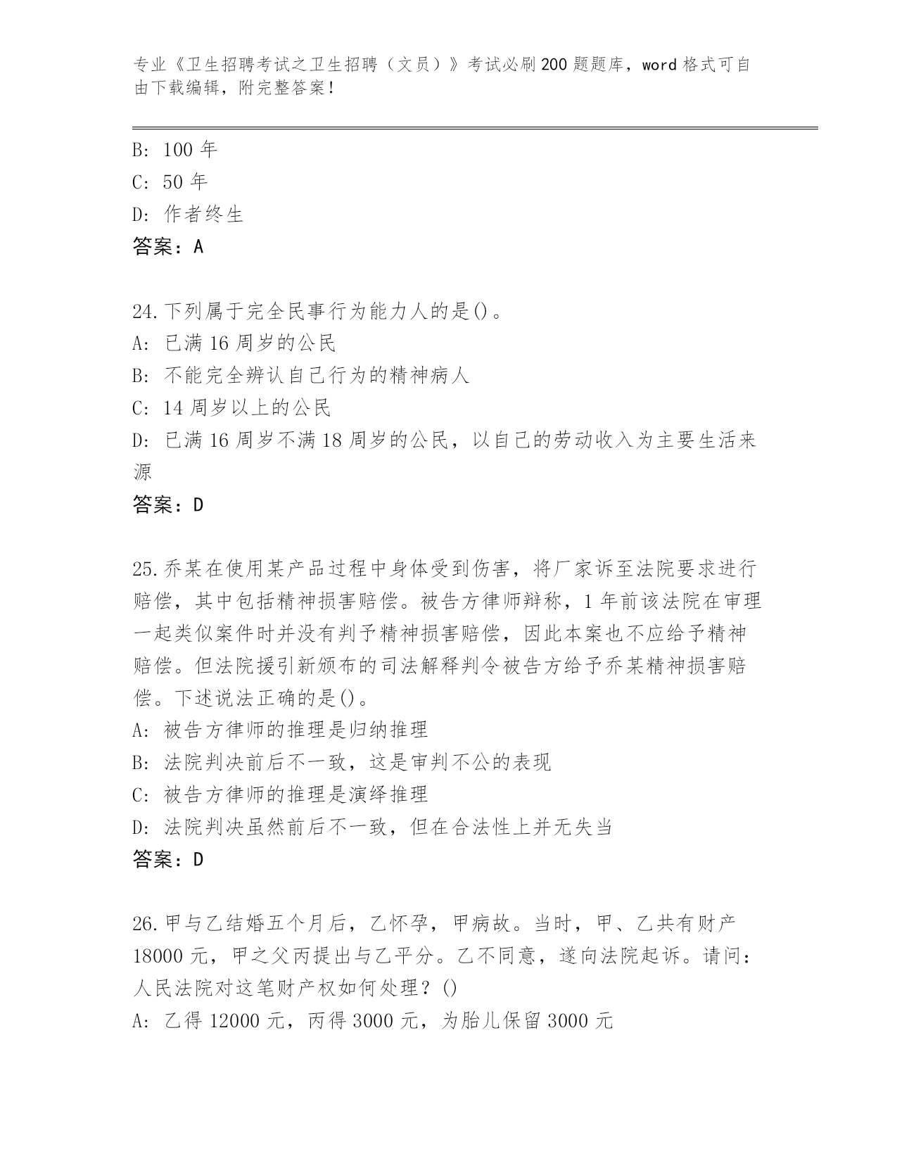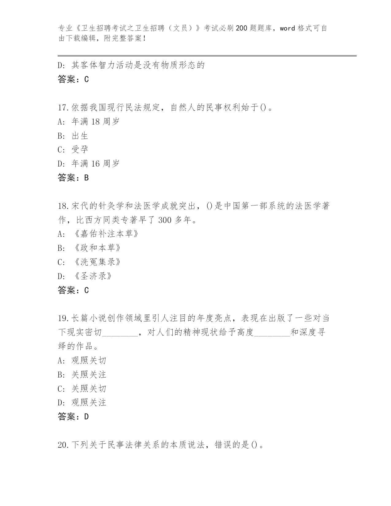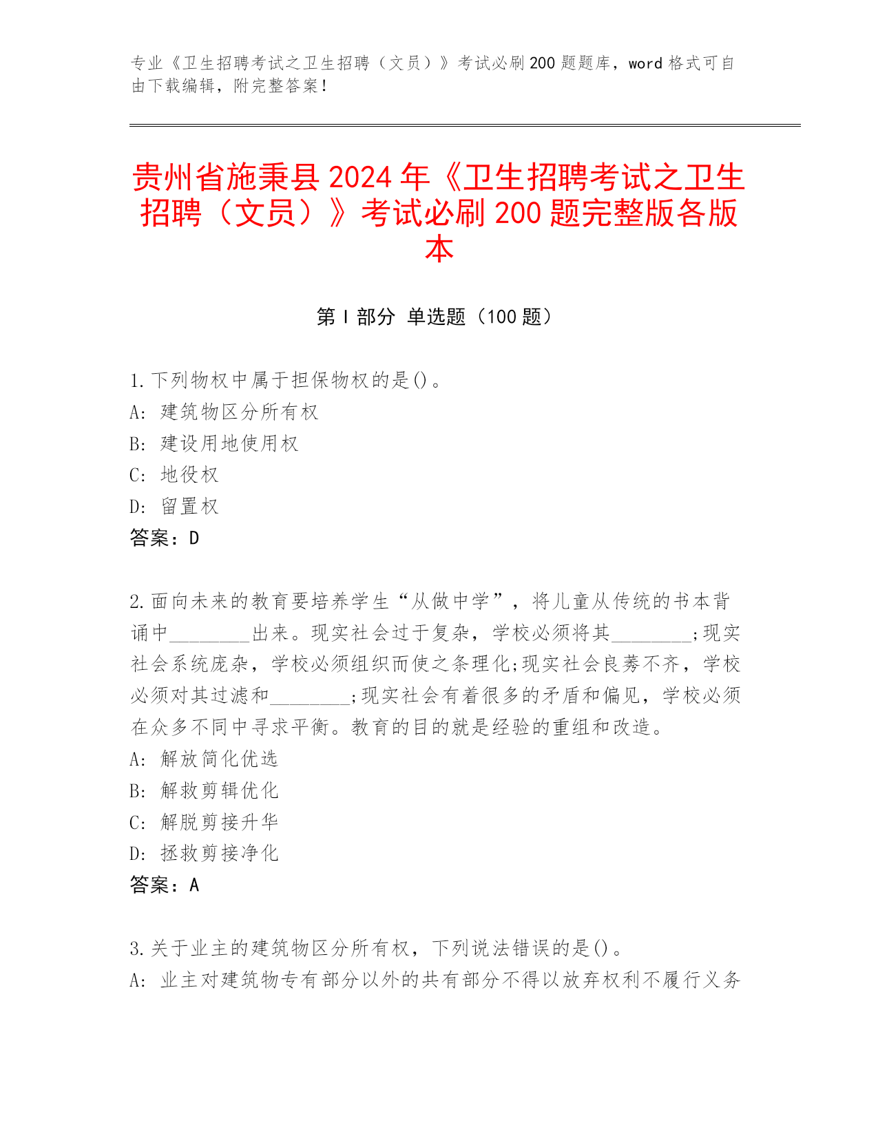 贵州省施秉县2024年《卫生招聘考试之卫生招聘(文员)》考试必刷200题完整版各版本