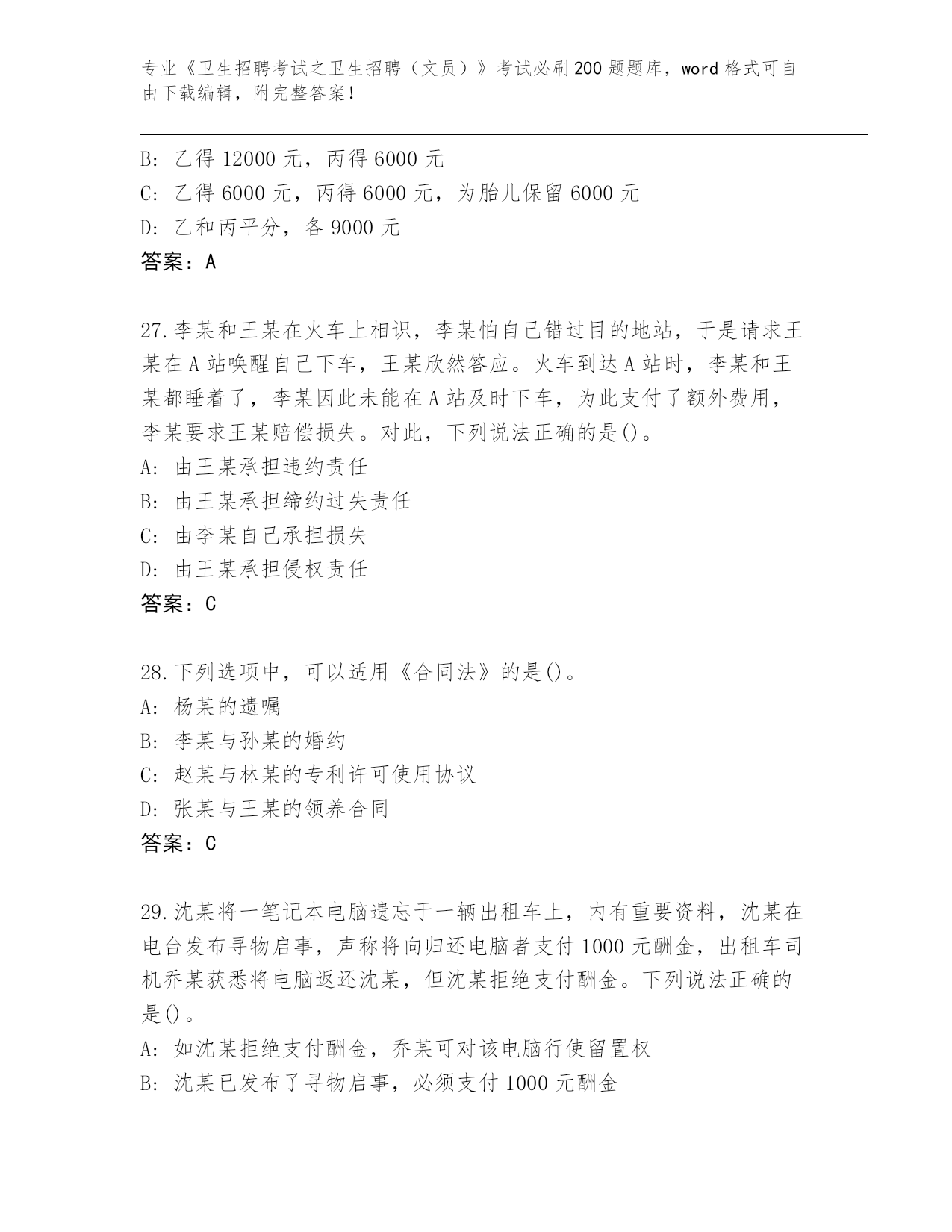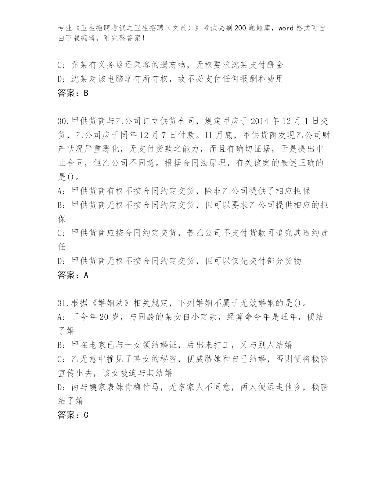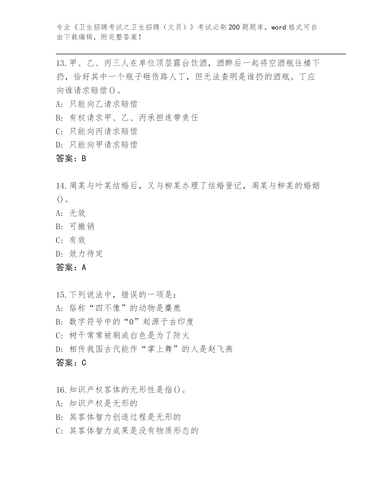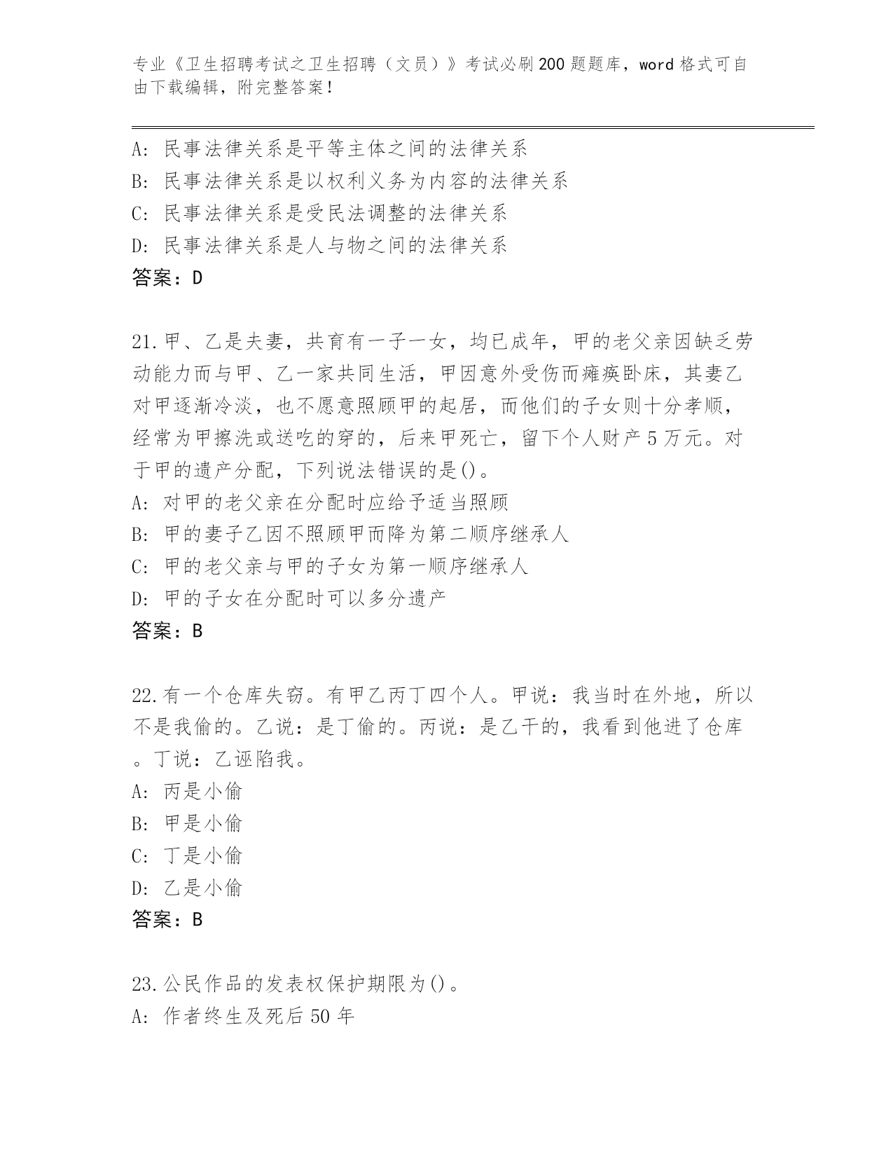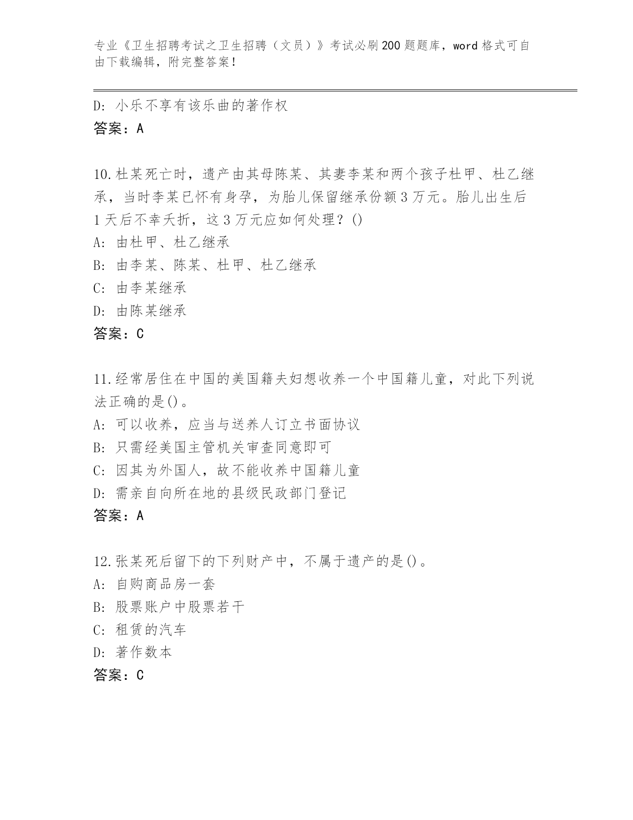 贵州省《卫生招聘考试之卫生招聘(文员)》考试必刷200题(含答案)