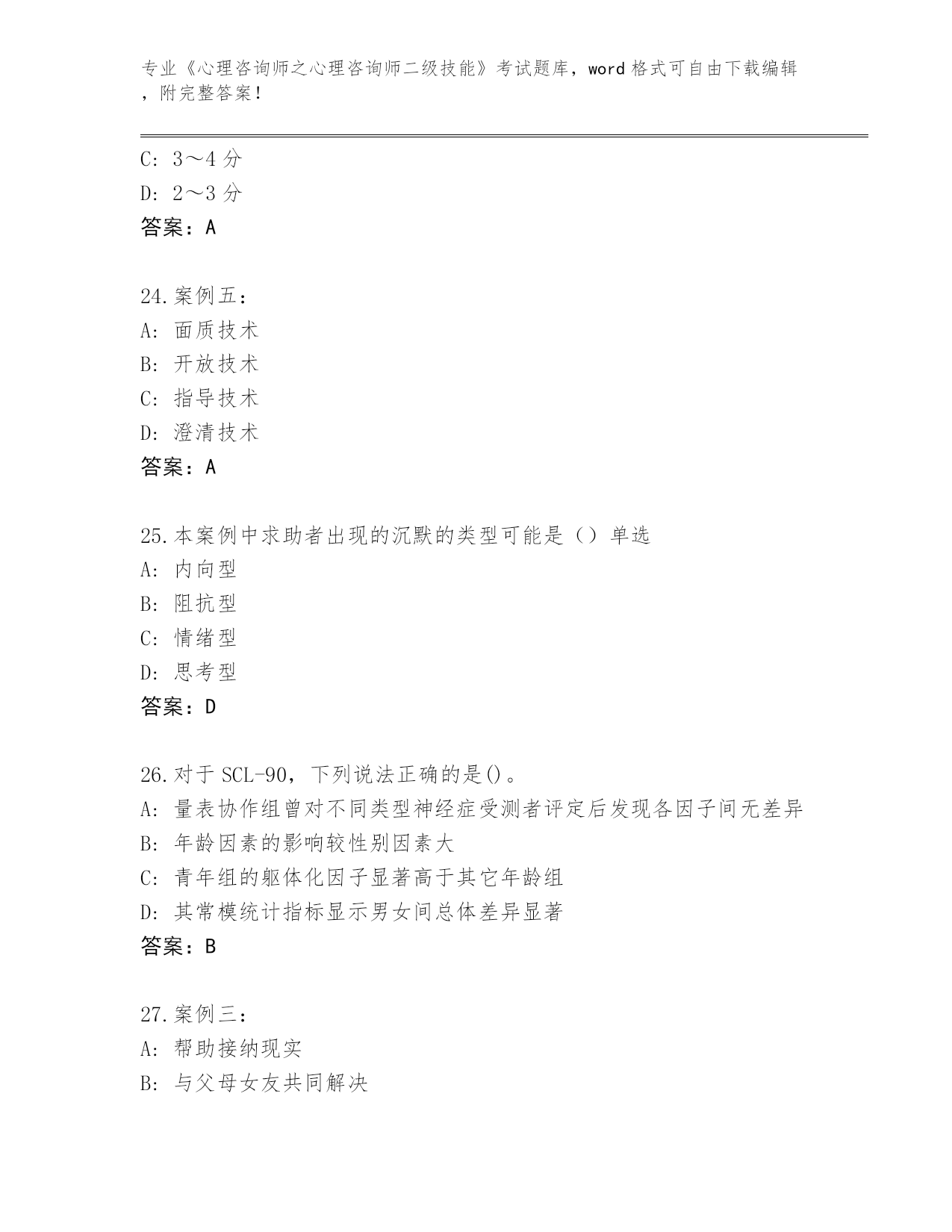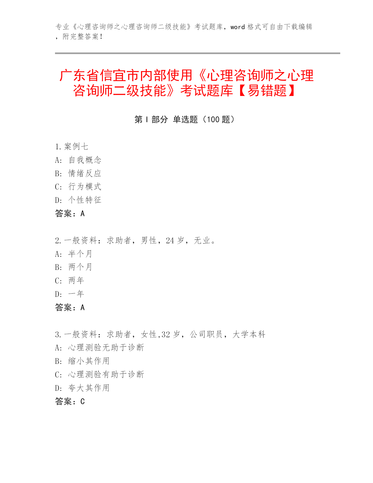 2024广东省信宜市《心理咨询师之心理咨询师二级技能》考试必刷200题完整题库(易错题)