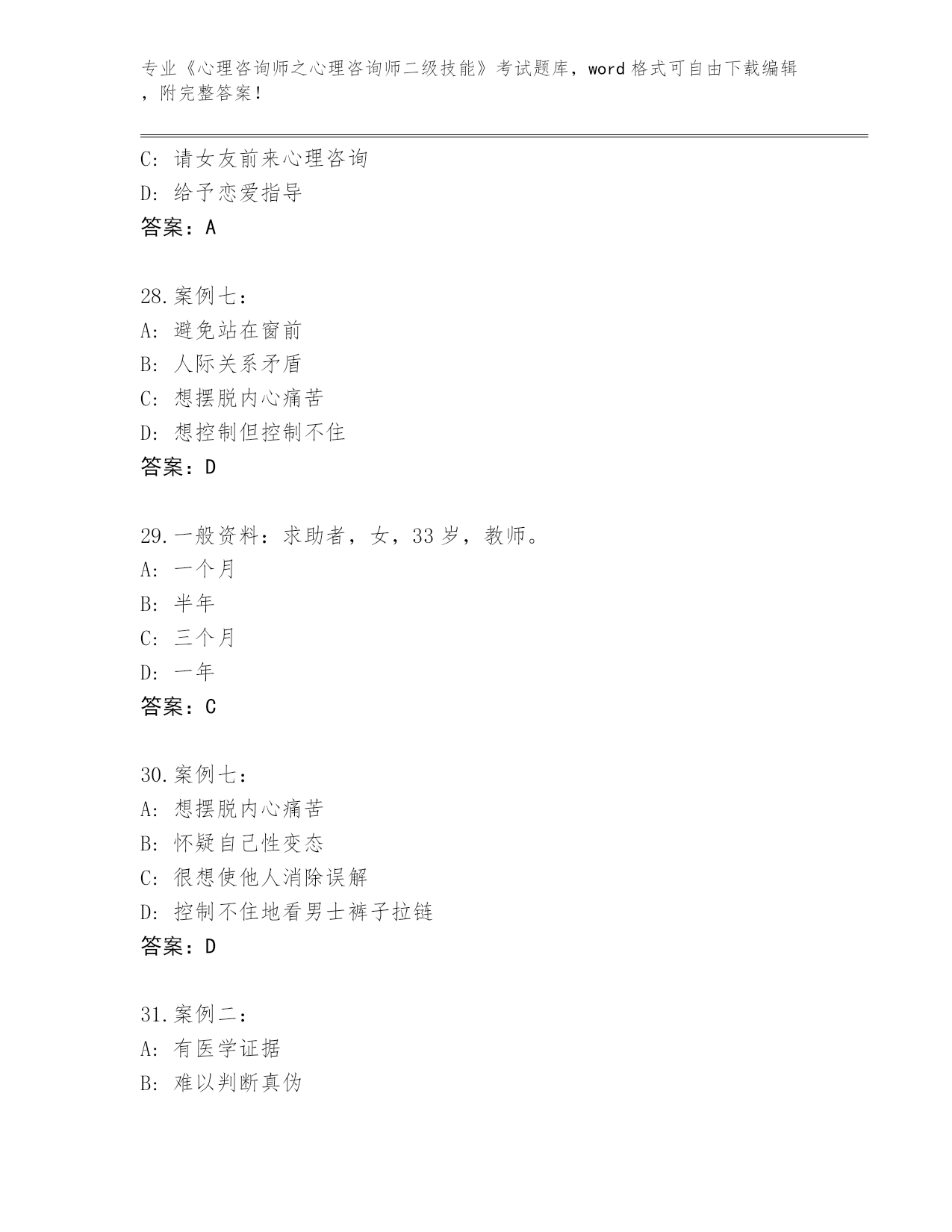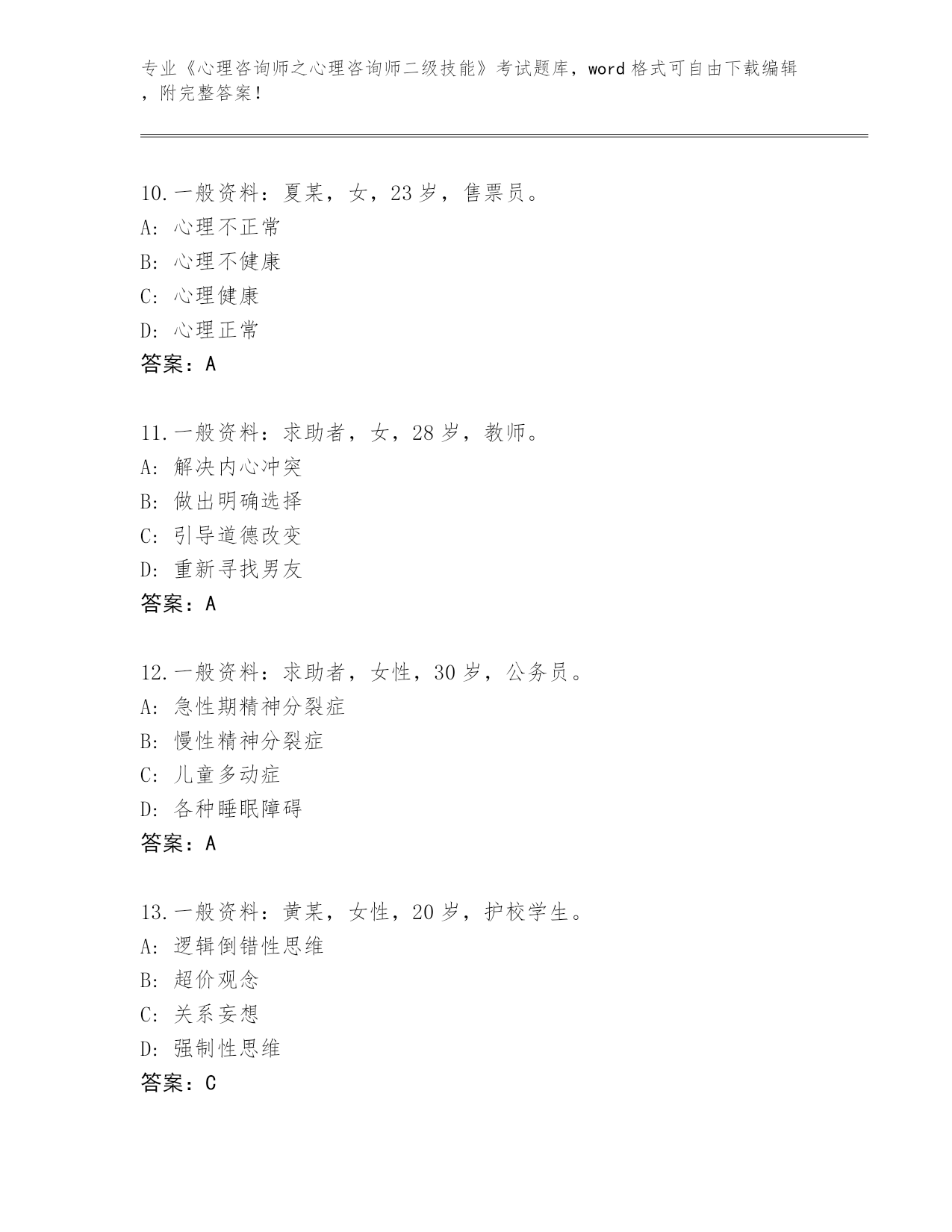 四川省内部使用《心理咨询师之心理咨询师二级技能》考试必考200题题库及答案(易错题)