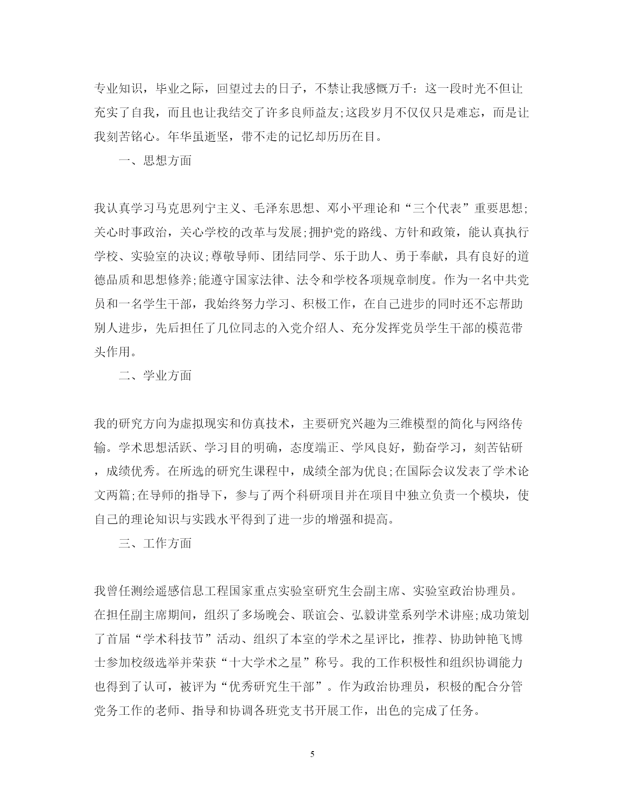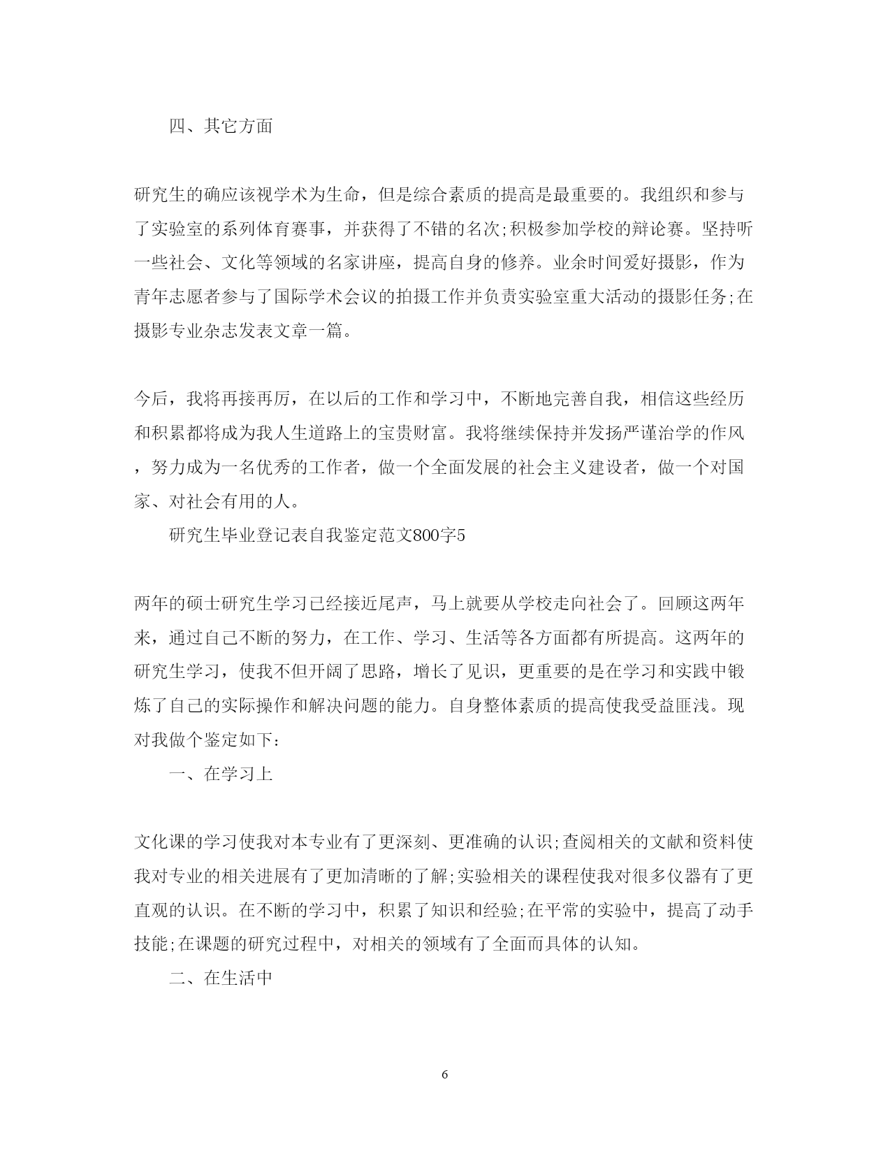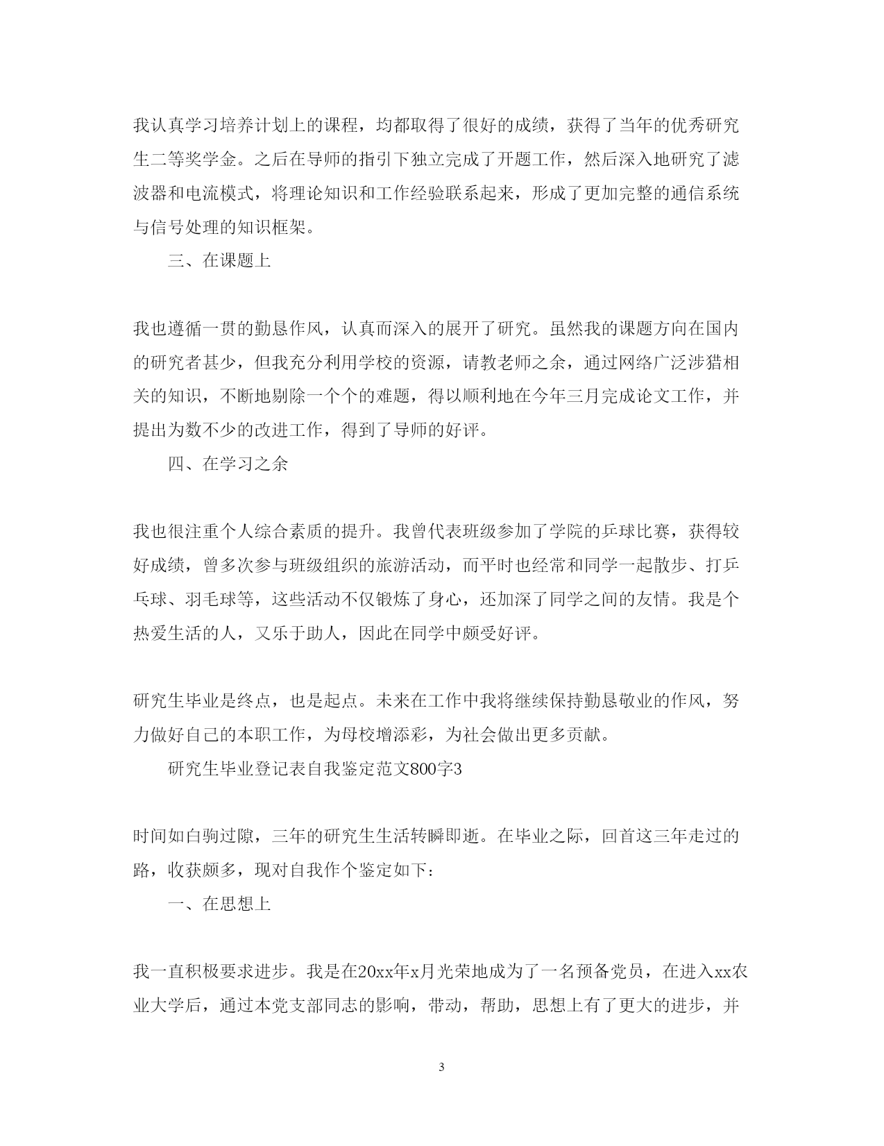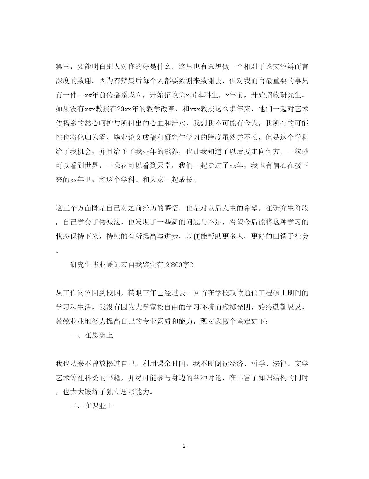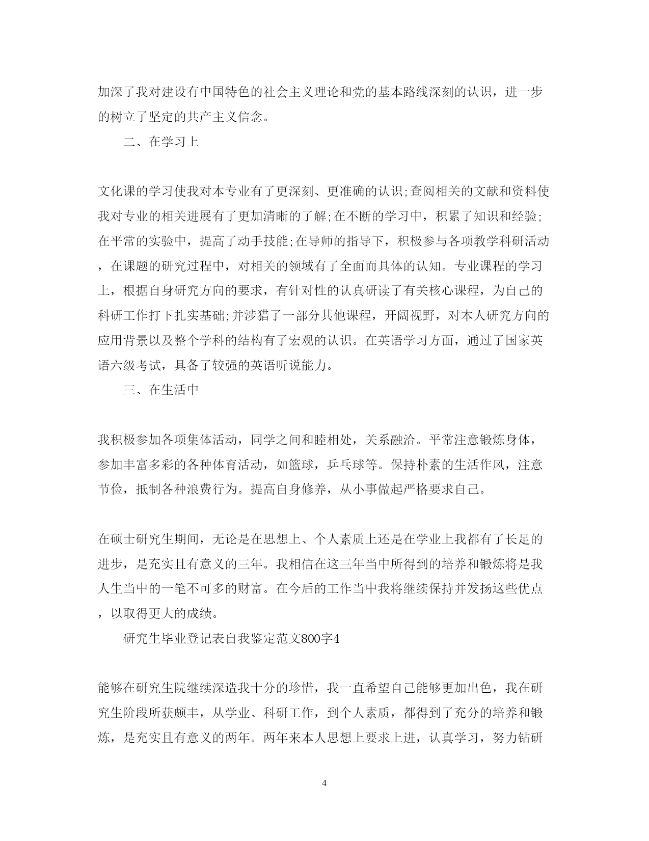 2022研究生毕业登记表自我鉴定范文800字.docx