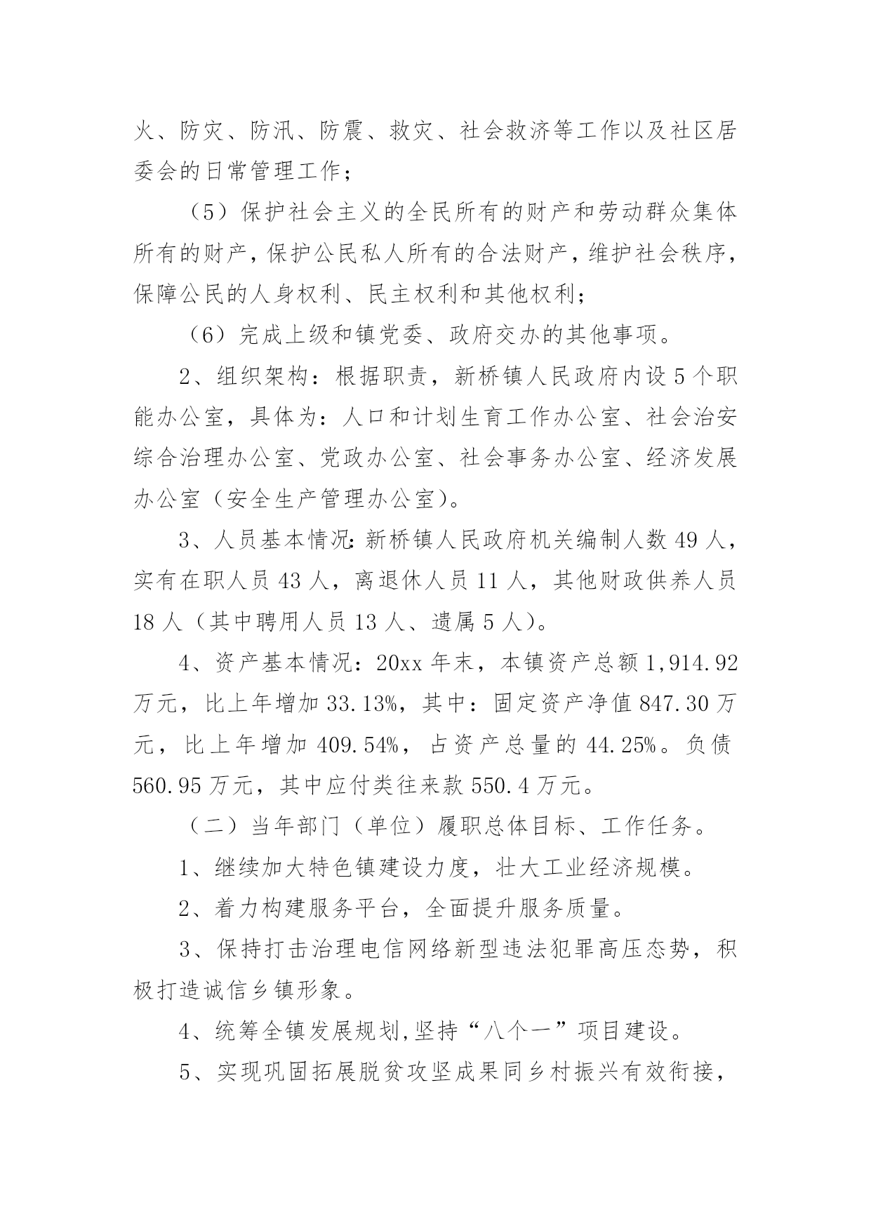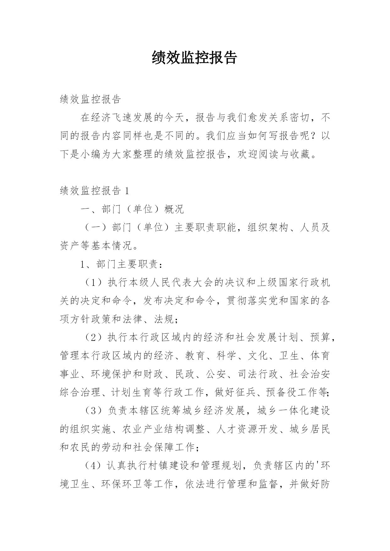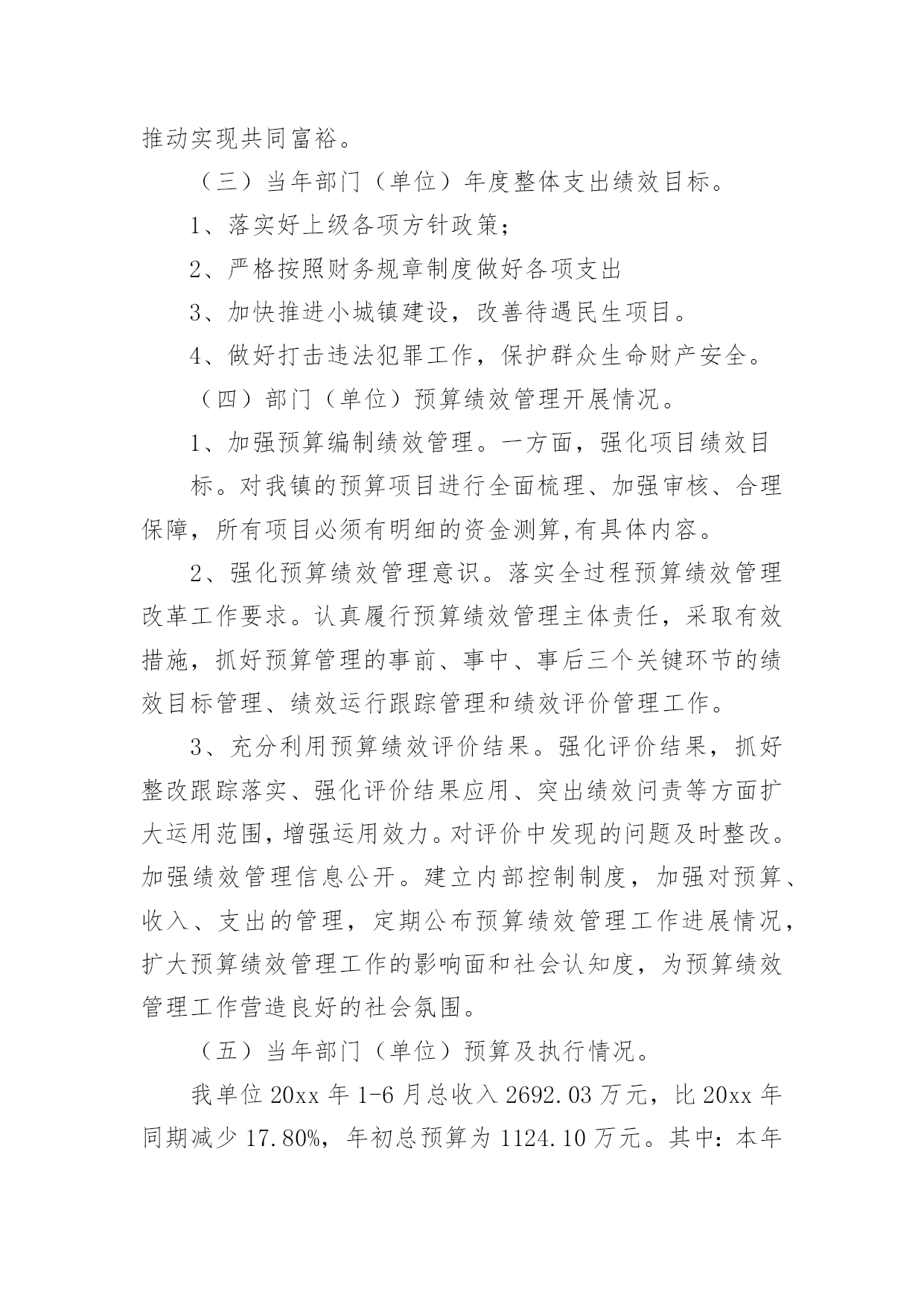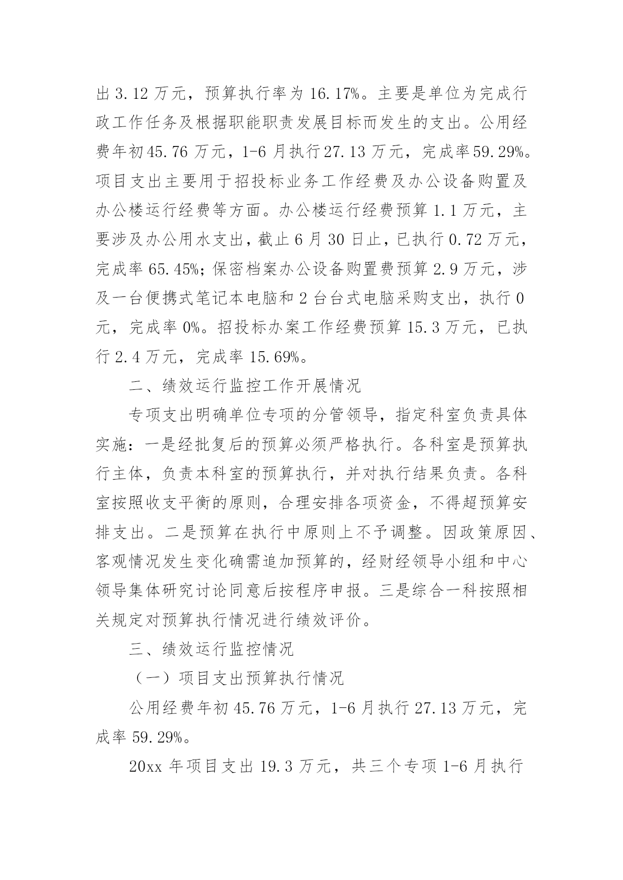 绩效监控报告绩效监控报告在经济飞速发展的今天,报告与我们愈发关系密切,不同的报告内容同样也是不同的。我们应当如何写报告呢?以下是小编为大家整理的绩效监控报告,欢迎阅读与收藏。绩效监控报告1一、部门(单位)概况(一)部门(单位)主要职责职能,组织架构、人员及资产等基本情况。1、部门主要职责:(1)执行本级人民代表大会的决议和上级国家行政机关的决定和命令,发布决定和命令,贯彻落实党和国家的各项方针政策和法律、法规;(2)执行本行政区域内的经济和社会发展计划、预算,管理本行政区域内的经济、教育、科学、文化、卫生、体育事业、环境保护和财政、民政、公安、司法行政、社会治安综合治理、计划生育等行政工作,做好征兵、预备役工作等;(3)负责本辖区统筹城乡经济发展,城乡一体化建设的组织实施、农业产业结构调整、人才资源开发、城乡居民和农民的劳动和社会保障工作;(4)认真执行村镇建设和管理规划,负责辖区内的'环境卫生、环保环卫等工作,依法进行管理和监督,并做好防火、防灾、防汛、防震、救灾、社会救济等工作以及社区居委会的日常管理工作;(5)保护社会主义的全民所有的财产和劳动群众集体所有的财产,保护公民私人所有的合法财产,维护社会秩序,保障公民的人身权利、民主权利和其他权利;(6)完成上级和镇党委、政府交办的其他事项。2、组织架构:根据职责,新桥镇人民政府内设5个职能办公室,具体为:人口和计划生育工作办公室、社会治安综合治理办公室、党政办公室、社会事务办公室、经济发展办公室(安全生产管理办公室)。3、人员基本情况:新桥镇人民政府机关编制人数49人,实有在职人员43人,离退休人员11人,其他财政供养人员18人(其中聘用人员13人、遗属5人)。4、资产基本情况:20xx年末,本镇资产总额1,914.92万元,比上年增加33.13%,其中:固定资产净值847.30万元,比上年增加409.54%,占资产总量的44.25%。负债560.95万元,其中应付类往来款550.4万元。(二)当年部门(单位)履职总体目标、工作任务。1、继续加大特色镇建设力度,壮大工业经济规模。2、着力构建服务平台,全面提升服务质量。3、保持打击治理电信网络新型违法犯罪高压态势,积极打造诚信乡镇形象。4、统筹全镇发展规划,坚持“八个一”项目建设。5、实现巩固拓展脱贫攻坚成果同乡村振兴有效衔接,推动实现共同富裕。(三)当年部门(单位)年度整体支出绩效目标。1、落实好上级各项方针政策;2、严格按照财务规章制度做好各项支出3、加快推进小城镇建设,改善待遇民生项目。4、做好打击违法犯罪工作,保护群众生命财产安全。(四)部门(单位)预算绩效管理开展情况。1、加强预算编制绩效管理。一方面,强化项目绩效目标。对我镇的预算项目进行全面梳理、加强审核、合理保障,所有项目必须有明细的资金测算,有具体内容。2、强化预算绩效管理意识。落实全过程预算绩效管理改革工作要求。认真履行预算绩效管理主体责任,采取有效措施,抓好预算管理的事前、事中、事后三个关键环节的绩效目标管理、绩效运行跟踪管理和绩效评价管理工作。3、充分利用预算绩效评价结果。强化评价结果,抓好整改跟踪落实、强化评价结果应用、突出绩效问责等方面扩大运用范围,增强运用效力。对评价中发现的问题及时整改。加强绩效管理信息公开。建立内部控制制度,加强对预算、收入、支出的管理,定期公布预算绩效管理工作进展情况,扩大预算绩效管理工作的影响面和社会认知度,为预算绩效管理工作营造良好的社会氛围。(五)当年部门(单位)预算及执行情况。我单位20xx年1-6月总收入2692.03万元,比20xx年同期减少17.80%,年初总预算为1124.10万元。其中:本年收入1971.49万元。20xx年1-6月支出1237.16万元,年初总预算为1124.10万元,按支出性质分:基本支出325.79万元,项目支出911.94万元。总体支出率45.98%。二、部门(单位)整体支出绩效实现情况(一)履职完成情况20xx年上半年,我镇经济运行稳步前进,累计完成全社会固定资产投资7855万元;累计完成规上工业总产值4777万元。完成招商引资项目到位资金1800万元。今年以来,我镇受理信访案件31件;党代会、人代会按时召开;安排部署乡村振兴、乡村环境综合整治、社会综治、安全生产等工作,各项工作达标率100%;截至6月10日,我镇网逃人员归案率99.36%,滞留缅北诈骗窝点人员劝返率64%。(二)履职效果情况通过镇村干部摸排处理,减少了辖区内的矛盾纠纷和安全事故隐患;通过对辖区内居民进行宣传和“蓝天保卫战”的推进,提高群众的乡村环境卫生意识,建设生态宜居家园;通过走访宣传帮扶政策,让贫困人口都能享受国家政策,积极作为;在村政务栏及时公开各项政策,做到公开透明。(三)社会满意度及可持续性影响(如