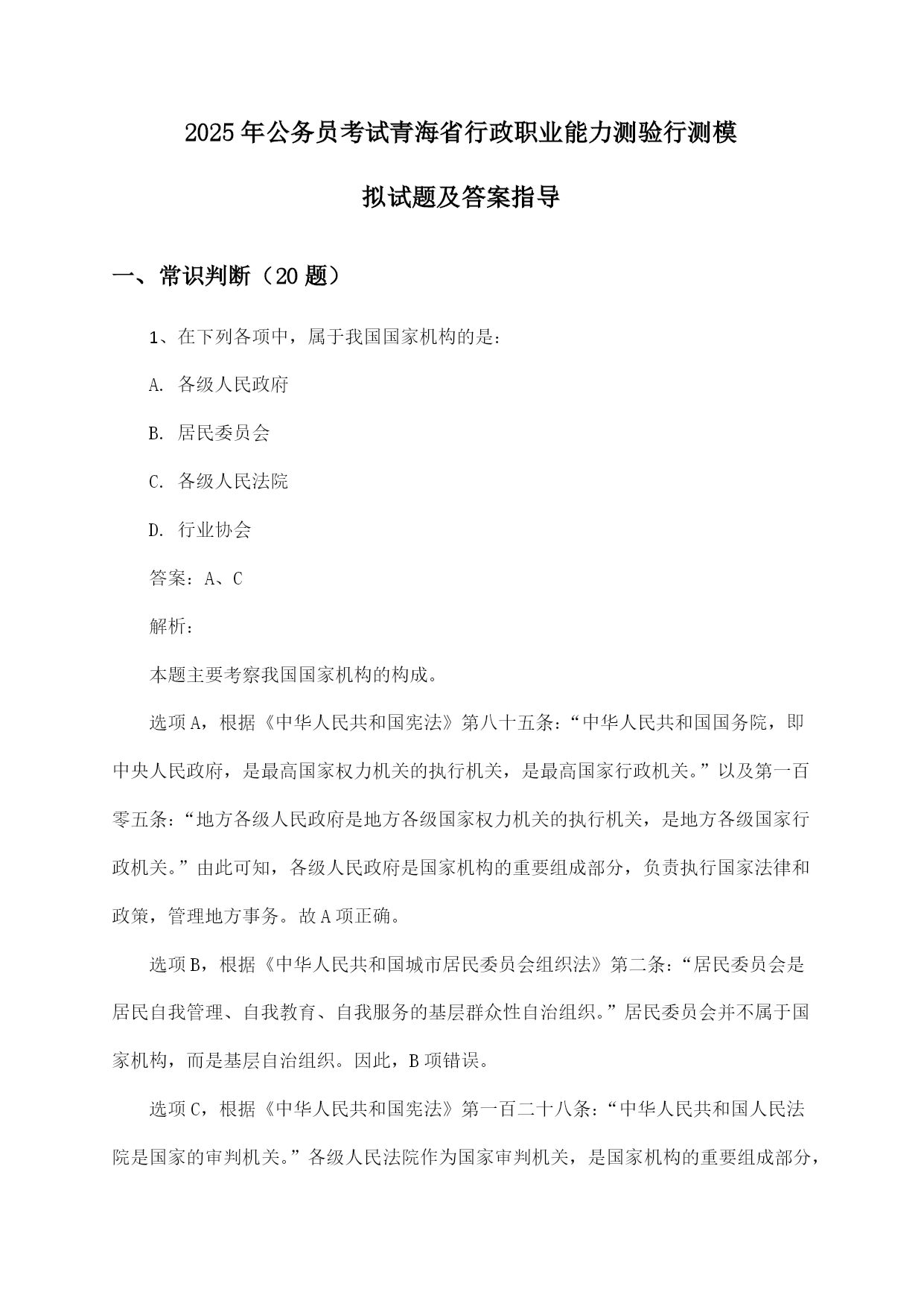 青海省行政职业能力测验公务员考试行测2025年模拟试题及答案指导.docx