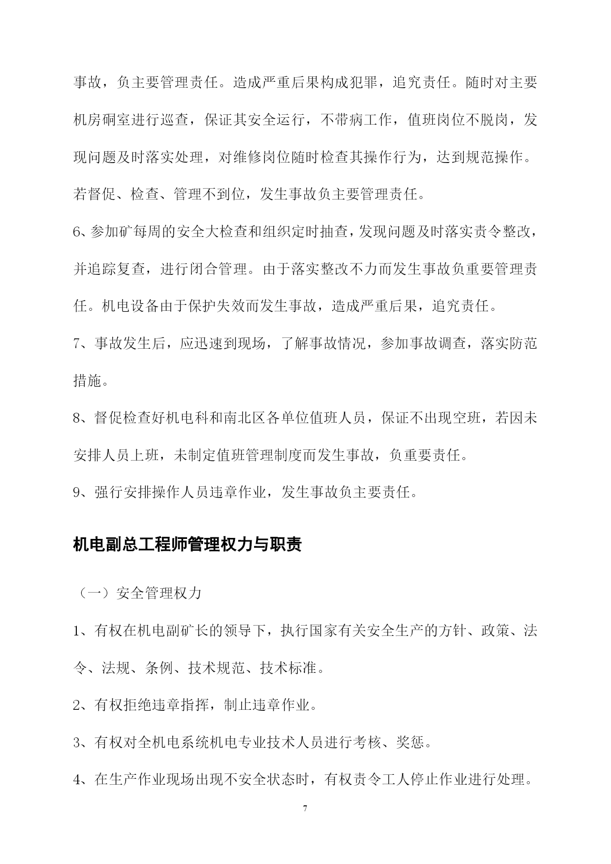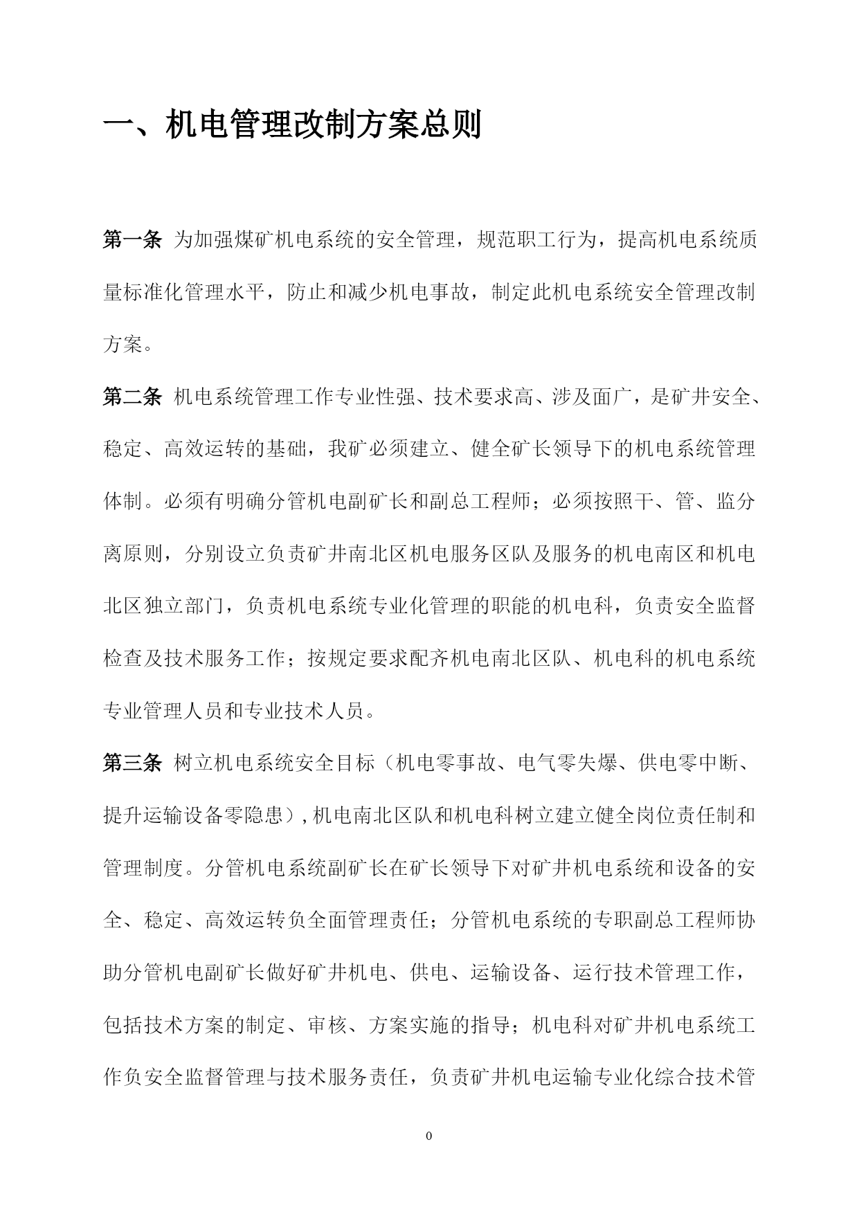 PAGE仟祥煤业机电系统改制管理方案目录TOC\o"1-3"\h\z\uHYPERLINK\l_Toc17809一、机电管理改制方案总则PAGEREF_Toc178091HYPERLINK\l_Toc28097二、机电管理体系结构图(修改或补充)PAGEREF_Toc280974HYPERLINK\l_Toc27817三、机电管理体系框图PAGEREF_Toc278175HYPERLINK\l_Toc10941四、机电系统主要管理人员、管理组织和管理人员安全职责PAGEREF_Toc109416HYPERLINK\l_Toc7308机电科长管理权力与职责PAGEREF_Toc73086HYPERLINK\l_Toc28077机电副总工程师管理权力与职责PAGEREF_Toc280778HYPERLINK\l_Toc18061机电南区和北区区长管理权力与职责PAGEREF_Toc1806110HYPERLINK\l_Toc22358机电科及机电南北区工程技术人员管理权力与职责PAGEREF_Toc2235811HYPERLINK\l_Toc4657五、备注:PAGEREF_Toc465712PAGE12一、机电管理改制方案总则第一条为加强煤矿机电系统的安全管理,规范职工行为,提高机电系统质量标准化管理水平,防止和减少机电事故,制定此机电系统安全管理改制方案。第二条机电系统管理工作专业性强、技术要求高、涉及面广,是矿井安全、稳定、高效运转的基础,我矿必须建立、健全矿长领导下的机电系统管理体制。必须有明确分管机电副矿长和副总工程师;必须按照干、管、监分离原则,分别设立负责矿井南北区机电服务区队及服务的机电南区和机电北区独立部门,负责机电系统专业化管理的职能的机电科,负责安全监督检查及技术服务工作;按规定要求配齐机电南北区队、机电科的机电系统专业管理人员和专业技术人员。第三条树立机电系统安全目标(机电零事故、电气零失爆、供电零中断、提升运输设备零隐患),机电南北区队和机电科树立建立健全岗位责任制和管理制度。分管机电系统副矿长在矿长领导下对矿井机电系统和设备的安全、稳定、高效运转负全面管理责任;分管机电系统的专职副总工程师协助分管机电副矿长做好矿井机电、供电、运输设备、运行技术管理工作,包括技术方案的制定、审核、方案实施的指导;机电科对矿井机电系统工作负安全监督管理与技术服务责任,负责矿井机电运输专业化综合技术管理。按照“谁管理谁负责,谁使用谁负责,谁维护谁负责,谁管的人谁负责,谁监督谁负责”的原则界定安全责任。机电系统机电科和机电南北区技术、管理工作要按要求建立健全各项管理制度,并认真贯彻、严格执行。第四条分管机电副矿长,认真组织研究机电重大技术问题、安全技术改造方案及措施,经矿长办公会审定后报嵩基能源公司批准,并负责组织实施。分管机电副矿长每月至少主持召开一次机电专业会议,对机电重大安全隐患、安全技术管理中存在的问题进行分析、研究,并组织实施解决方案。第五条机电各岗位、各工种,必须经培训、考核合格后持证上岗。操作中严格遵守岗位责任制和操作规程。强化特殊作业、特殊环节和特殊人员管理,并实行一工程一措施,一措施一贯彻一落实,强化现场监管,实现24小时不失控。1、特殊作业必须制定专项措施,机电南北区区长做到现场跟班指挥,机电科应指定专人盯在现场。2、特殊情况下的机电工程及项目必须制定完善管理制度和施工安全技术措施。3、特殊环节要重点盯防,明确包干责任人。4、特殊人员要从严管理、严格责任追究。5、坚持上不碰高压线,下不突破安全底线。6、机电系统机电科和南北区各单位要配备专职或兼职的安检员。第六条机电科按要求上报的资料、报表等要及时准确,对外提供资料、报表必须由机电科科长严格审核,并经机电副矿长批准。第七条必须按需求配齐机电系统管理、工程技术人员,并随我矿建设进展及时建立、健全机电系统管理机构,建立健全各项岗位责任制和管理制度。机电系统的机电科和机电南北区各单位管理机构必须担负对外来施工队的机电专业安全监督管理和机电技术业务指导的责任。二、机电管理体系结构图(修改或补充)三、机电管理体系框图实现机电安全生产机电管理体系组织管理机电科及机电南北区领导小组专职安全员南北区安全员班组安全员机电科及南北区全体员工思想建设提高全员安全意识制定培训计划按工种培训并持证上岗操作规程规范教育安全培训、技术培训、班前培训施工技术安全规则教育技术管理技术、安全