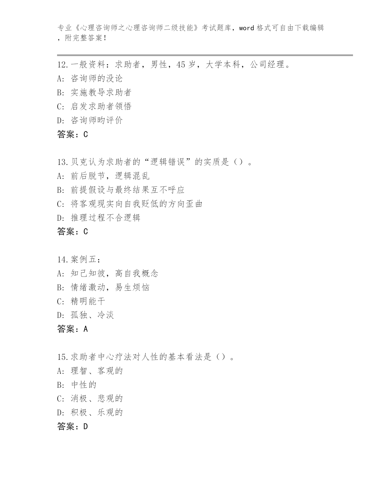 黑龙江省肇源县2023-24年《心理咨询师之心理咨询师二级技能》资格考试内部题库(综合题)