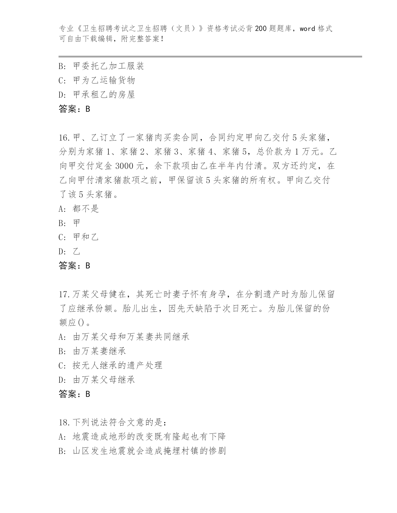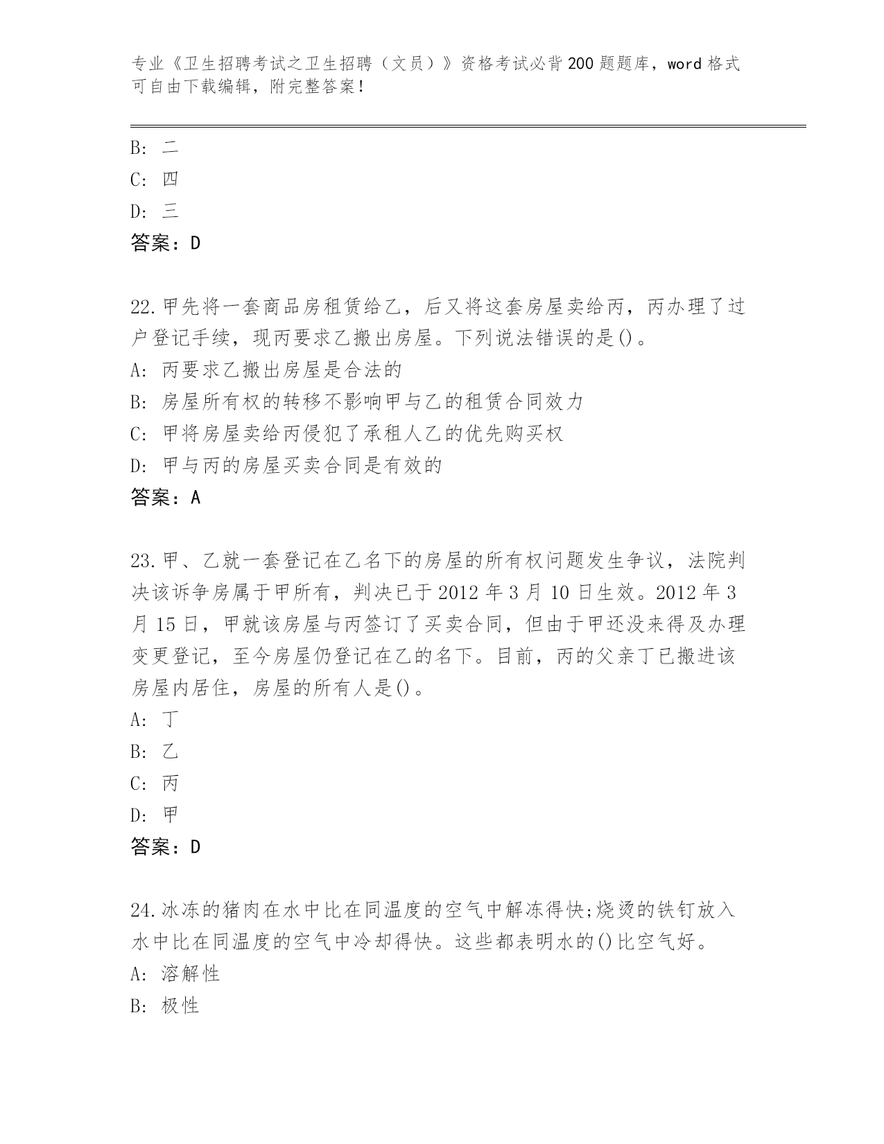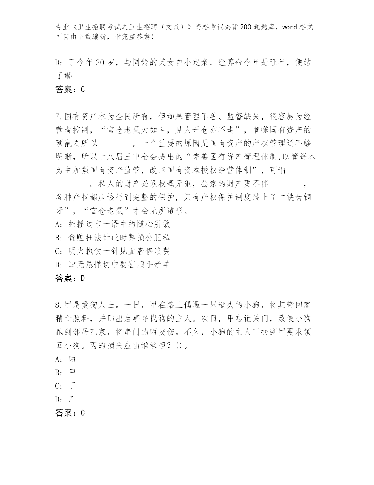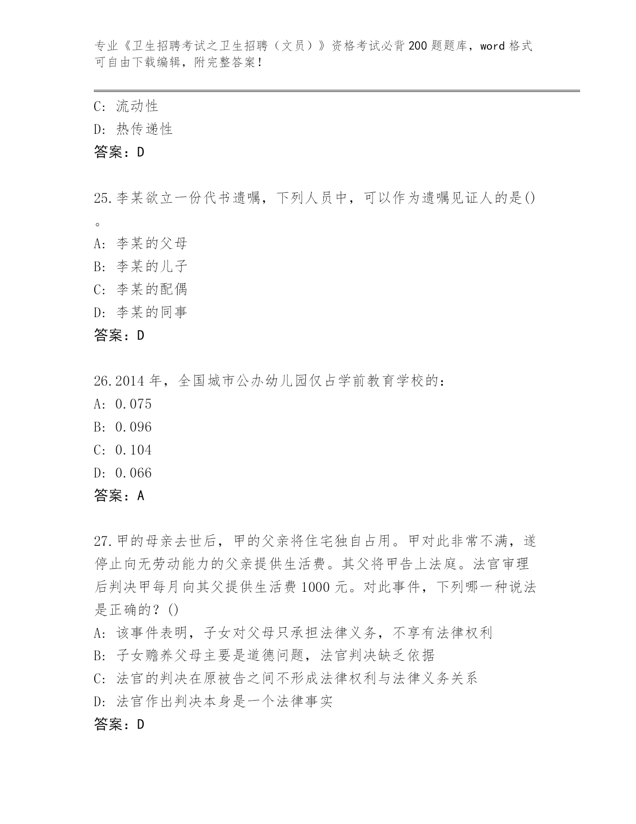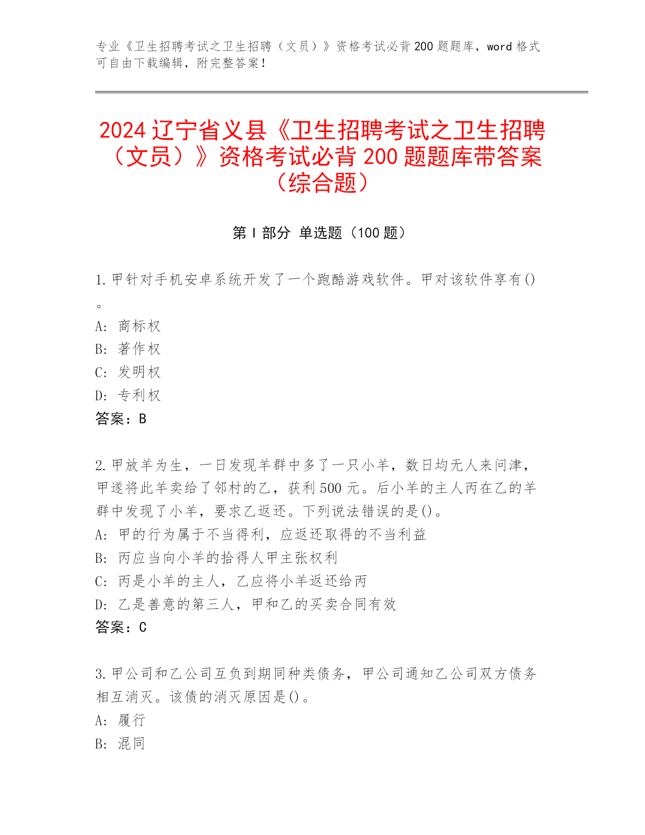 辽宁省2024《卫生招聘考试之卫生招聘(文员)》资格考试必背200题完整题库带答案下载